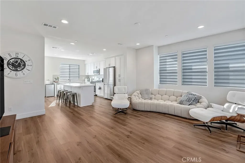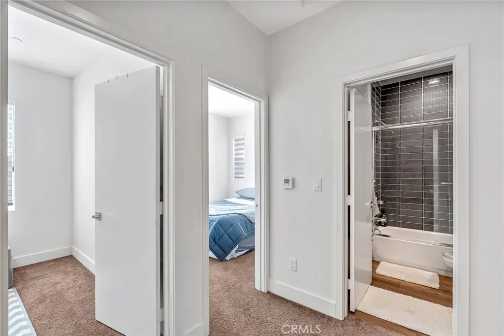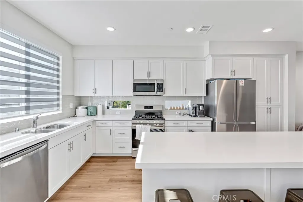 Welcome to VOLARA Community, built by Bonanni Development. Just like model house. Turnkey house. Ready to move in. Built in 2023, this property qualifies for the buyer gets $10,000 grant from the Citi Bank, Wells Fargo, or Bank of America. You don’t have to pay them back. special interest rate for the Condos or Townhouses now. No PMI. HOA is very low as $215.00 per month. This corner unit home combines stylish upgrades with PAID-OFF SOLAR and low-maintenance living. Seller spent more than $15,000 for the premium double shades for the all the windows, landscaping, white kitchen cabinets and all the doors etc… Gourmet kitchen includes island space, generous dining area and state of the art stainless steel appliances. WALK TO PORTOLA PARK. Plan 3 property is an END LOCATION that offers entry level bonus/work from home space off the direct access, attached 2-CAR garage! The Great room design has a powder room and a walk out deck. Upstairs there are three bedrooms with two full baths and ample closets. The Primary suite offers dual sinks, oversized shower with handset tile and walk in closet. La Habra is a terrific neighborhood, with many parks and the La Habra Children’s Museum just across the street PLUS Excellent schools, part of the Fullerton Joint district. GFI-protected waterproof outlets at front and rear of home. Premium exterior light fixtures, Open floor plans, 9ft ceilings throughout Vinyl-plank wood-look flooring in all main living areas including, entry landings, living, dining, and kitchen areas. 2 ½” door casings and 5” baseboards throughout. Whole House Fan, 30” four-burner gas freestanding range/oven, 24” built-in microwave, 4-cycle dishwasher, Quartz countertops with 6” backsplash throughout. Large stainless-steel sink, Designer shaker style cabinetry with ample storage in a wood finish. Full ceramic tile master shower surrounds. Elegant primary suite featuring large walk-in closets. Chrome plumbing fixtures. Tile flooring throughout master bath, Contemporary recessed LED Lighting throughout, Ceiling fan pre-wiring, Universal multimedia pre-wiring in great room, soft closing cabinet drawers & doors, Vinyl dual glazed windows for cooler homes in the summer, warmer in winter & a quieter home environment, laundry hookups are upstairs. Upgraded designer flooring. Premium Quartz Countertop. Full tile designer kitchen backsplash, Premium double shades all the windows. Designer grade premium tile surround in Master Bath, much more.