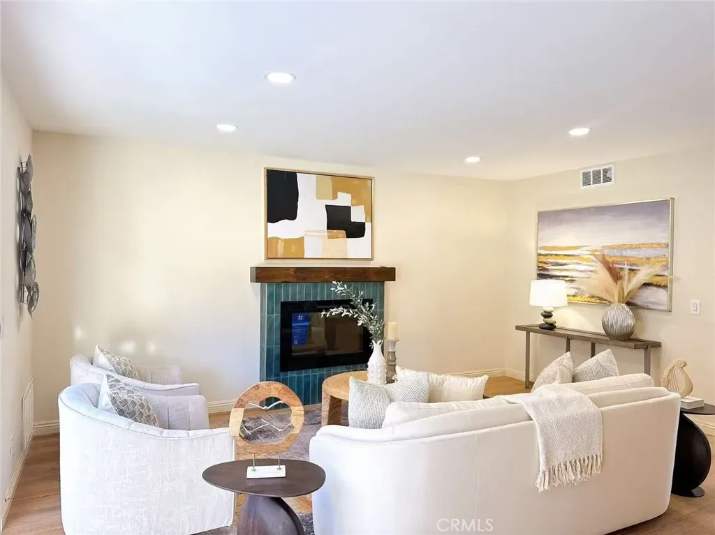 This beautifully renovated 2-bedroom, 2-bathroom condo offers a bright, open-concept living and kitchen area—ideal for modern living and effortless entertaining. The gourmet kitchen features high-end custom cabinetry, elegant marble countertops, and a convenient breakfast bar. Upstairs, the bathroom is thoughtfully upgraded with a smart toilet and anti-fog LED mirror, adding both comfort and sophistication. Stylish wood flooring extends throughout the home, enhancing its contemporary appeal. Step outside to your private backyard with a covered patio, perfect for relaxing or outdoor dining. Situated in a quiet, well-maintained community offering resort-style amenities, including a pool and spa. Conveniently located near parks, shopping centers, banks, and a variety of restaurants. A perfect place to call home—this exceptional property won’t last long!