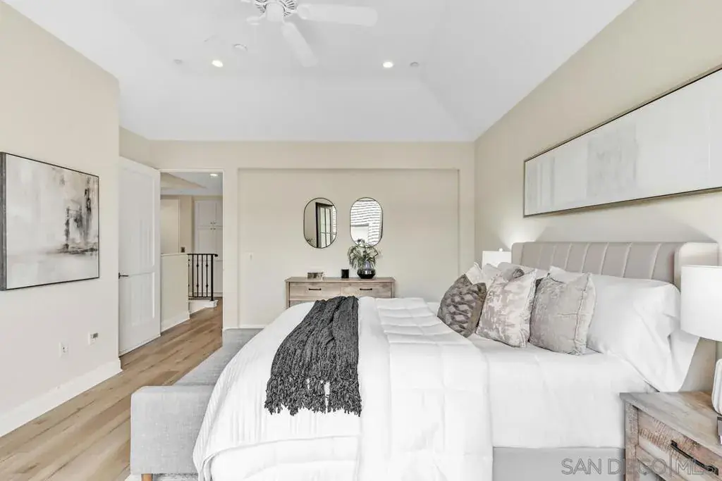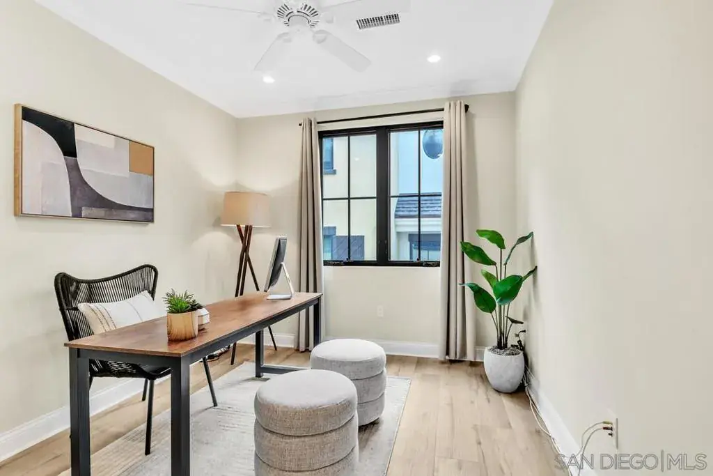 Did you know you can have this much space, modern construction, solar, a private 2-car garage, a gated home, a private elevator, smart home features, and walkability to everything in La Jolla Village—all at a fabulous price? This 2018-built townhome offers 4 bedrooms, 4 bathrooms, luxe Miele appliances, Quartz countertops and a flexible floor plan with a main-level bedroom perfect for guests or a home office. Upstairs, each bedroom has its own en-suite, including a spacious primary suite with a walk-in closet. The rooftop deck crowns the home with peek ocean and hillside views—ideal for coffee at sunrise or a glass of wine at golden hour. All of this just steps from The Bishop’s School, The Conrad, La Jolla’s beaches, cafés, and coastal charm. Modern. Elegant. Beautifully attainable. This is Village living done right.