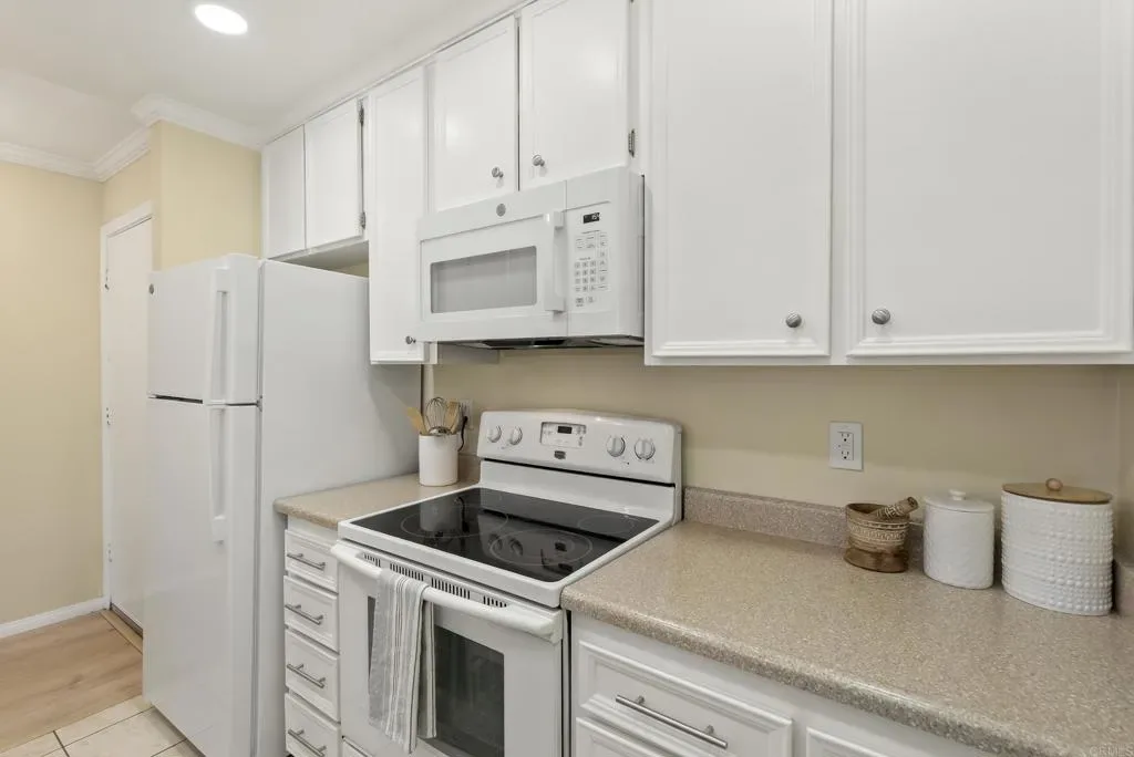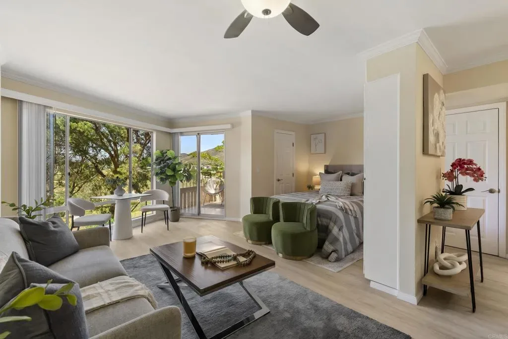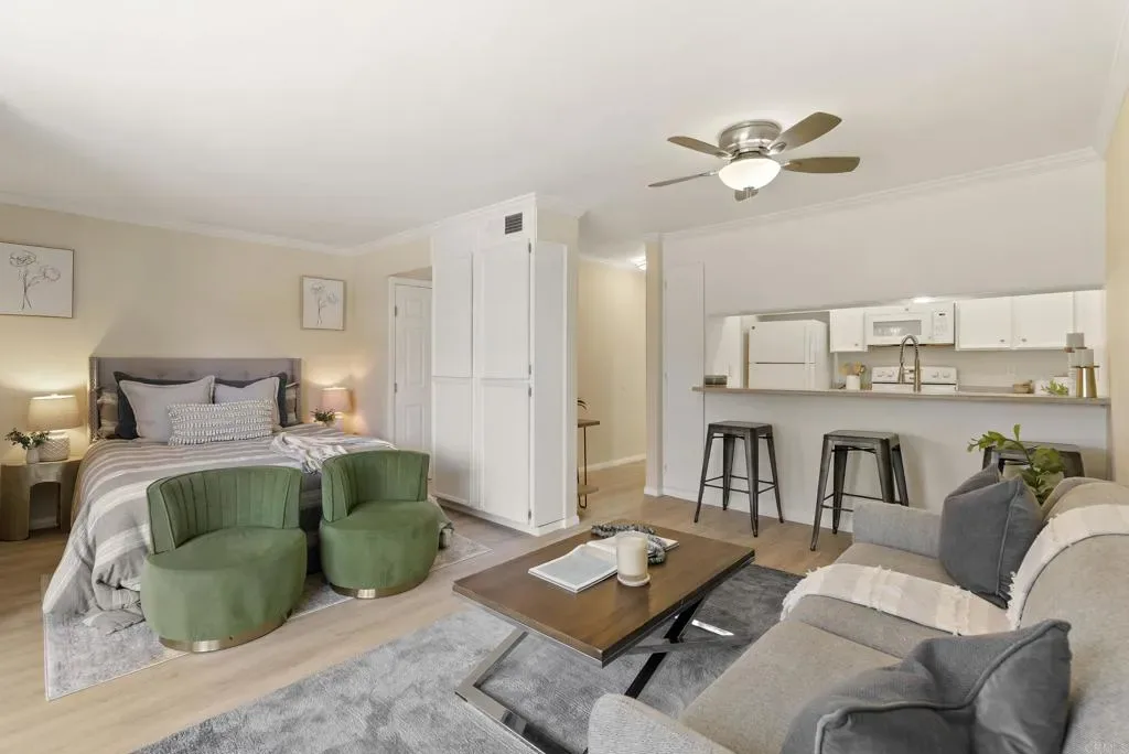 Fantastic central location and lake view living for $399,000! 2nd floor studio condo, with elevator access, in the coveted towers at Lake Park has sit down panoramic views of Lake Murray, Cowles Mountain and the Mission Trails Golf Course. Come enjoy the unbelievable sunsets and views from this unit. New HVAC system in 2025. Upgraded light wood laminate flooring in main living space that has never been lived on. Fresh light and bright paint, upgraded baseboards and refinished ceiling with gorgeous crown molding. Scraped and painted ceiling. Refinished tub/shower with new brushed nickel handles and spigot/faucet and shower head. Brand new refrigerator, dishwasher and microwave. Upgraded closet doors with in closet switched lighting. This is a pet friendly community located right on the edge of Lake Murray with direct access to all the amenities it has to offer like walking and hiking trails, fishing, boating, horeshoes, BBQ pits, picnic areas and biking. The Lake Park Condominium community features various ponds, water falls, a lake and numerous water features throughout. Each floor has a community laundry room. Other amenities include a car wash, 5 pools, 4 spas, a gym with showers, two saunas, two tennis courts, a pickleball court, half court basketball court, handball/racquetball court, sauna, billiard table, ping pong, a clubhouse with a full kitchen, trash and the water paid through HOA, your own deeded parking spot and more. This home is close to SDSU, Grossmont College, shopping, dining, La Mesa Village, Grossmont Center, Mission Tails, a Golf Course, trolley stations and freeways. A perfect investment/rental unit. Designated areas marked for guest parking. Pets allowed with restrictions. Lake Park complex sits on 24 acres of land. Perfect for the active lifestyle or just sit and enjoy the view! Easy financing available and First Time Buyer programs are available too for those who qualify. FHA and VA approved last checked.