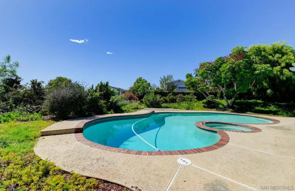 OPPORTUNITY KNOCKS! Trust sale -limited opportunity. Superb locale * . Large lot, cul-de-sac * 5 car parking* 1 BR, 1 BA (upgraded) downstairs and big rooms including all br’s * Primary has huge bathroom * Newer Wood floors in DR/LR * Separate Family rm. with FPLC adjoining Kit * Formal entry * Not original dual pane wood and vinyl sliders/windows * Volume ceilings * Direct access 2 car garage * Newer HVAC * Beautiful pool & Spa, large patio, Paid Solar * Bones and condition appear nicely maintained * Needs paint, floors and your personal touch in Ba’s, kit to make perfect