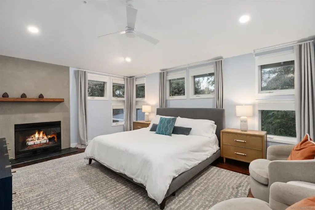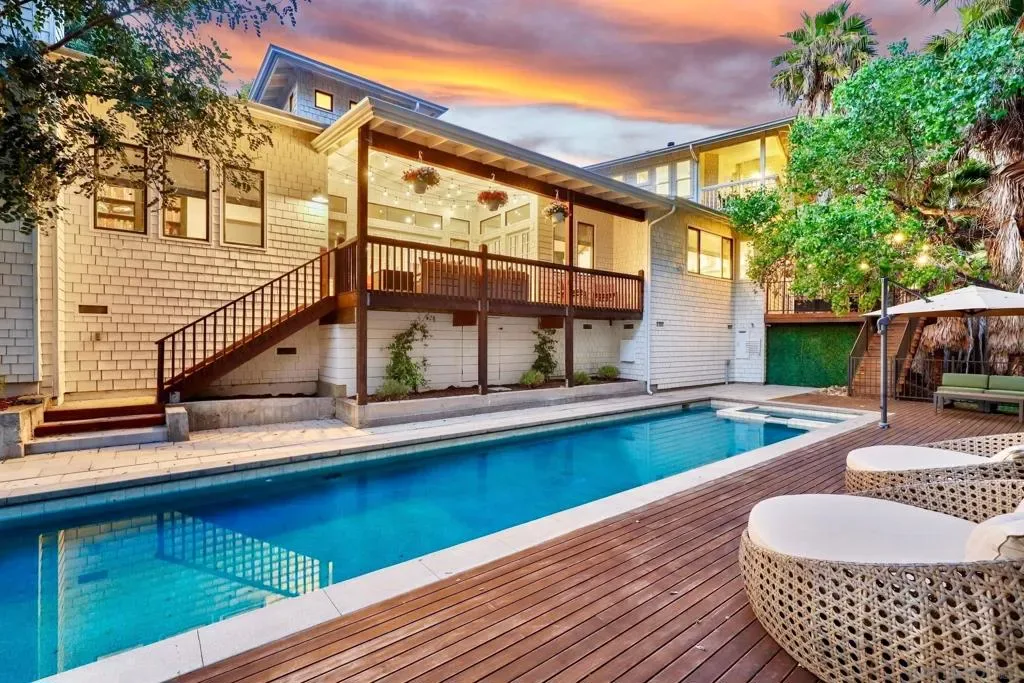 Fall in love with this exquisite Mount Helix Dream Home, featuring a private detached two-bedroom guest house and a 70-foot saltwater lap pool and spa—offered fully furnished and truly move-in ready! This masterpiece is a testament to stylish, modern living with seamless indoor/outdoor living, creating a personal resort ideal for relaxing, dining al fresco, swimming, or entertaining across multiple expansive decks and outdoor spaces. Over $435,000 in recent upgrades highlight the impeccable attention to detail throughout both the main residence and guest house, including newly refreshed hardwood flooring, interior paint, custom window treatments, motorized shades, air conditioning, security and surround-sound systems, cutting edge WiFi, pool pump, rain gutters, stove/oven, and a custom-designed primary walk-in closet. Architectural features include soaring ceilings from 11 to 20 feet, multiple levels, and a dynamic layout that offers exceptional flow and visual interest. The gourmet chef’s kitchen is a showpiece with premium cabinetry, quartz countertops, decorative tile backsplash, a massive waterfall island, high-end stainless steel appliances, pendant lighting, and a reeded-glass walk-in pantry, opening seamlessly to the dining area. The living room offers warmth and sophistication with a striking stone fireplace and built-in library, while an additional flex room with built-in cabinetry and desk provides ideal space for work or relaxation, plus a cozy reading nook with bench seating. Upstairs, the luxurious primary suite features a private deck, fireplace, custom walk-in closet, and spa-inspired bathroom with walk-in shower, freestanding soaking tub, dual-sink vanity, and separate makeup vanity. Secondary bedrooms are generously sized with custom closets, including one with a built-in loft, and designer bathrooms continue the home’s upscale finishes with quartz counters and decorative tile. Additional highlights include a spacious laundry room, detached two-car garage, and ample extra parking. The detached guest house mirrors the quality of the main home, offering two bedrooms, a stylish full bathroom with walk-in shower and floating vanity, a full kitchen with quartz countertops and stainless appliances, LVP flooring, a private deck, and a separate driveway—ideal for guests, multigenerational living, or rental income. Don’t miss this opportunity to live your most luxurious life in the iconic Mount Helix neighborhood, conveniently located near Murdock Elementary and minutes to entertainment, fine dining, shopping, downtown, airport, mountains, and our beautiful beaches!
