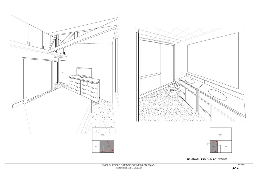 Step outside to a backyard patio, and enjoy a garage with hobbies space. Approved ADU plans allow a 409 sq. ft. garage conversion to 1 bedroom 1 bathroom with Kitchen & livingroom you can start a ADU after close of escrow no waiting save you time and Money this is the investor dream property since all ADU plans is approved & paid. Architecture, Title 24 & Structual engineering has beem fully paid in full only permit fees apply.