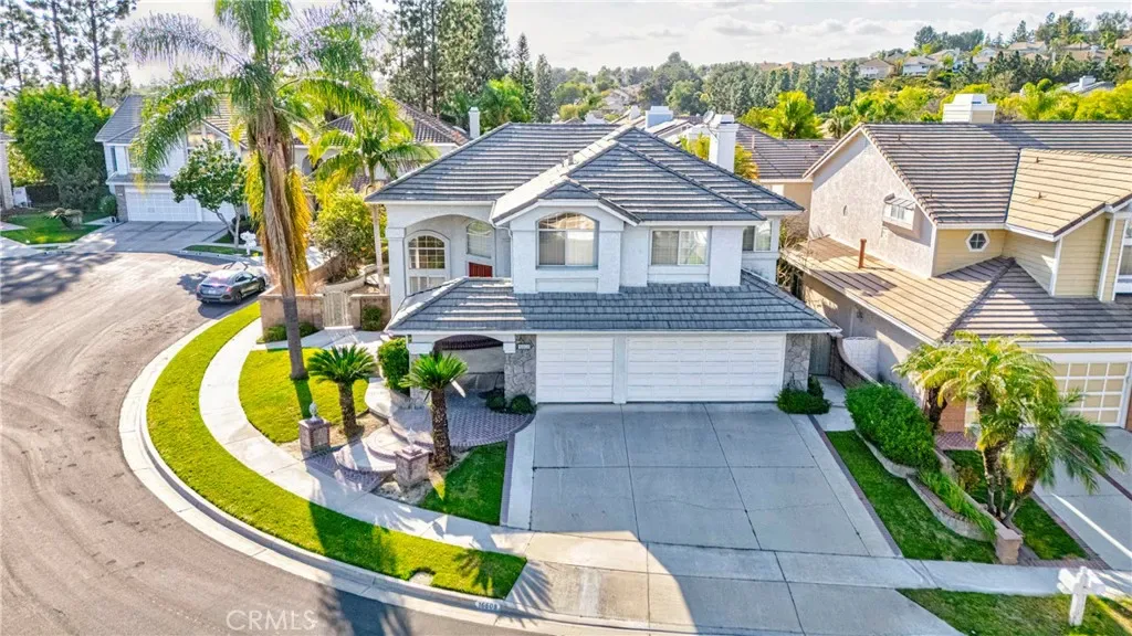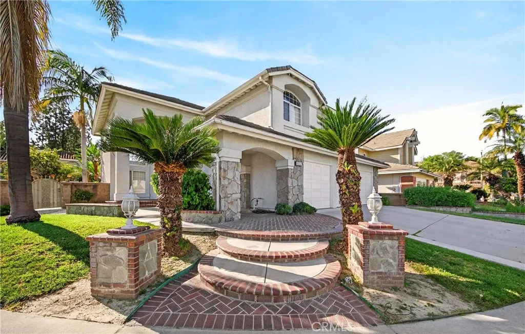 Located at the quiet end of a cul-de-sac, the home is ready for your personal vision. The inviting living room and formal dining area are perfect for gatherings, while the family room with brick fireplace and recessed lighting provides a cozy hub for everyday living. The open kitchen features ample cabinetry, solarium windows, and a casual dining area – all ready for your style and design ideas. A convenient half bathroom and inside laundry room complete the main floor. Upstairs, the spacious primary suite includes a cozy fireplace, luxurious bathroom with tub and separate shower, dual sinks, a generous walk-in closet, and sliding doors to a private balcony – ideal for morning coffee or quiet relaxation. Three additional bedrooms and a full bathroom offer flexibility for family, guests, or a home office. Step outside to a generous backyard with brick accents, a covered patio, and an expansive side yard – perfect for entertaining, gardening, or creating your own private retreat. Direct access to the three-car garage adds convenience. This property is being sold strictly “as-is.” Sellers will not complete any repairs, including termite work. To provide added peace of mind, a one-year Home Warranty Protection Plan will be included. Offering limitless opportunities to tailor every space to your style and needs, this home is ready for cosmetic updates and personalization. Low HOA dues ($140/month) include access to a community pool, spa, and clubhouse. Ideally located near Los Coyotes Country Club, Westridge Golf Course, and the 105-acre Clark Regional Park, with shopping and dining nearby at Westridge Plaza and La Habra Marketplace. A rare opportunity to combine location, space, and boundless potential – create the home you’ve always envisioned!
