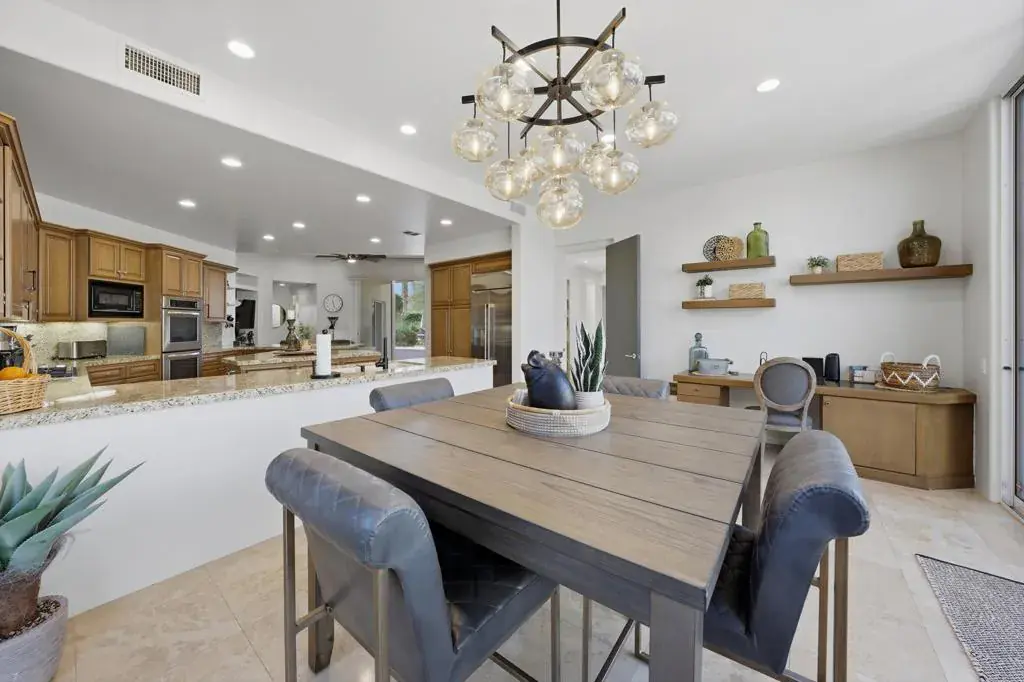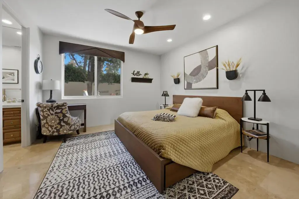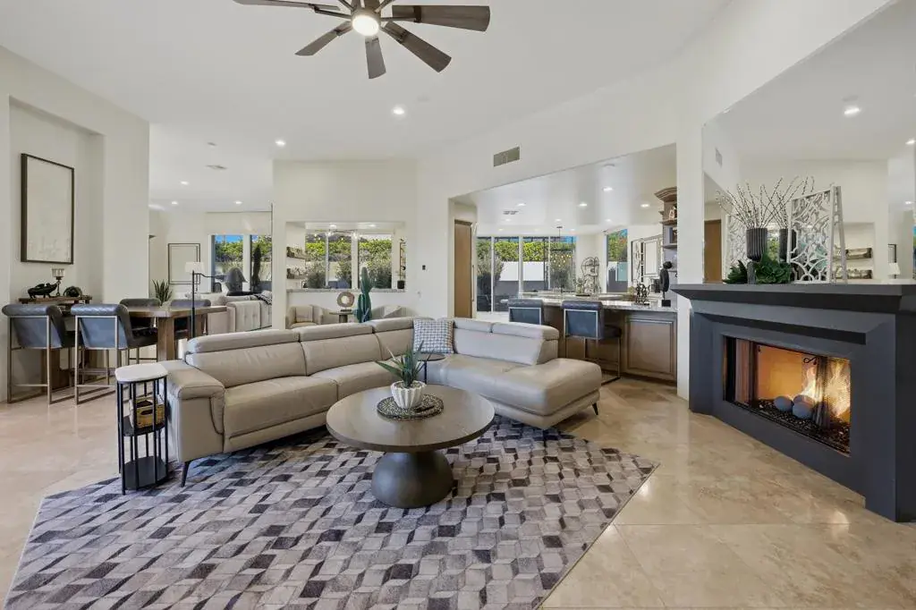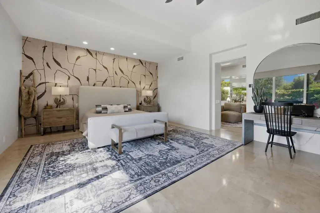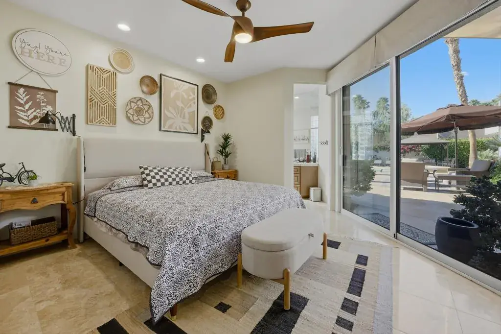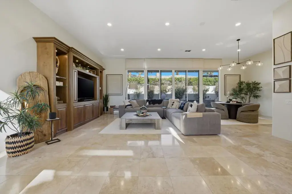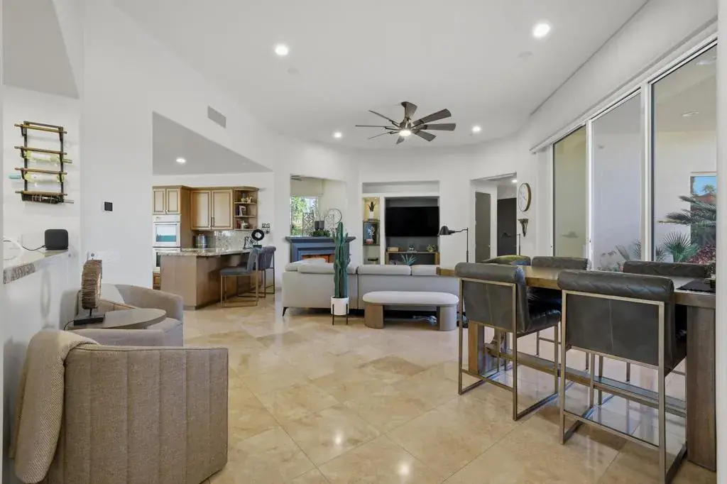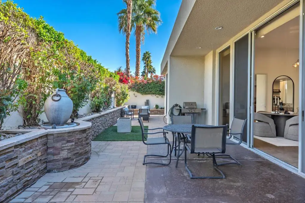 Welcome to your private desert retreat in the exclusive community of Painted Cove in La Quinta. This spacious and secluded residence is highlighted by breathtaking mountain views and a stunning central courtyard designed for true indoor outdoor living.Enter through a custom metal gate into a resort style courtyard featuring a large pool and expansive patio areas, creating a tranquil and private oasis perfect for relaxing, entertaining, or enjoying the desert sunshine. The courtyard serves as the heart of the home, offering exceptional privacy and dramatic mountain backdrops that can be enjoyed from multiple living spaces.Inside, the home features stone floors throughout and a gourmet kitchen with granite countertops, a generous center island, and a breakfast nook, ideal for both everyday living and hosting guests. Multiple rooms open toward the courtyard, allowing natural light and seamless access to the outdoor living areas.The primary suite offers a peaceful retreat with beautiful mountain views and a spa style bathroom. Additional bedrooms are well appointed and thoughtfully positioned for privacy and comfort.Ideally located in the heart of La Quinta, this home offers convenient access to world class golf, hiking trails, dining, shopping, and all that the Coachella Valley has to offer, while still providing a quiet and private setting to unwind and enjoy the desert lifestyle.