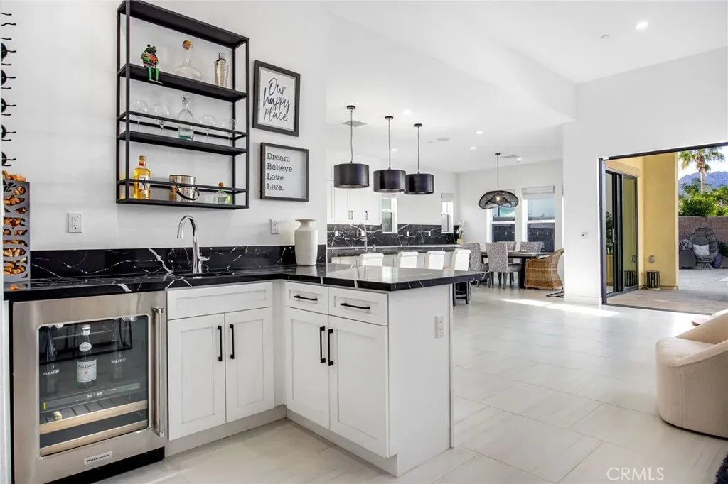 Nestled within the sought-after community of Stone Creek Ranch in South La Quinta, this newly built Toll Brothers Larrea model showcases contemporary design, quality craftsmanship, and effortless indoor-outdoor living just minutes from PGA West. Thoughtfully designed for both everyday comfort and entertaining, the open concept floor plan features soaring ceilings and expansive stacking glass doors that seamlessly connect the interior living spaces to a professionally landscaped backyard. Outside, enjoy pavers, artificial turf, mountain views, a built-in fireplace, fire pit, multiple seating areas, and generous side yards offering added flexibility for recreation or future use. The kitchen serves as the heart of the home, appointed with waterfall-edge countertops, premium JennAir smart appliances, custom cabinetry, a spacious walk-in pantry, and dedicated coffee and wine bars complete with a built-in refrigerator. This home features a wide array of Toll Brothers builder upgrades, thoughtfully selected to enhance both style and functionality while maintaining a cohesive, high-end aesthetic. Custom window treatments and elevated finishes continue throughout. Designed with privacy in mind, the floor plan separates the primary suite from the guest bedroom and office. The spacious primary retreat offers oversized closets, dual vanities, and spa-inspired finishes. A dedicated office provides versatility for remote work, a home gym, or creative space. Thoughtful built-ins and well-planned cabinetry deliver abundant storage throughout. Additional features include paid solar, energy-efficient systems, a covered patio for year-round enjoyment, and a 3-car garage. Move-in ready and beautifully upgraded, this exceptional home offers modern luxury in a prime South La Quinta location near world-class golf, dining, and recreation.