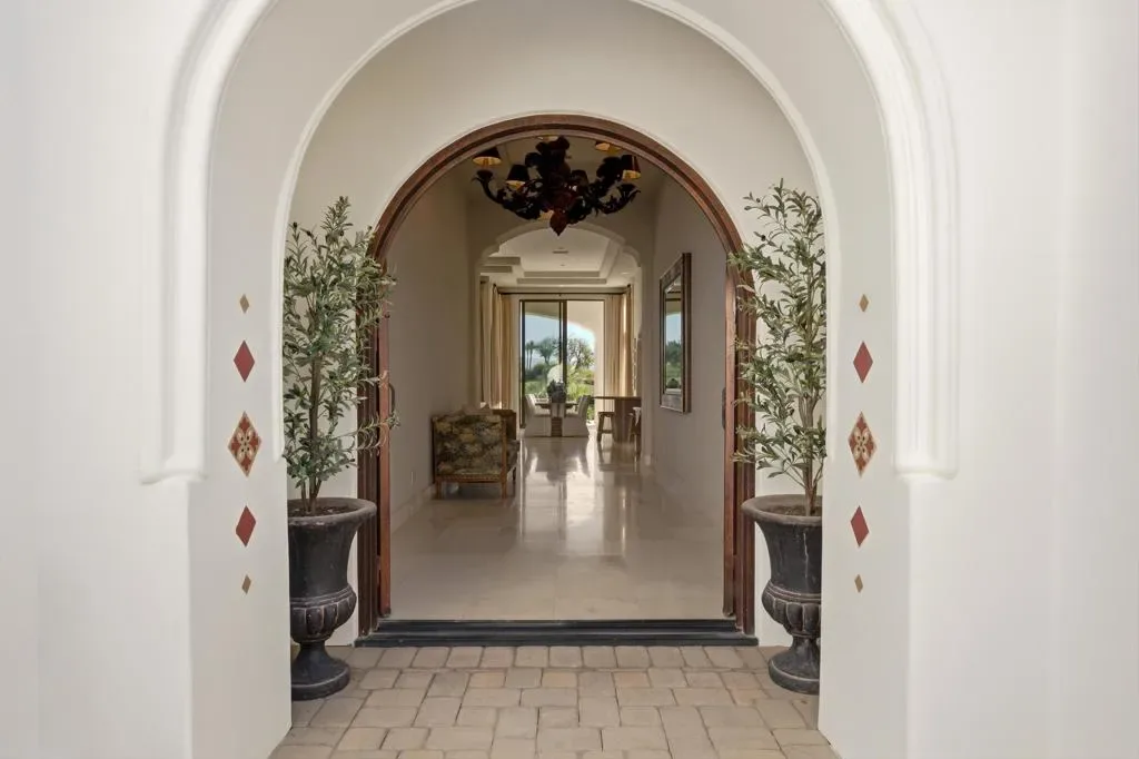 Located behind the gates of Andalusia Country Club, this exquisitely furnished 3,177 sq. ft. residence offers 4 bedrooms, 5 bathrooms, and a private detached casita, blending timeless desert elegance with modern comfort. Thoughtfully designed with a refined open-concept floor plan, the home showcases expansive living spaces that flow effortlessly from indoors to out – ideal for both intimate gatherings and unparalleled entertaining. Positioned along the 6th fairway of the Rees Jones designed course, the property captures serene golf course vistas while preserving a sense of privacy and tranquility. Outdoor living is equally exceptional, featuring a resort-style backyard complete with a pool, built-in BBQ, and fire pit – creating an inviting setting for both relaxed evenings and elevated entertaining. A spacious private courtyard offers an additional layer of seclusion and charm, perfect for enjoying quiet mornings or welcoming guests in a more intimate setting. Each bedroom serves as a luxurious retreat, complete with its own en-suite bath, while the detached casita provides a refined and private experience for visitors. Every detail has been curated to deliver a seamless experience, making this residence an exceptional opportunity to enjoy the finest in desert living. Come live the life you’ve always imagined!