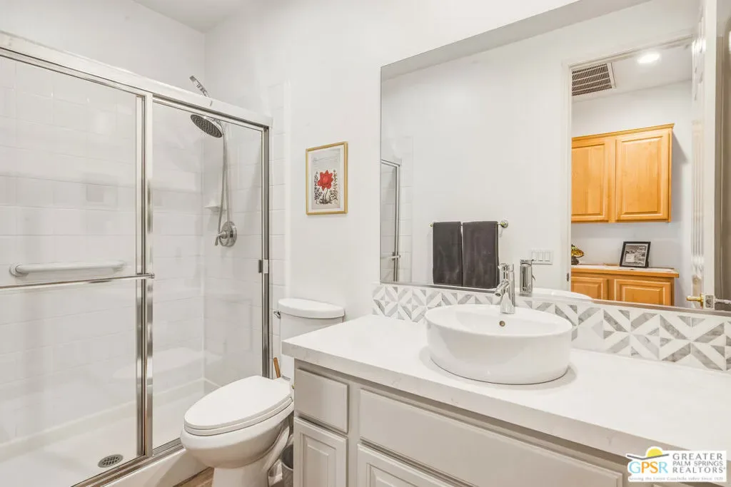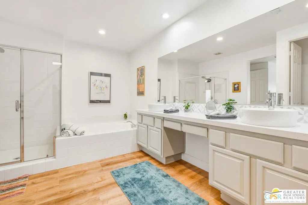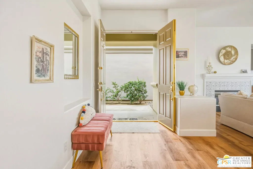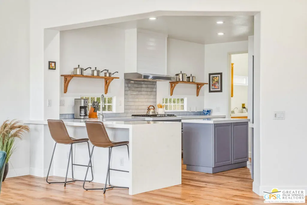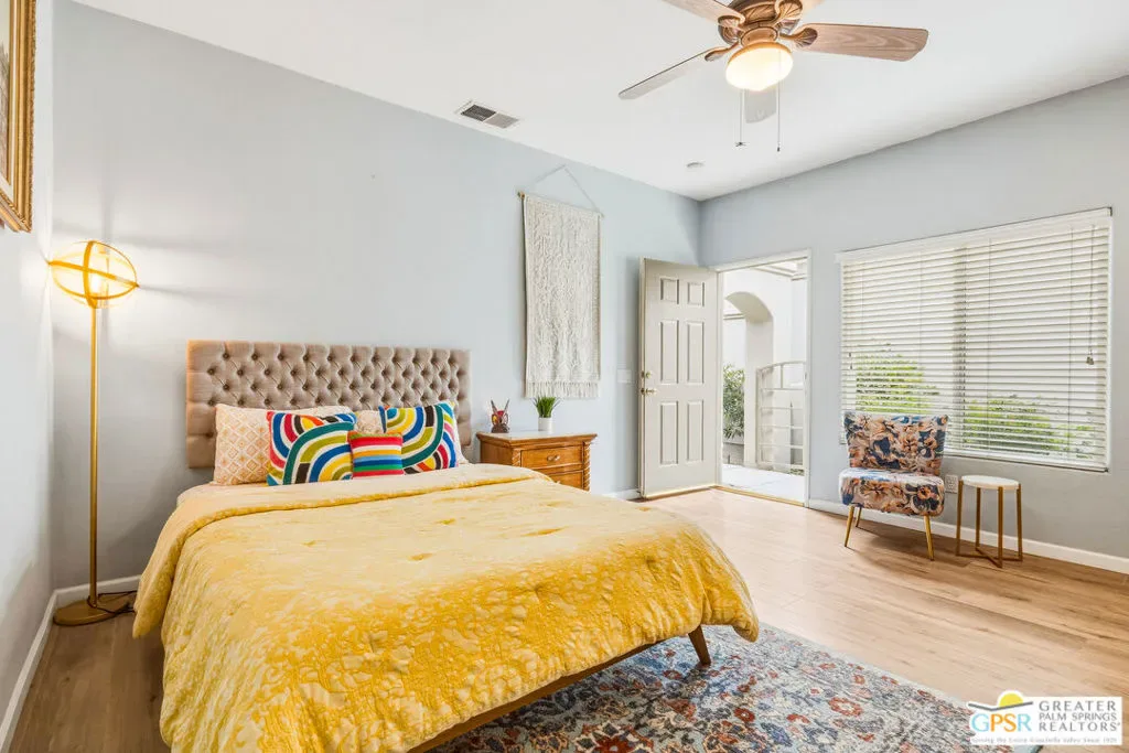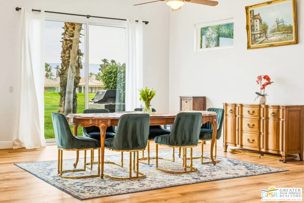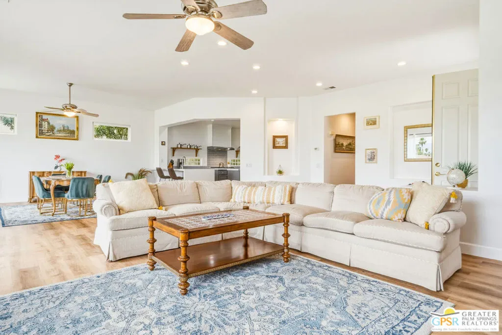 Located in the scenic community of Duna La Quinta, this beautifully appointed 3-bedroom, 3-bath casita-style home offers 2,412 sq. ft. of comfortable desert living. Enter into a light-filled interior designed for both relaxation and entertaining.The expansive great room and dining area showcase stunning mountain and fairway views, complemented by luxury vinyl wood-look flooring, a cozy fireplace, a built-in entertainment niche, and dual sliding doors that open to the back patio. The updated kitchen is a chef’s delight, featuring quartz countertops, a center island, stainless steel appliances, and a 5-burner gas stove. The spacious primary suite is a private retreat, accessed through double doors and offering direct outdoor access. The en-suite bath includes dual vanities, a soaking tub, a shower, and a generous walk-in closet. Guests will appreciate the attached casita with its own private entrance, complete with a serving bar, separate bath, and ample closet space, which is ideal for visitors or extended stays. Step outside to your back patio and unwind while taking in sweeping golf course views and breathtaking desert scenery. Residents of Duna La Quinta enjoy a gated community with pools and spas, greenbelts, and a dog park. Conveniently located near Old Town La Quinta, you’ll be just minutes from world-class dining, shopping, entertainment, hiking, golf, and tennis.