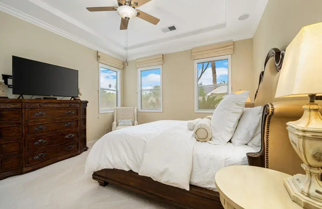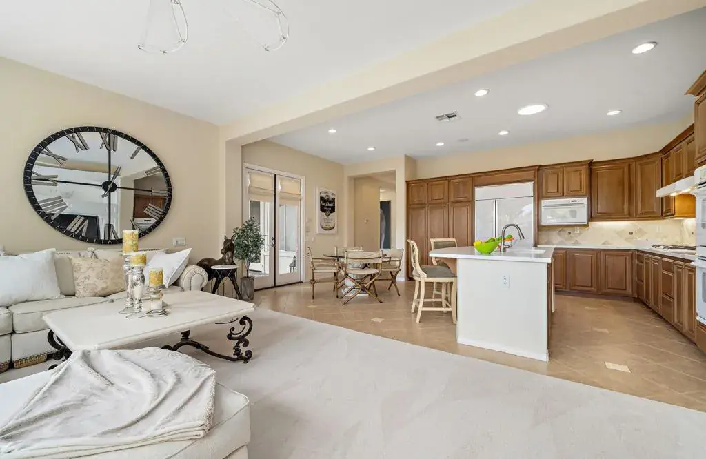 Welcome to Esplanade, a prestigious gated community in the heart of La Quinta, where refined design meets the relaxed sophistication of desert living. This impeccably maintained residence offers an effortless blend of comfort, elegance, and resort-style living in one of the Coachella Valley’s most desirable locations.A light-filled open floor plan with soaring ceilings and expansive windows creates a sense of space and serenity throughout. With over $200,000 in pre and post closing upgrades, there’s a lot to appreciate in the finer details. The chef’s kitchen anchors the home with sleek quartz countertops, premium finishes, and a substantial island designed for both intimate mornings and elevated entertaining.The living spaces transition seamlessly outdoors to a private backyard retreat featuring a shimmering pool and spa, framed by breathtaking mountain views. Whether hosting under the stars around the fire pit or enjoying quiet afternoons in the sun, this outdoor oasis delivers true desert luxury.The home features three generously sized bedrooms and three refined baths, including a tranquil primary suite with an oversized walk-in closet and direct access to the patio through elegant French doors. A dedicated office or flexible living space adds versatility for modern lifestyles, while the three-car garage and curated upgrades throughout enhance both form and function.Esplanade offers a prime location just moments from world-class golf, tennis and pickleball, upscale shopping and dining, the Acrisure Arena, and the charm of Old Town La Quinta.Ideal as a full-time residence, seasonal escape, or investment opportunity, this exceptional home embodies elevated desert living at its finest. Private showings available–experience it for yourself.