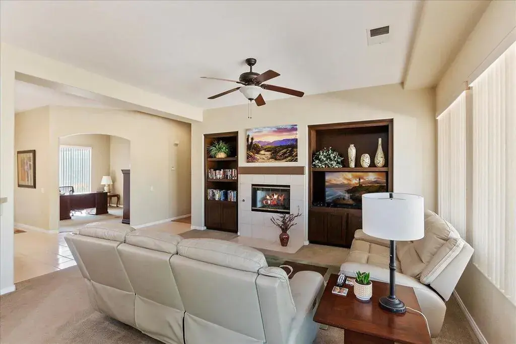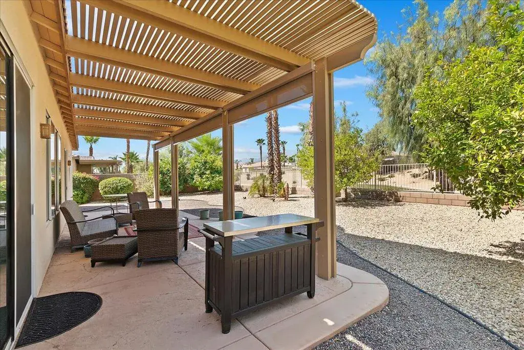 Welcome to Corte Del Oro in the sought-after Esplanade development inLa Quinta where comfort, convenience, and charm converge. This well-maintained home sits on an elevated lot with sweeping southwest-facing views of the mountains and lush greenbelt. Inside, you’ll find three spacious bedrooms plus a den, that can also be used as a bedroom, a cozy fireplace in the living room, and a newer water heater already in place. Step outside and enjoy the Alumawood awning with manual shadesa’perfect for relaxing afternoons or entertaining friends. With a two-car garage and being mostly furnished, this home is ready for you to move in and make it your own. Just minutes from shopping and dining at Fred Waring and Jefferson, and only 8 minutes to major retail centers. La Quinta is truly the gem of the desert and this home lets you experience it all.