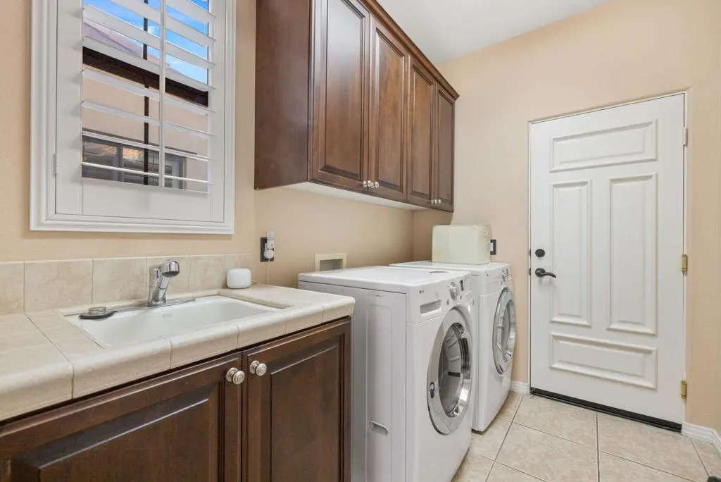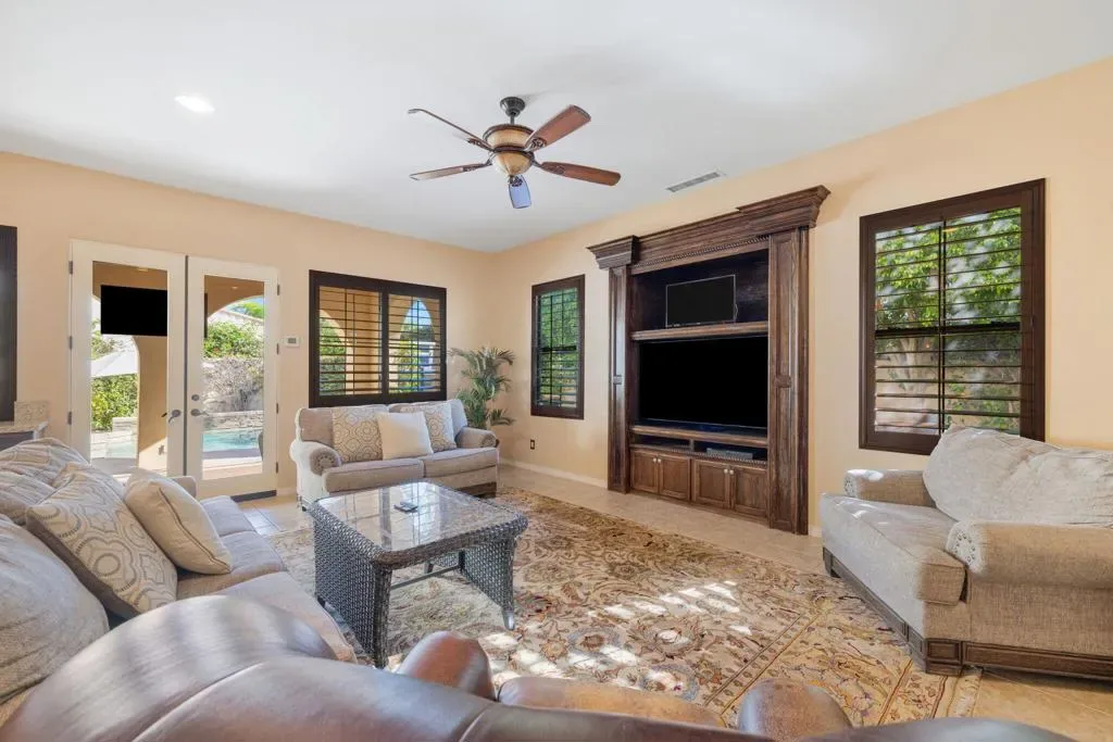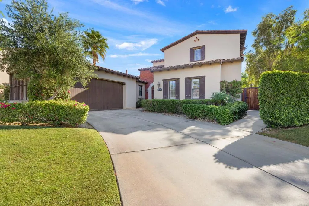 Welcome to one of the most distinctive homes in the prestigious gated community of La Cantera–where timeless design meets elevated desert living. Thoughtfully customized from top to bottom, this residence showcases rich wood-planked ceilings, striking brick fireplace accents, and curated built-ins that add both warmth and character throughout.Designed for both everyday comfort and memorable entertaining, the home features a formal dining room, stylish wet bar, and plantation shutters that complement the refined interior aesthetic. The chef’s kitchen is a true showpiece, appointed with premium Thermador stainless steel appliances, generous prep space, and seamless flow into the main living areas.The highly desirable floorplan offers two bedrooms on the main level, including a stunning primary retreat that feels like a private sanctuary. Upstairs, you’ll find two additional bedrooms and a spacious loft, along with double French doors that open to a breathtaking balcony–perfect for soaking in sweeping southwest mountain views. Step outside to your own private resort-style backyard, where a large covered patio overlooks a beautifully designed pool with an oversized Baja shelf, spa with dual fire features, and a fully equipped outdoor kitchen. Lush landscaping and mature fruit trees complete this serene outdoor escape, creating a setting that is as inviting as it is unforgettable. Residents of La Cantera enjoy a private, gated setting known for its tranquil streets, scenic surroundings, and pride of ownership. Ideally situated in the heart of La Quinta, this home offers convenient access to world-class golf at nearby courses within PGA West, upscale shopping and dining at Old Town La Quinta, and endless outdoor recreation including hiking, biking, and nearby equestrian trails. Whether you’re seeking a full-time residence or a luxurious desert retreat, this location truly captures the best of the Coachella Valley lifestyle.