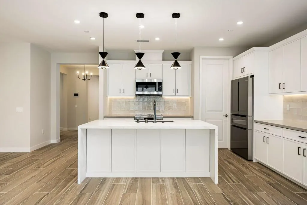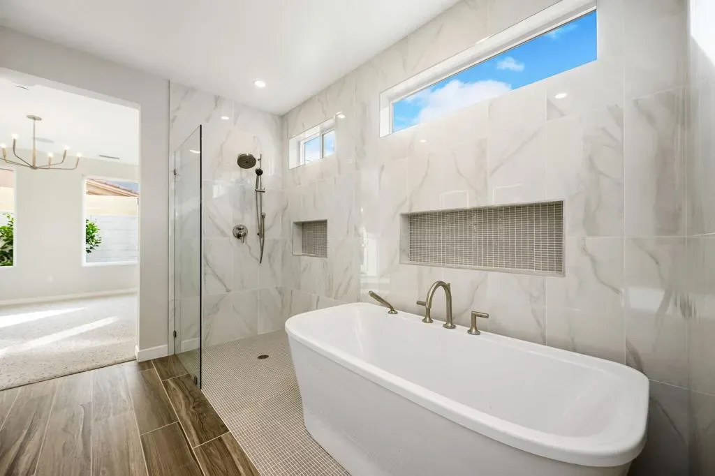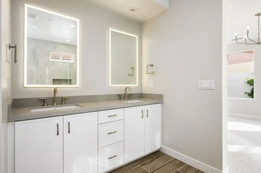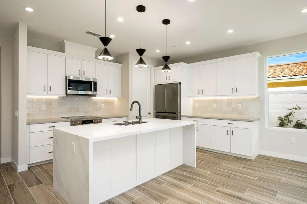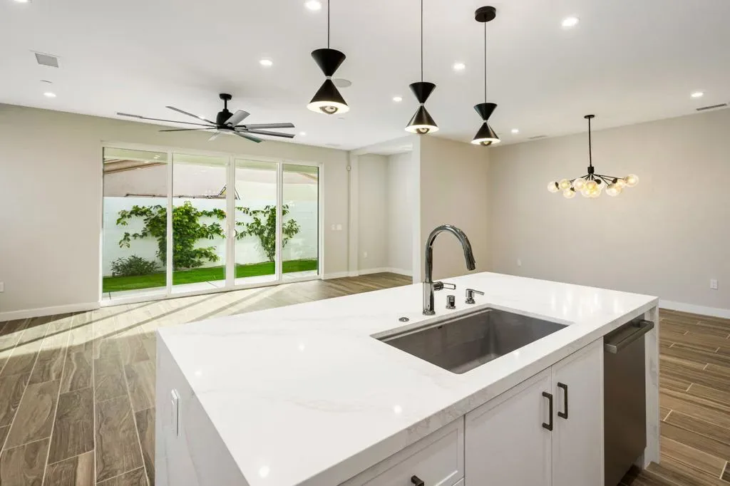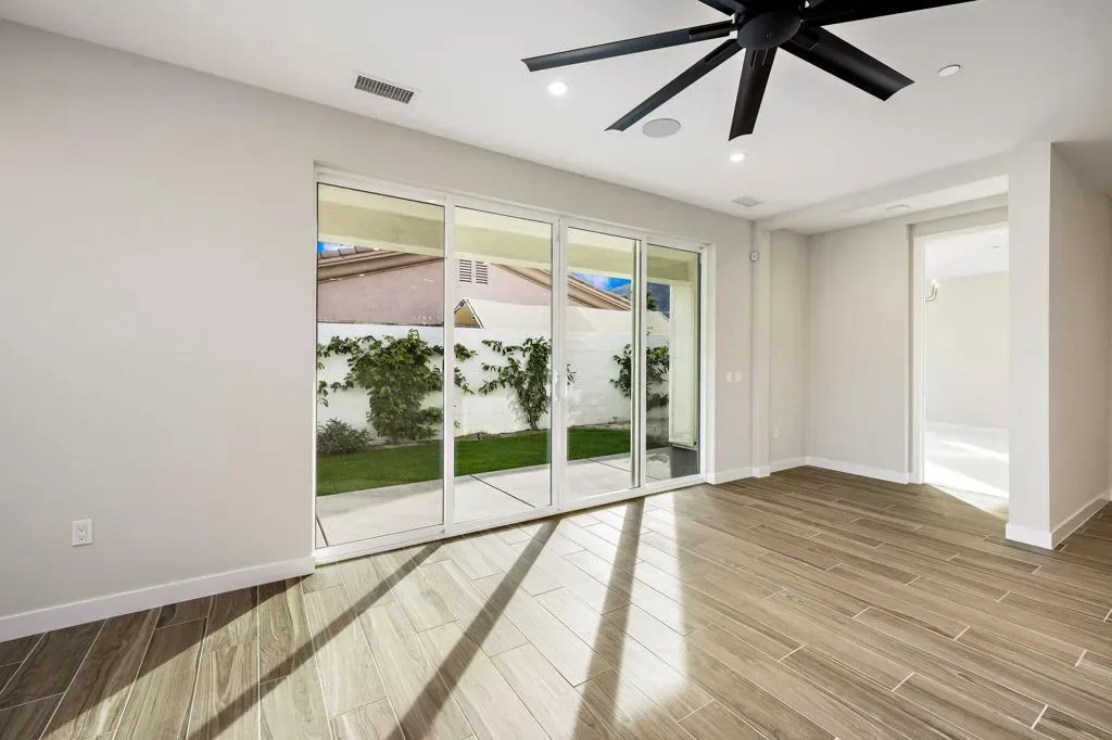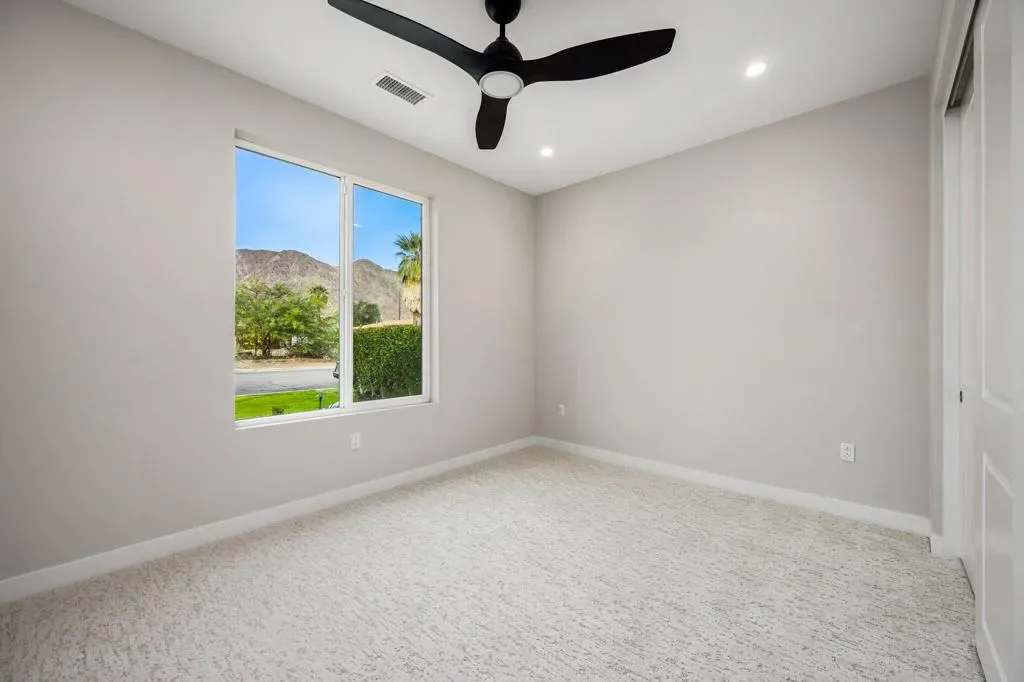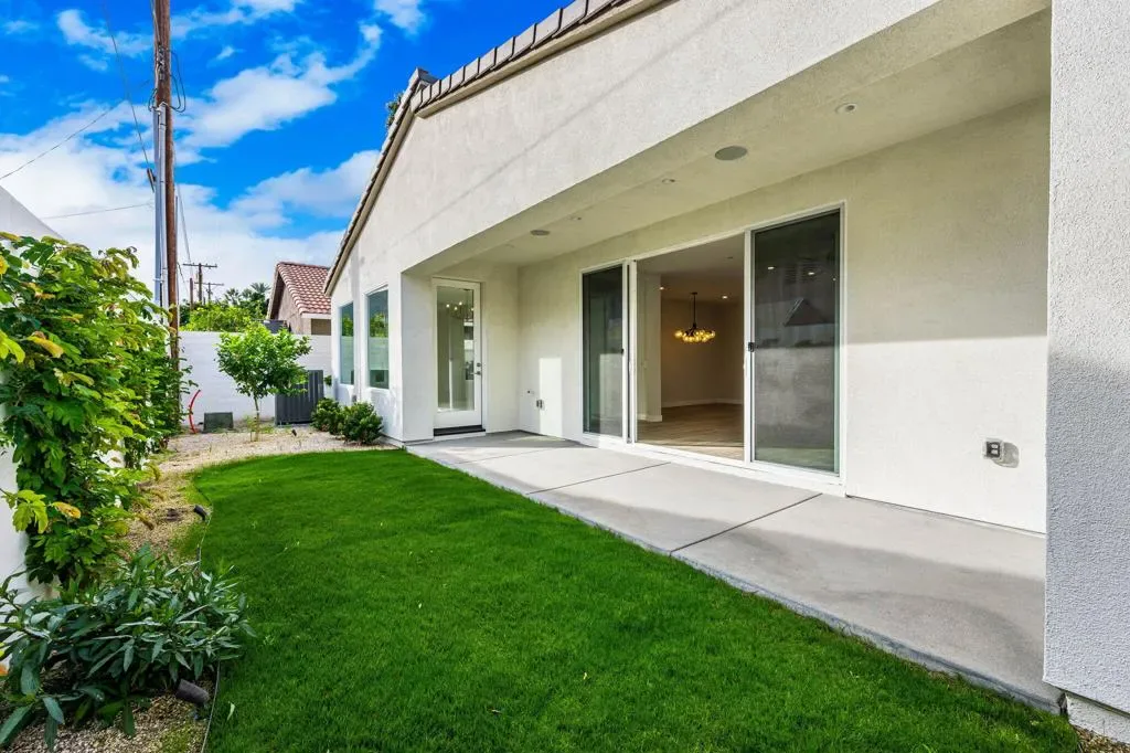 Set within La Quinta Cove, this newly constructed modern residence by award-winning GHA Companies offers a refined yet livable approach to desert architecture. The design is clean and contemporary, shaped by light, proportion, and an easy sense of flow that feels natural rather than forced. From the entry, the home opens into a bright, expansive great room where living, dining, and kitchen spaces connect as one continuous environment. Tall ceilings and an open layout with integrated speakers throughout create a sense of volume and calm, allowing the home to breathe. The kitchen anchors the space with quartz countertops, a generous modern island, Bosch appliances, walk-in pantry, and curated finishes that feel intentional without being overdesigned. Large sliding glass doors extend the interior to a covered patio and a low-maintenance, drought-conscious landscape, creating a natural transition between indoor and outdoor living. The home is designed to move easily with the rhythm of the desert, open in the morning, relaxed in the evening, and effortless in between. The primary suite is positioned as a quiet retreat with direct patio access and a spa-style bath featuring dual vanities, clerestory windows, a walk-in shower, separate soaking tub, and a custom walk-in closet. Two junior ensuites, each with their own private bath, offer flexible space for guests, family, or work-from-home use, along with a separate guest bath. Additional features include owned and paid-for solar, keyless entry, integrated security system, a dedicated laundry room with utility sink, attached two-car garage, west-facing facade, and no monthly HOA fees. Conceptual rendering shows room for front facing pool. Located just minutes from Old Town La Quinta and moments from world-class dining, golf, shopping, resorts, and entertainment, this home offers a modern desert lifestyle defined by design, comfort, and long-term livability.