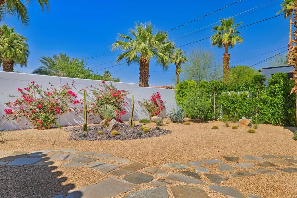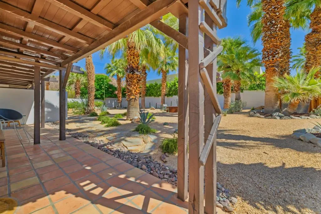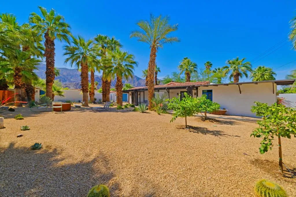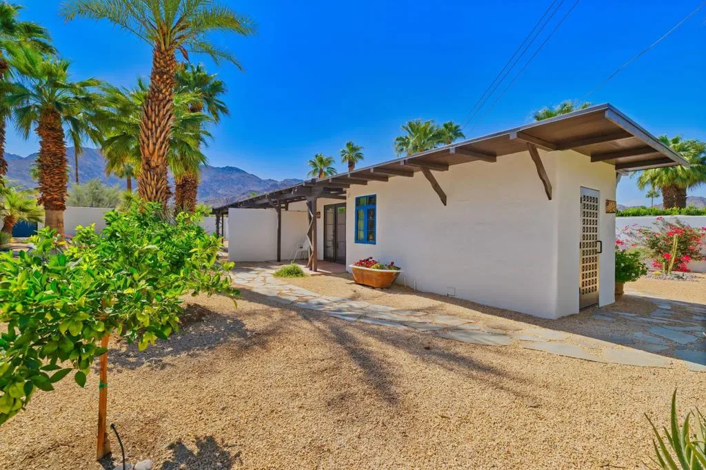 One of only 63 original La Quinta Cove Casitas ever built and affiliated with the iconic Desert Club, this lovingly restored home is a true piece of desert history. Thoughtfully updated with custom windowpanes that preserve its authentic charm, the Casita sits amid breathtaking panoramic mountain views and mature palm trees offering a serene, resort-like atmosphere. The charming and tranquil ambiance must be experienced in person to be appreciated! This is an opportunity to own a piece of La Quinta’s history in one of its most picturesque settings.Situated on a rare double lot composed of two separate parcels the property presents endless possibilities: build a second home to create a one-of-a-kind desert compound or enjoy the expansive backyard as-is with ample space to add a pool, guesthouse, or custom outdoor living features.The La Quinta Cove offers a unique lifestyle just steps away from dining and events in Old Town La Quinta and hiking on the Cove trails in the Santa Rosa Mountains. As one of the few non-HOA areas in La Quinta, the Cove provides all of the benefits of being in this wonderful desert city without the expense and regulations of an HOA.