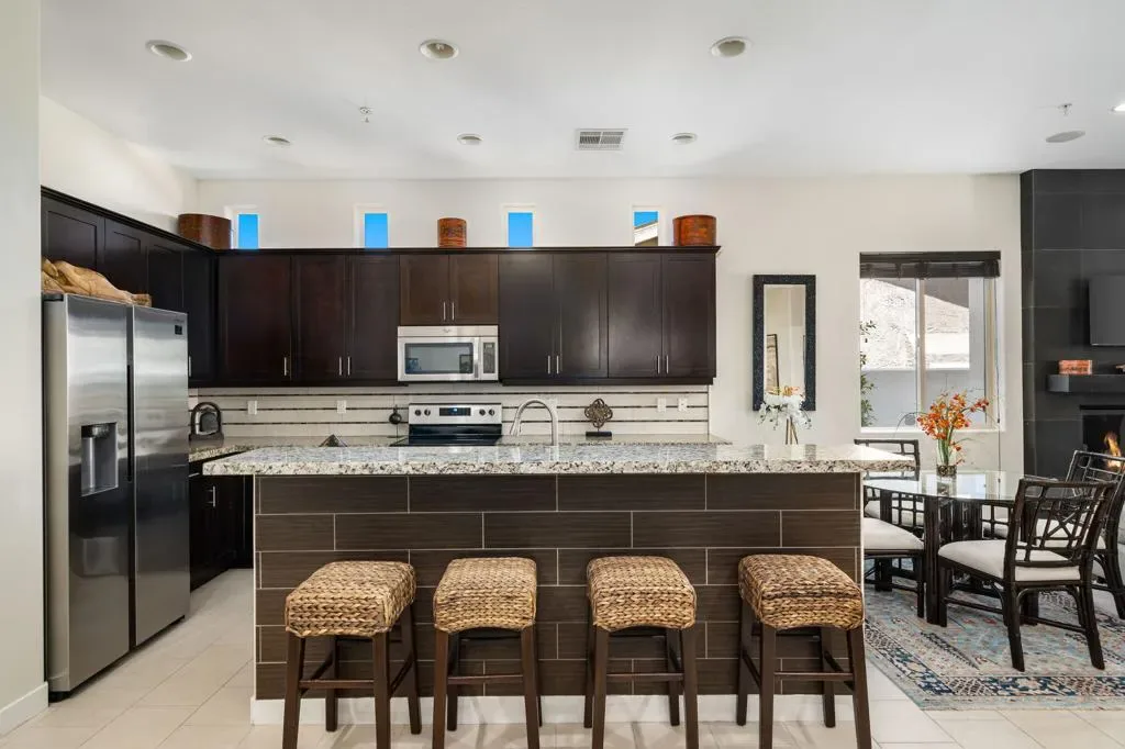 Charming Custom Home in La Quinta Cove – Available for Long-Term or Seasonal Rental! Experience the best of desert living in this beautifully turnkey furnished La Quinta Cove home, ideally located near scenic hiking and biking trails and just minutes from the shops and restaurants of Old Town La Quinta. Enjoy breathtaking mountain views from the front courtyard featuring a private pool, spa, and outdoor dining/lounging area, perfect for relaxing or entertaining and desert lifestyle. Inside, the open-concept floor plan boasts a spacious great room with a comfortable family area, fully equipped kitchen, and dining/entertainment space. The well-separated bedrooms offer privacy and comfort. Primary suite with a king bed, en-suite bath (dual vanities, soaking tub, walk-in shower, and closet), and direct access to the private back patio with sofa seating and dining area. Second bedroom with two twin beds and a desk for a convenient home office setup. Third bedroom with a queen bed. The second and third bedrooms share a dual-vanity bathroom with a separate tub/shower and toilet area. Additional powder room off the great room for guests. Additional features include a laundry room with sink and full-size washer/dryer, attached garage with space for one car, and driveway parking. This home is turnkey furnished and ready to enjoy. Rental Rates: Long-Term (6 months+): $3,900/month, Seasonal/Monthly: April – Oct 2026 – $3900/month, Nov – Dec 2026: $5,000/month, Jan 2027: $5,500/month, Feb 2027: $6,000/month, March-April 2027: $7,000/month, Inquire for multi-month bookings. RENTED FEB/MARCH 2027.