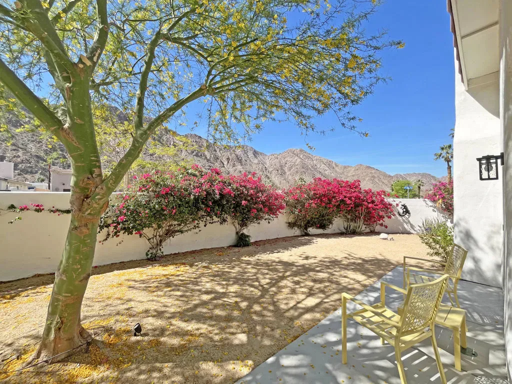 Located on a quiet corner lot in the scenic La Quinta Cove with DRAMATIC MOUNTAIN VIEWS, this exceptional, NEWLY UPDATED AND Partially FURNISHED HOME delivers the perfect balance of all the modern comfort and unparalleled desert charm. NO HOA, and no land lease. Whether you’re looking for a full-time residence, vacation getaway, or investment property with steady revenue, this low-maintenance home checks every box. Built in 2002 and updated in 2025 inside and out with designer finishes.Stepping in from the charming gated courtyard you will enjoy an OPEN CONCEPT LAYOUT featuring vaulted ceilings with abundant natural light. The kitchen is a modern workspace with wood construction cabinetry, BRAND NEW ENERGY EFFICIENT STAINLESS STEEL APPLIANCES AND QUARTZ COUNTERTOP. It also features a wood paneled range hood and a long peninsula to provide greatest function and pleasing aesthetics at the same time. The floor plan offers easy flow through the dining and living areas which is great for entertaining. The bright living room is anchored by a cozy fireplace. From there, step outside through the sliding door to the west facing peaceful OUTDOOR SPACE that is sure to impress with breathtaking views framed by happy bougainvillea . There is ROOM FOR A POOL, or other personalized landscaping. The PRIMARY SUITE – also with direct access to the outdoors – is a nice retreat, complete with a stunning en-suite bathroom with OVERSIZED TILED WALK-IN SHOWER, all new fixtures and designer wallpaper along with a WALK-IN CLOSET. The TWO ADDITIONAL BEDROOMS offer flexibility for family life, guests or a home office with a shared full bath. Additional conveniences include an interior laundry room and an attached 2 car garage with storage space and extra outdoor space at the back of the garage. Electricity is provided by IID, known for lower utility rates. This highly sought-after La Quinta neighborhood offers quick access to excellent dining and entertainment opportunities in Old Town La Quinta. Enjoy the weekly farmers market, the thriving arts scene and the scenic HIKING TRAILS JUST 2 BLOCKS AWAY. Golfers will find themselves surrounded by world-class courses, and it’s an easy drive to downtown Palm Springs, the high end shopping of Palm Desert’s El Paseo or Indio’s world famous music festivals! Adjacent empty lot is also for sale if you wanted to extend the property.