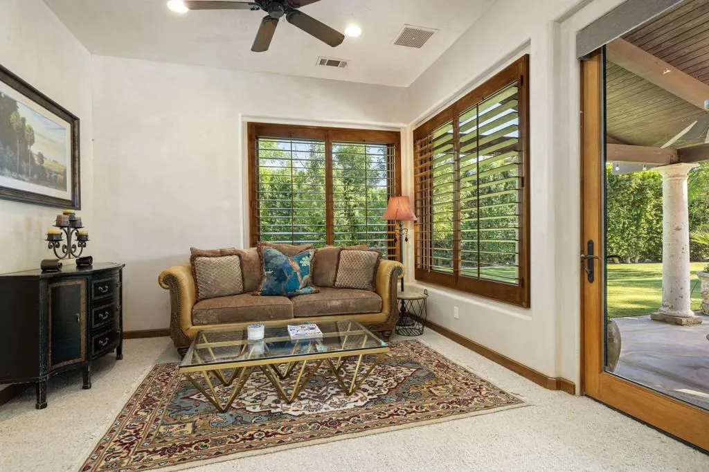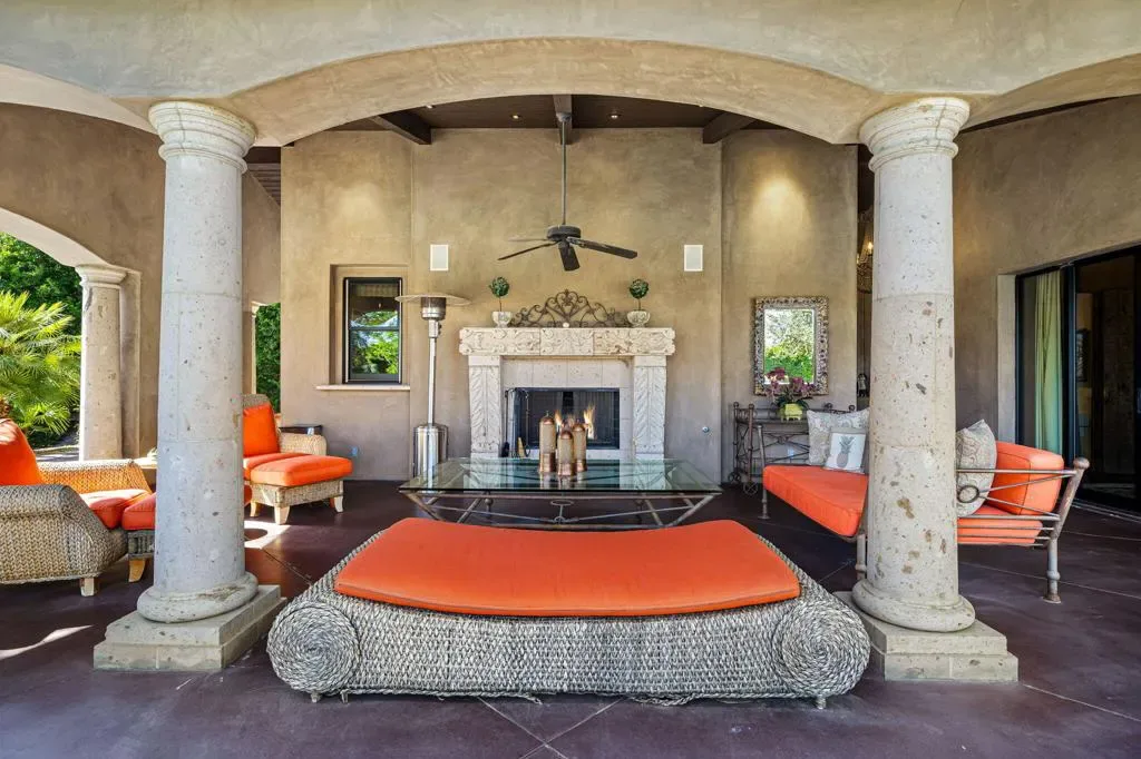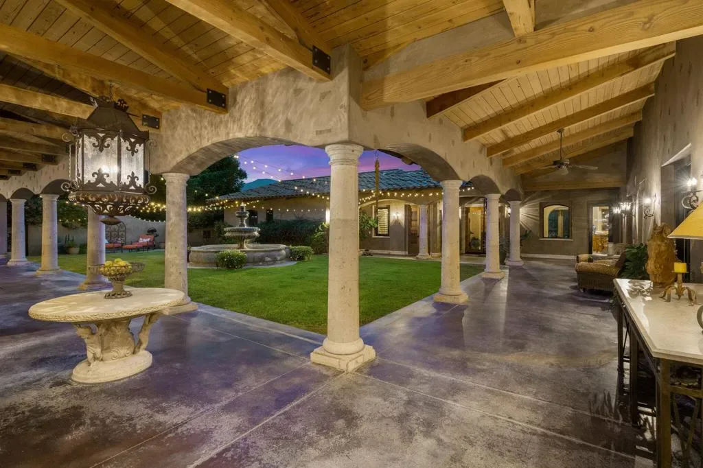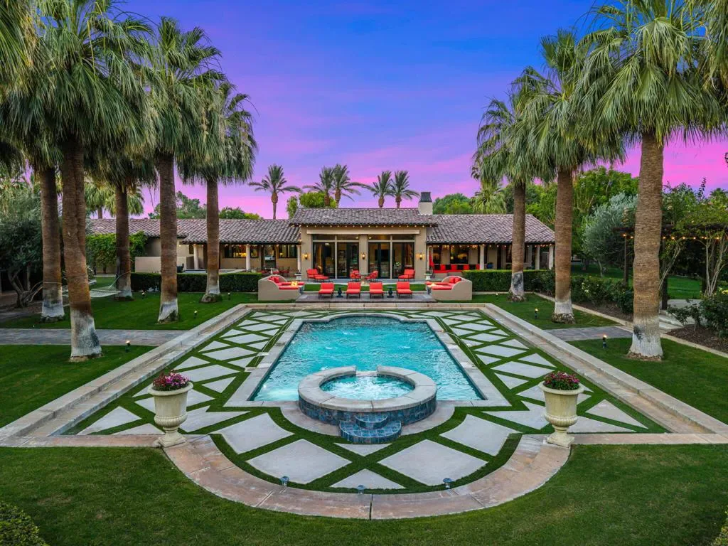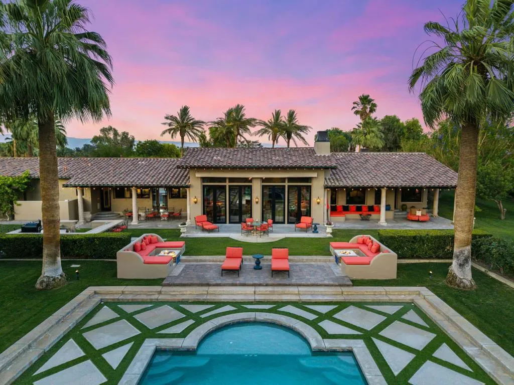 Wow! New listing with $600K Price Improvement! Imagine entering through a majestic, gated entry lined with towering Palm Trees to an extraordinary Estate that exudes unparalled luxury and exquisite style. This Elegant Spanish residence is known as Casa Del Sueno or Dream House, a tranquil luxury Estate located in the exclusive gated enclave of La Quinta Polo Estates. Meticulously kept and highly upgraded by the Owners, this property blends Old World Charm with modern elegance and breathtaking views of the Santa Rosa Mountains, expansive indoor/outdoor entertaining spaces and resort-style amenities including a sparkling pool & spa surrounded by swaying, majestic palm trees, two custom stone firepits w/built in lounge seating adjacent to a two bedroom guesthouse & a grand outdoor living room with fireplace to enjoy evenings under the stars. Casa Del Sueno is set on over 2 acres with sprawling lawns, stone walkways, lush, verdant landscaping, mature shade trees, an orchard, vibrant bougainvillea & tropicals, grape vines over pergolas creating an inviting & serene oasis. This home is designed to offer ample space with multiple terraces, 3 guesthouses, cozy media room w/fireplace, bar & wine cellar. An expansive covered outdoor loggia and enchanting fountain as the centerpiece connects the guesthouse & media room to the main house, perfect for evenings relaxing in front of a crackling fire while playing billiards or lawn games surrounded by romantic hanging lights softly illuminating the area. This exquisite Estate offers 5 bedrooms w/ensuite baths, 7 bathrooms, chef’s luxury kitchen perfect for effortless entertaining, butler’s pantry, an elegant living room w/massive stone fireplace & floor to ceiling walls of glass and French doors that opens to a grand terrace & outdoor dining room/living area w/seating for 30+, outdoor kitchen, BBQ, & Poolside Bar. The master suite is a true retreat w/2 bathrooms, dressing room, living room and provides incredible views of the lush grounds & shimmering pool and French doors to a private covered terrace. This exceptional property includes superb architectural elements & sumptuous furnishings throughout. Adjacent to Eldorado Polo Club, the Hideaway & Madison, this gem offers a Magnificent setting and Spectacular views that provide a stunning backdrop to unwind & enjoy the beauty of the desert. This is a priceless opportunity to own a special piece of the Polo Estates, the finest real estate the Desert has to offer.