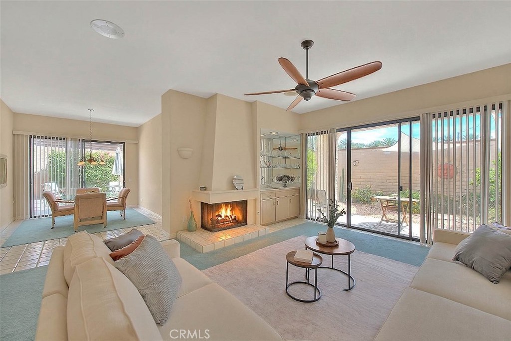 Enjoy relaxed desert living in the guard gated lake community of Laguna De La Paz. This spacious 3-bedroom, 3-bath home offers nearly 1,900 square feet of comfortable living space and a generous outdoor setting perfect for enjoying the La Quinta lifestyle. A private gated courtyard welcomes you into the home, leading to a bright and inviting living room featuring a fireplace and wet bar ideal for entertaining or relaxing at the end of the day. The formal dining area sits just off the main living space, while the kitchen includes a casual dining nook for everyday meals. The primary suite offers a comfortable sitting area and an ensuite bath with a sunken tub, separate shower, and access to a peaceful atrium. Two additional bedrooms are thoughtfully positioned on the opposite side of the home, each with their own bathroom, providing excellent privacy for guests or family. One of the bedrooms is currently used as a dedicated home office with natural light and mirrored wall for expanded feel. Sliding doors from the living room, dining room, and primary suite with fireplace open to a spacious wraparound patio complete with a fire pit and BBQ area perfect for entertaining or enjoying quiet desert evenings. This home also features a brand new air conditioning system that provides year round comfort and efficiency, an exceptional upgrade for desert living. Laguna De La Paz residents enjoy resort-style amenities including 11 pools, 12 spas, a scenic lake with electric and paddle boats, tennis and pickleball courts, a fitness center, and clubhouse. Ideally located near premier golf courses, dining, entertainment, and casinos, with Old Town La Quinta and the iconic La Quinta Resort & Club just minutes away. Whether you’re seeking a full-time residence or a seasonal getaway, this home offers an exceptional opportunity to enjoy the best of desert living.