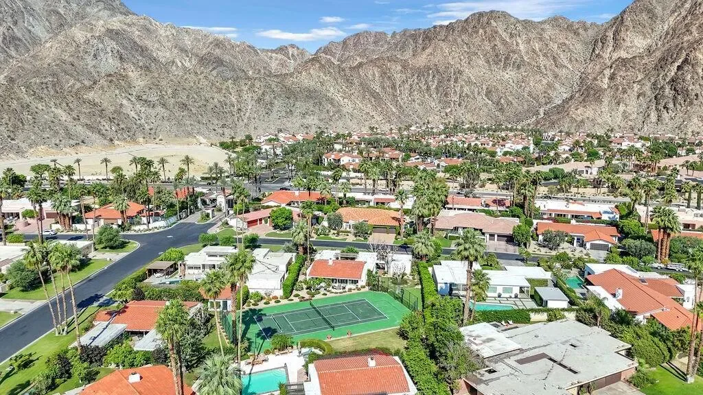 First time ever on the market, this truly rare compound residence within iconic La Quinta Country Club Golf Estates offers an exceptional blend of history, privacy, and resort-style living. With ties to tennis legend Jack Kramer, this approx. 2,300 SF home is set on an expansive approx. 14,500 SF lot and has been thoughtfully reimagined with commercial-grade windows, newer A/C units, newer water heaters, refined interiors, and effortless indoor-outdoor flow. The exceptional grounds are a true showpiece, featuring travertine patios, in-ground gas fire pits, sculptural elements, tranquil fountains, and lush mature landscaping that create the feel of a private resort compound. Offered turnkey furnished, the property also enjoys access to tennis, pickleball, pool, and putting green amenities shared by only three other homes.