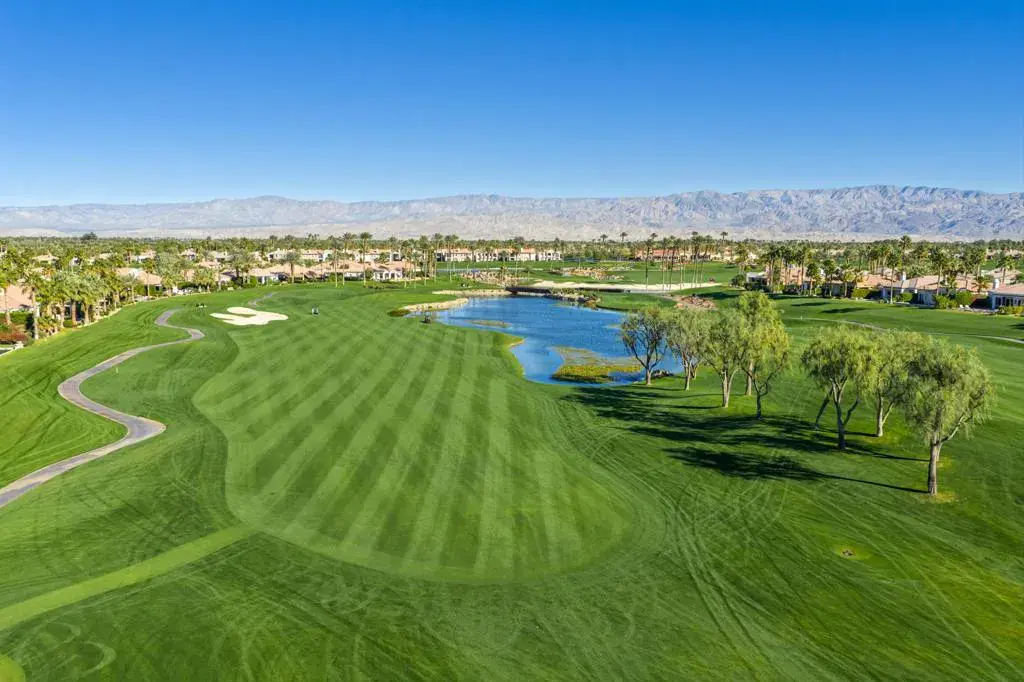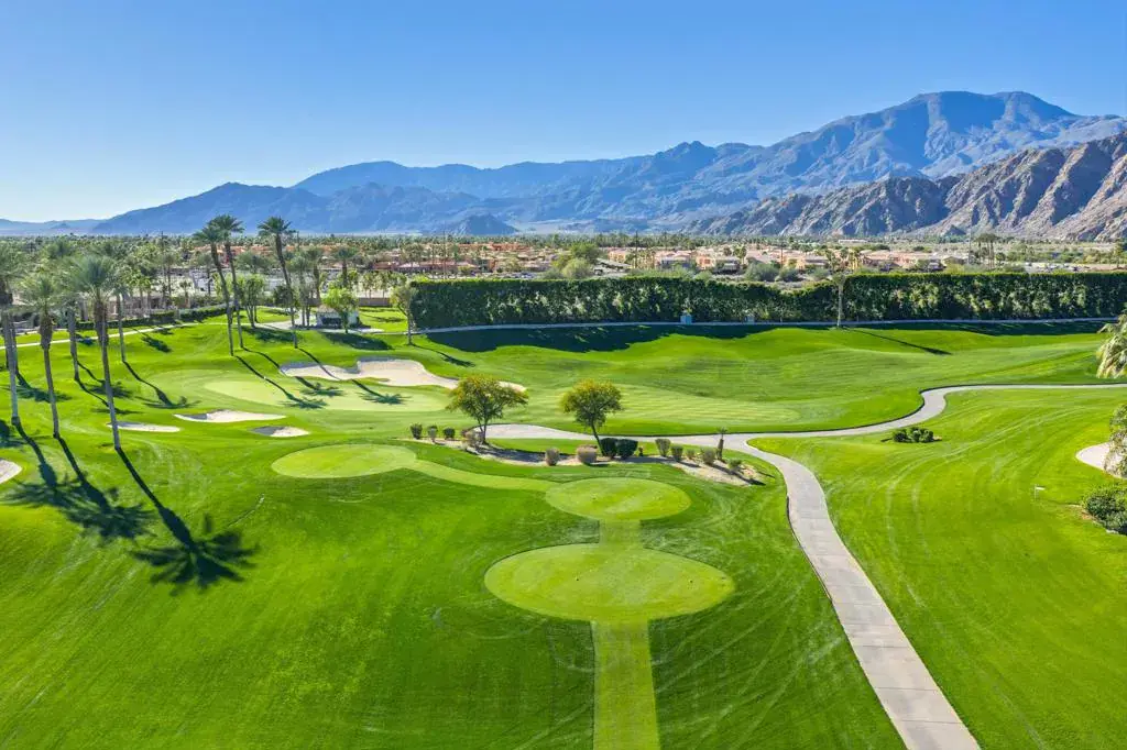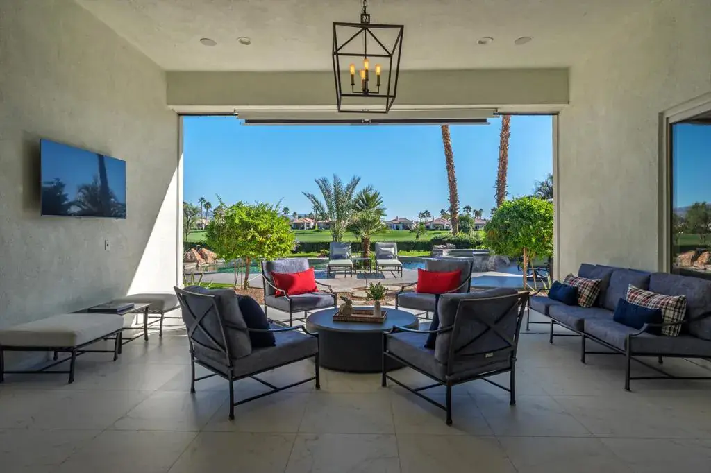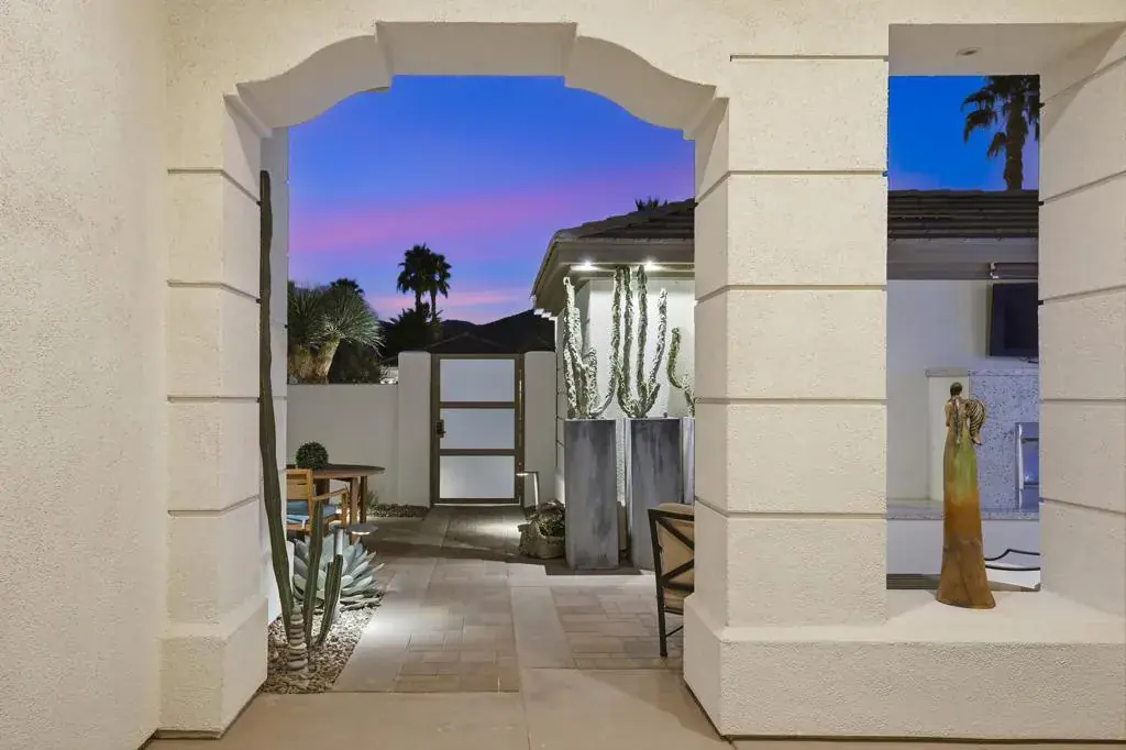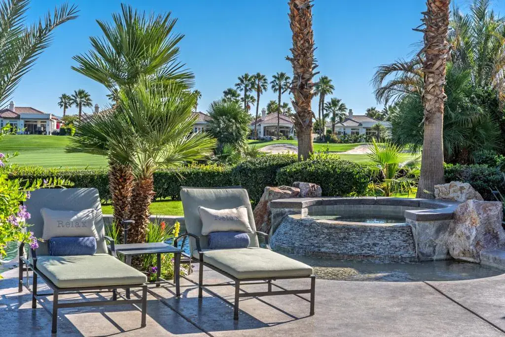 OPEN HOUSE. 3/8 FROM 11-2. AMAZING VIEWS & REMODELED. Welcome to an elegant desert sanctuary offering refined living, exceptional privacy, and breathtaking views. This beautifully reimagined residence includes a bonus room ideal as a den, executive office, or easily made into a 4th bedroom and is thoughtfully designed for both sophistication and comfort.The remodeled living space showcases clean lines and elevated finishes, creating a seamless blend of style and functionality. At the heart of the home, the chef’s kitchen has been expertly renovated with Wolf appliances, custom details, and an open-concept design that flows effortlessly into the main living areas–perfect for elevated entertaining.Retreat to the spa-inspired bathroom, where luxurious finishes create a calming, resort-like experience. Positioned on an expansive 13,000 sq ft lot, the property captures stunning mountain and lake views overlooking the 13th hole, offering a dramatic yet serene backdrop to daily living.Truly indoor/outdoor living – just open the expansive door and enjoy the amazing views. The outdoor living is exceptional. The expanded covered patio serves as a sophisticated entertaining space and transforms into an unforgettable outdoor movie-night retreat. The expansive backyard is ideal for hosting gatherings, while the private front courtyard provides an intimate setting for quiet evenings and morning coffee.Additional highlights include a separate golf cart garage and Tesla charger, enhancing both convenience and lifestyle appeal – plus 3 Air Conditioners and washer/dryer replaced in 2025. Peaceful, private, and impeccably appointed, this home embodies luxury desert living at its finest–perfect for refined entertaining and relaxed enjoyment with family and friends.