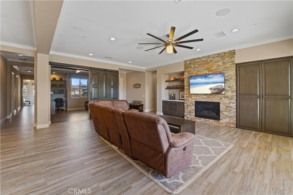Welcome to your private desert retreat in the heart of La Quinta, where luxury, comfort, and lifestyle come together seamlessly. This beautifully upgraded and fully furnished 4 bedroom, 4 bathroom home offers the perfect blend of modern design and resort style living. From the moment you arrive, you are greeted by clean desert landscaping and inviting curb appeal that sets the tone for what is inside. Step through the entry into a spacious open concept floor plan featuring expansive tile flooring, custom finishes, and a seamless flow between the living, dining, and kitchen areas. The living room is anchored by a stunning stone fireplace and enhanced by a fully integrated smart home system, offering convenience and control at your fingertips. The chef’s kitchen is designed to impress, showcasing a large center island with bar seating, sleek cabinetry, stainless steel appliances, double ovens, and designer lighting that creates a warm yet modern feel. Whether you are hosting guests or enjoying a quiet night in, this space delivers both function and style. The primary suite is a true retreat, offering generous space, direct access to the backyard, and a spa inspired bathroom complete with dual vanities, soaking tub, and a glass enclosed walk in shower. Each additional bedroom is well appointed, providing comfort and flexibility for guests, family, or a home office. Step outside to your own private resort where the backyard features a sparkling pool and spa, covered patio, and built in BBQ area perfect for entertaining or relaxing under the desert sky. Whether you are enjoying a morning coffee or hosting an evening gathering, this outdoor space is designed to elevate your lifestyle. Ideally located just minutes from world class golf courses, renowned dining, shopping, and the area’s most popular annual festivals, this home offers both a prime location and an exceptional living experience. Offered fully furnished and equipped with a high end smart home system, this is a rare opportunity to own a turnkey property in one of La Quinta’s most desirable areas.