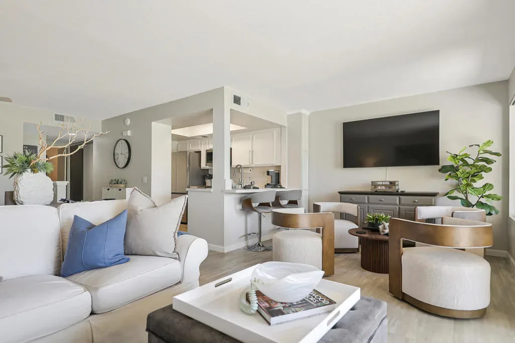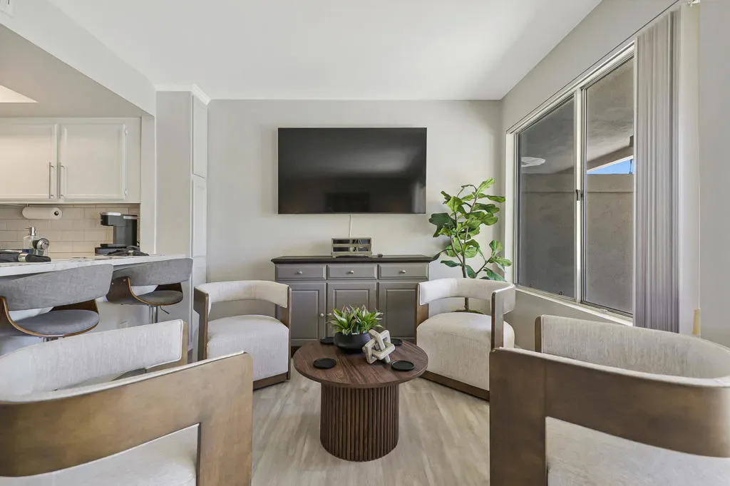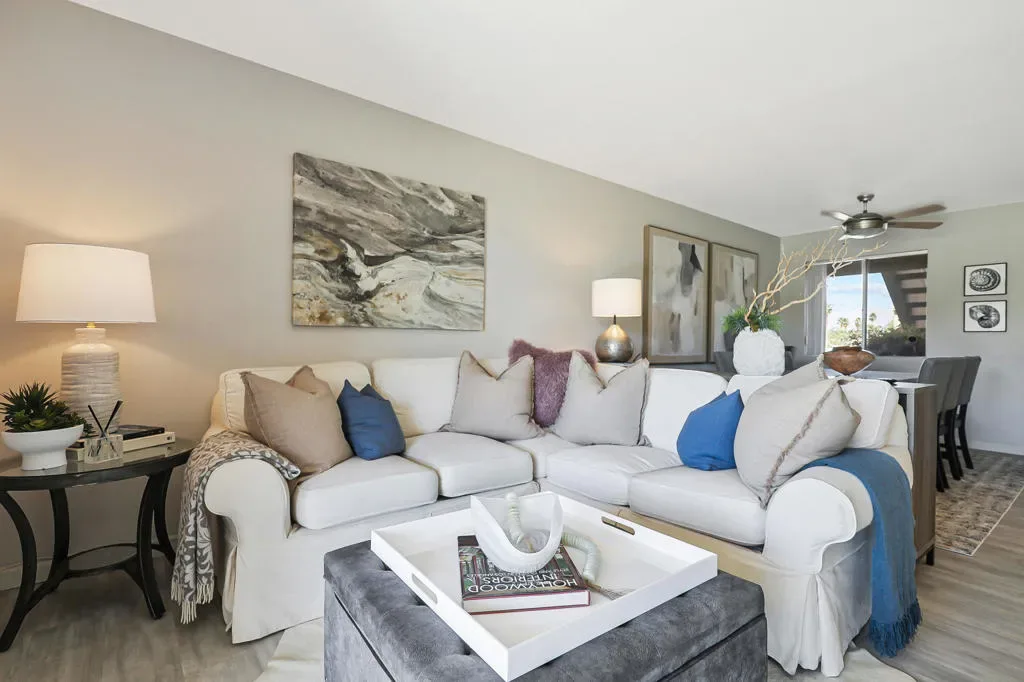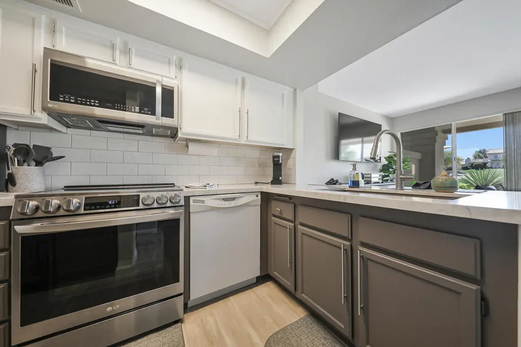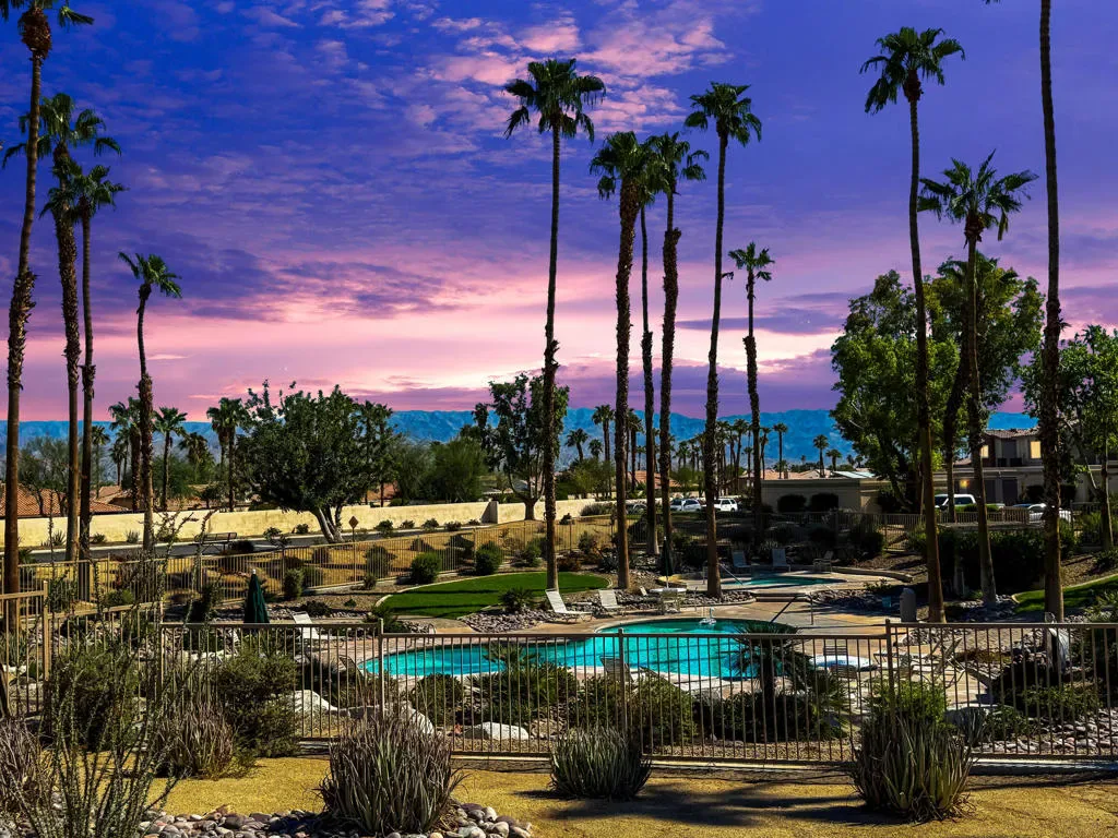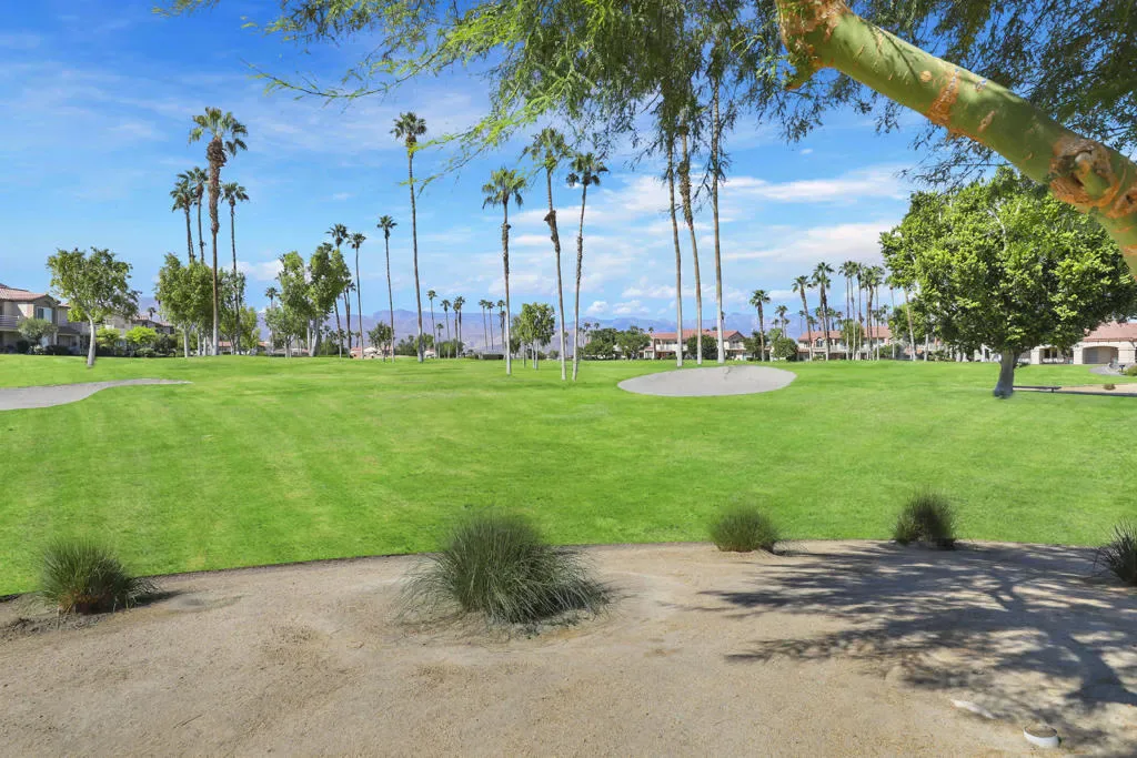 LEASE AVAILABLE APRIL 2026 If you’ve been waiting for a condo that truly stands out – this is it! This beautifully updated lower-level 1 bedroom, 1 bath home offers south facing and fairway views, no stairs, and a modern interior that’s rarely found in the community, this condo checks every box. Inside, you’ll find 10mm Pergo wood flooring. quartz countertops, subway tile backsplash, and stainless-steel smart appliances, including a WI-FI -enabled refrigerator and slide-in-range. Fresh new paint and stylish furnishings create a clean, contemporary feel throughout. Step outside to your private south-facing patio overlooking the 8th fairway and surrounding mountains- perfect for morning coffee, winter sun, and peaceful desert evenings. A detached one-car garage adds valuable storage, privacy, and everyday convenience. Located in the gated resort-style community featuring, six pools and spas. tennis and pickleball courts, dog parks, and disc golf. Just across the street from Indian Wells Tennis Gardens and minutes to shopping, dining, and entertainment. South-facing, No stairs, fully updatedA rare combination that makes this one of the most desirable condos in Palm Royale. Call me today for your private showing.This rate is for Summer months, call me for pricing details!