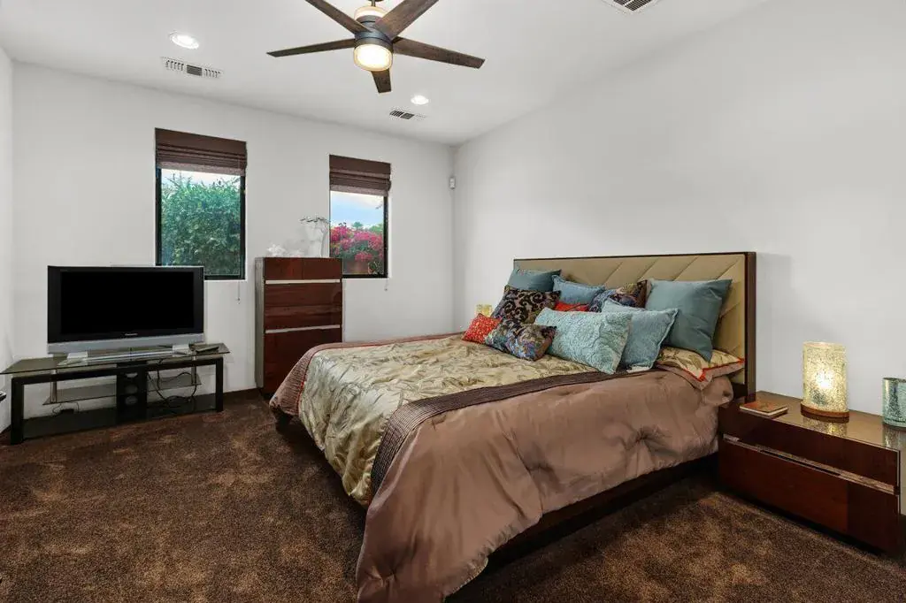 Experience refined desert luxury in Palmilla, an award-winning 72-acre enclave renowned for its striking architecture, serene lakes, and elevated lifestyle. Perfectly positioned on a premium lakefront lot with captivating western mountain views, this exceptional residence embodies the essence of resort-inspired living.Spanning approximately 4,513 square feet on an expansive approximately 13,939 square foot lot, the home offers four bedrooms, four-and-one-half baths, and a private two-room casita featuring a fireplace and wet bar, ideally situated off the front courtyard for ultimate privacy and versatility. Designed for both elegant entertaining and relaxed everyday living, the thoughtfully curated floor plan presents gracious formal and casual spaces that flow seamlessly to the outdoors.The backyard is a private oasis, showcasing an oversized pool, separate spa, and tranquil lake and mountain vistas that create a breathtaking backdrop for relaxation or entertaining. Expansive outdoor living areas invite you to unwind and embrace the beauty of the surrounding desert landscape.Palmilla’s nationally recognized design and lush desert landscaping set the stage for an unparalleled lifestyle. Residents may enjoy access to The Citrus Clubhouse with membership, offering tennis, fitness, social events, and exclusive privileges at nearby La Quinta Resort & Club, including championship golf and a world-class spa.Surrounded by shimmering lakes and picturesque scenery, this home is more than a residence–it’s a destination. Welcome to Palmilla, where every day feels like a vacation.