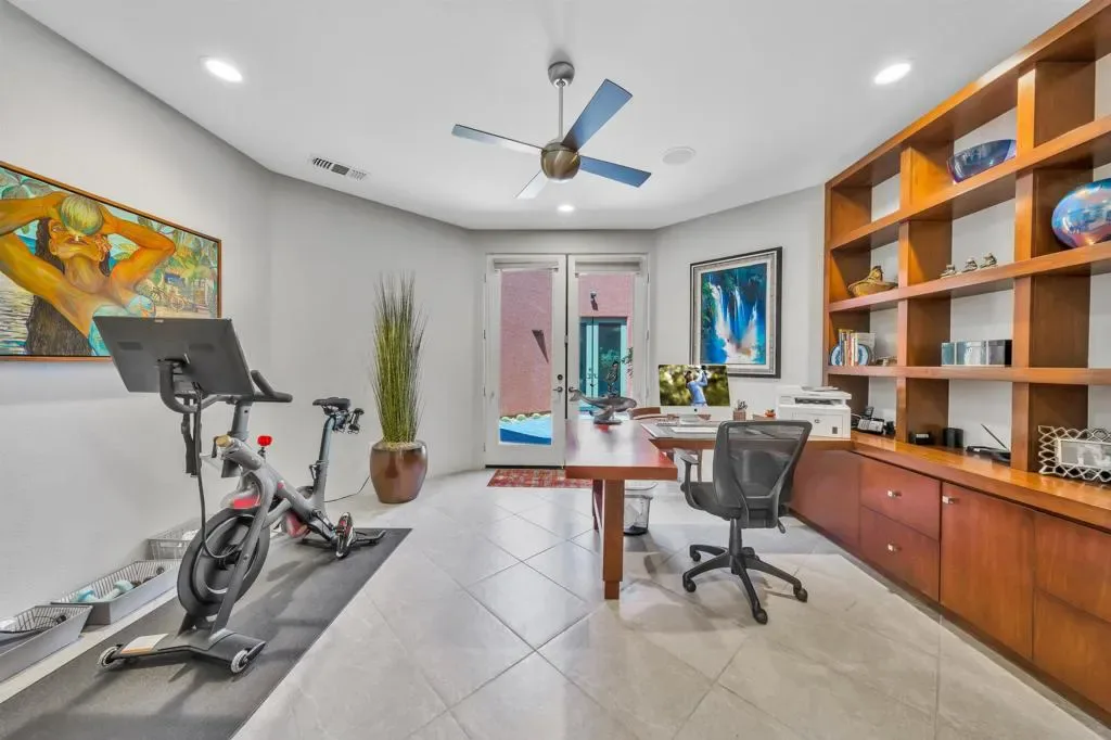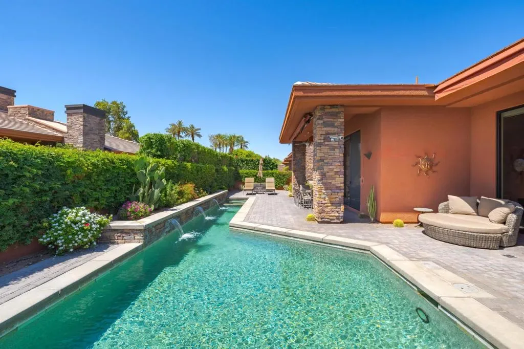 Stunning Ocotillo plan In the highly desirable gated La Quinta community of Palmilla. 3 bedrooms and 3.5 baths plus an office in 2894 square feet. Two bedrooms in the main house with a private guest casita. The contemporary style of this great room plan complements the sleek architecture of these unique Palmilla homes. The back patio area has a wonderful sense of privacy but includes a lovely peek view of the majestic Santa Rosa mountains. Those who love to entertain will appreciate the pebble tec pool and spa. and high-end outdoor kitchen. Decorator finishes throughout. Three air conditioners and two hot water heaters both of which were replaced in 2024. This home is offered furnished per seller’s inventory. A special offering in a special community. Don’t miss this one.