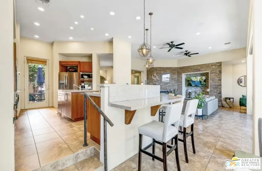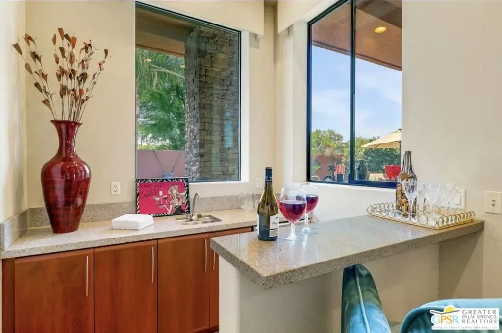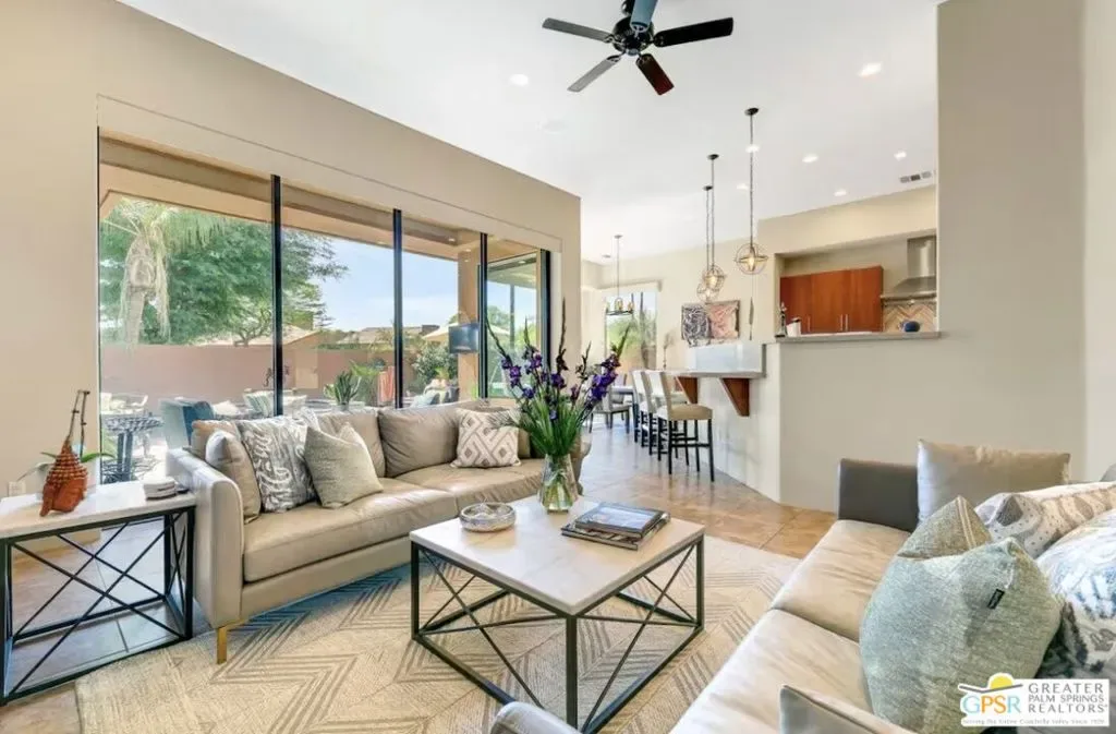 Highly upgraded interior, with new furniture and flat screen TV’s. Tranquill private setting, 5 minute walk to grocery store and restaurants. Golf Cart garage and access from community to the Citrus golf club. Great La Quinta location, quick access to polo grounds, Tennis Gardens, Coachella and Stagecoach. This is a high end furnished Oasis with amazing pool spa and outdoor sitting areas, and outside TV. Located in Palmilla has won awards for the best hidden luxury homes, and best Architect awards.