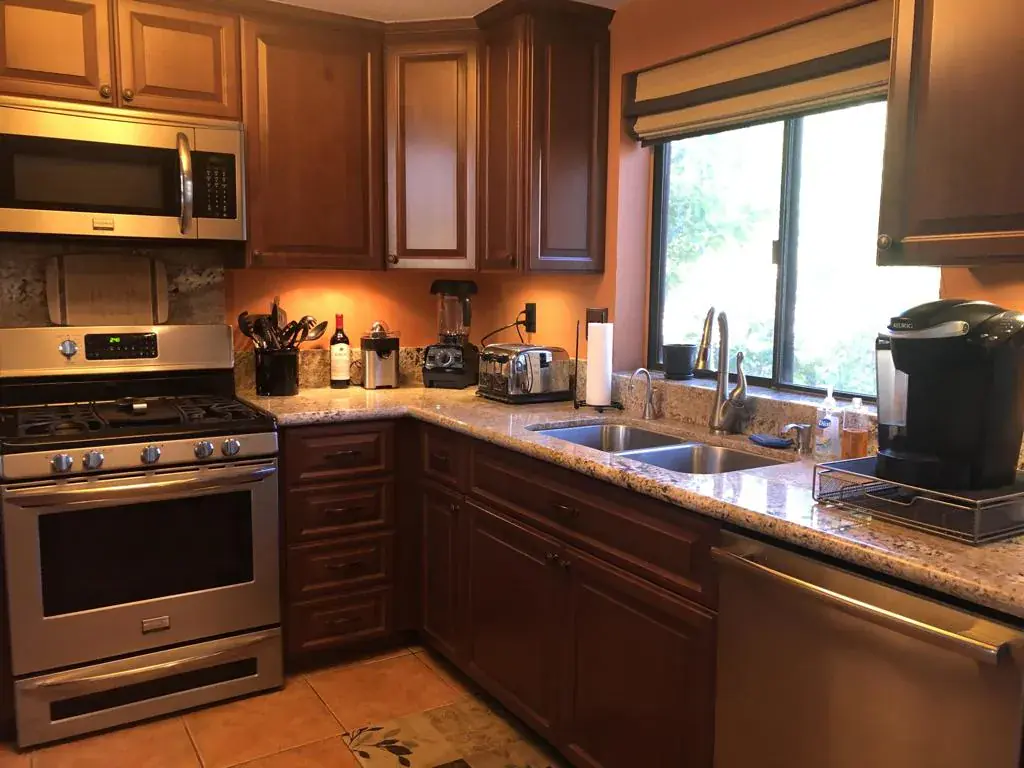 Available for $3,000/month beginning 5/1/26 – 1/5/27. Wonderful turnkey furnished rental in popular South La Quinta. Close to Indian Wells Tennis Gardens, shopping, Old Town, fine dining, hiking trails, golf and La Quinta Arts Festival. Three bedrooms, all upstairs, 2.5 baths. Master suite has Cal king bed, new vinyl wood flooring, newly remodeled bathroom w/jacuzzi tub, shower, dual sinks and balcony overlooking the backyard. Second bedroom has Cal king bed, third bedroom has bunk beds and trundle bed that can sleep four. Remodeled full bath. Open concept living and dining room with cathedral ceiling. Remodeled kitchen with counter bar, eat-in kitchen overlooking the beautiful backyard. Cozy family room with fireplace, powder room and inside laundry. Fantastic entertaining backyard with pool and spa, bbq, tiki hut for sitting around enjoying family and friends. Attached two car garage.This is a fully furnished home. Available 5/1/26 -1/5/27 at $3,000/mo. Price includes internet. $3,800/month for annual lease.