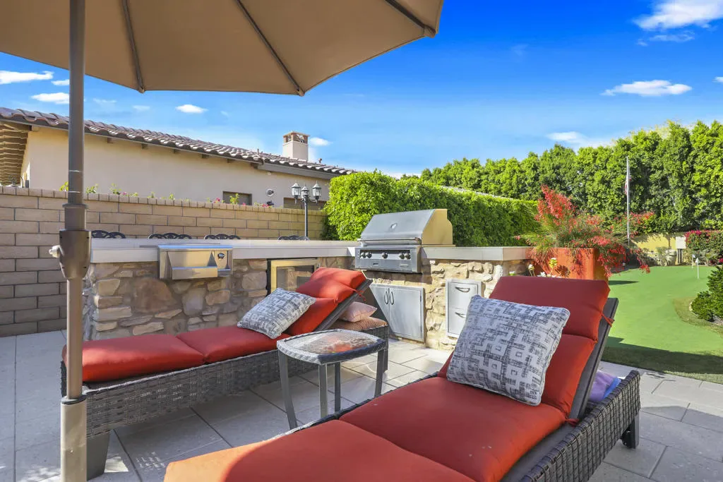 The Private Enclave of Monterra at PGA WEST, is situated within The Greg Norman Course, renowned for legendary golf and lifestyle. This private luxury home is an oasis of beauty with the majestic Santa Rosa mountains as a back drop view, on a oversized cul de sac lot. The perfect sanctuary in a secluded setting for an indoor outdoor entertaining and enjoyment of Desert lifestyle. This beautiful home was the builder’s model of Residence One, therefore there are upgrades galore! The great room living and dining area surround the gourmet kitchen with 48” dual fuel gas range with Designer Hood & oversized island and sink prep area. The living areas are accented by high ceilings and warm welcoming fireplace. The south facing wall of retractable glass doors brings the out door living area indoors. The expansive patio features a dramatic stone fireplace & big screen TV, built in BBQ, putting green, relaxing pool & spa, lounging and dining areas.Easy access to the kitchen for delightful out door entertaining. The grandeur of the colorful mountain scenery compliments this outdoor living space to kick back and relax in your own paradise! Once inside this luxurious home; enjoy the beautiful custom designer decorated interior, specifically for this home’s free flowing floor plan. The guest suites are all ensuites, the fourth bedroom is presently used as a study/office space. The spacious Primary suite is complimented with light shade of wood beamed ceiling accents, & an abundance of windows for a restful and airy space. The oversized luxury bathroom and dressing area with dual vanities, custom framed mirrors and marble slab countertops, and separate shower, surrounding an oval floating tub. Everything about this home is about comfort and Desert Lifestyle !The garage has space for 2 cars and a golf cart.