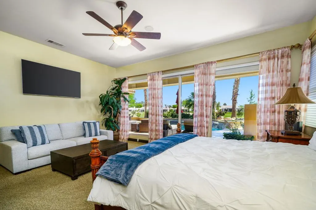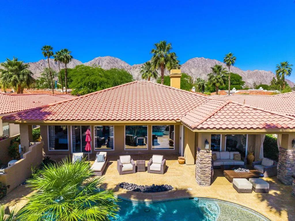 PGA WEST lifestyle living at its finest. Popular Augusta 2 floor plan this 4 bed/4.5 Bath home has been updated and is turnkey furnished and move in ready. Ideally situated just off the 10th hole tee box of the Nicklaus Private Course. Offering an east-facing orientation that captures stunning morning sunrises and soft afternoon light. Designed for desert outdoor living with a tropical backyard showcasing a sparkling pool and spa, built in bbq island, 3 backyard firepit areas and a covered patio–perfect for year-round enjoyment and entertaining.Inside the home has been thoughtfully updated for modern desert living. The upgraded kitchen features quartz countertops, stainless steel appliances and wine fridge. Kitchen opens seamlessly to the dining area and a versatile bonus family room or den. The bar is conveniently located off the dining area and leads into the spacious and inviting family room, complete with a cozy fireplace and expansive windows that fill the space with natural light and capture desert views.The primary suite serves as a private retreat, offering a full bathroom with shower, soaking tub, dual vanities, and a built in closet. Two additional bedroom suites are well-positioned within the home, providing comfort and privacy for family or guests. Casita is detached and offers privacy for guests bedroom or office space. Casita opens to the courtyard designed for relaxation and enjoyment. Completing the property is an interior laundry room including sink area and spacious 3-car garage with cabinets, extra fridge, epoxy floor and wall a/c split. Turnkey Furnished and ready for you to move in and enjoy. PGA WEST is a premier lifestyle community offering a variety of membership options and amenities, making it one of the most desirable destinations for luxury desert living. Come make this your desert home!