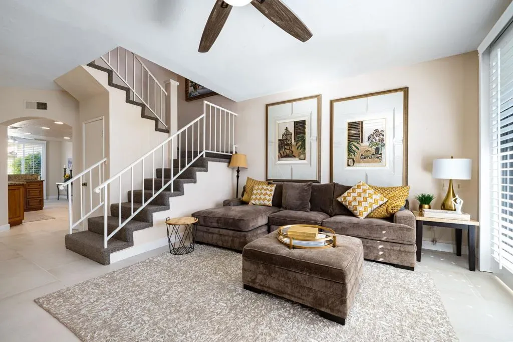 NOW AVAILABLE ALL MONTHS. Experience the ultimate getaway at our premium PGA condo, available for a 30-day stay! Nestled in the heart of La Quinta, this desert oasis invites you to relax and indulge in all that the Coachella Valley has to offer. Immerse yourself in the culinary delights of highly rated restaurants, indulge in world-class shopping, and tee off at premier golfing venues scattered throughout the desert. Whether you seek a tranquil retreat or an entertaining escape with friends, our PGA West Palmer development awaits. This stunningly furnished condo features 2 bedrooms, 2 and 1/2 bathrooms, two patios, a private balcony, a spacious kitchen, two en-suite bathrooms, an interior laundry room, and a two-car garage. With breathtaking views of the lake and green belt, you can savor the serenity of your surroundings. Grill up a feast on the back patio and unwind just steps away from the heated community pool. Pet-friendly accommodations are available with owner approval. Book your stay now and elevate your desert experience!