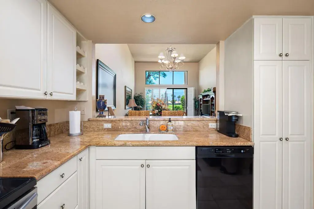 Available for rental from July 2025-, October 31,2025. On the golf course with great views of the mountains and golf course. The community pool is two condo’s away PGA Stadium is a private 24 hour gate guarded community. Located just minutes away from downtown La Quinta, public pickleball, tennis courts, and many wonderful restaurants. Nicely updated kitchen and two bedrooms with ensuite bathrooms.