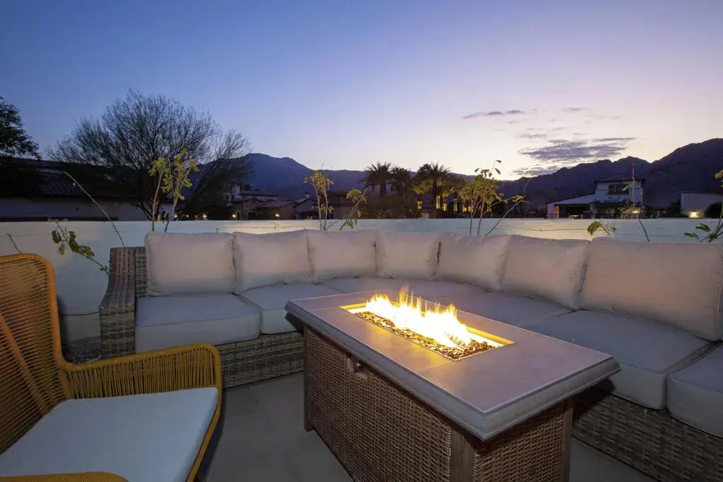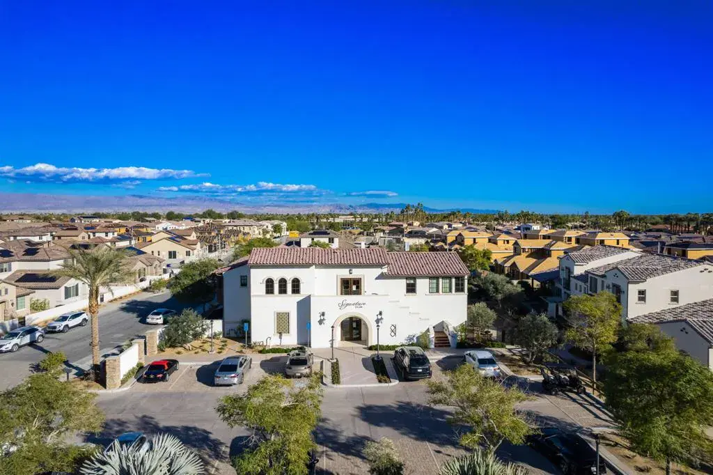 Turnkey furnished home in the recently built, short term rental approved, community of PGA West Signature. Professionally curated by award winning interior designer, Patricia Lockwood, of Design Vision Studio, this 1960 square foot home is not to be missed. Situated on a south facing lot with Santa Rosa mountain views and just a few steps to the Signature Clubhouse, resort style pool, and fitness center. This open concept floor plan features a chef’s kitchen with stainless steel appliances, quartz countertops and white shaker cabinetry. The primary bedroom is located downstairs with a large ensuite bath with double vanity and quartz countertops. Two separate living/entertaining areas highlight the home; one on the main floor, and upstairs you will find the Frank Sinatra inspired bonus room, with wet bar. Two additional guest rooms and a full bath round out the upper level. Relax and entertain in the secluded front yard patio for al fresco dining and evenings spent in front of your private firpit overlooking Coral Mountain. PGA West boasts 6 golf courses (3 public, 3 private) as well as a state of the art Fitness and Sports Club (separate membership). This meticulous home is currently being used as a short term rental and is being sold turnkey furnished. HOA fees include 24 hour guard gated security, internet, cable and front yard maintenance. Leased solar is $39/month and must be assumed by new buyer. Buyer to pay City transfer fee.