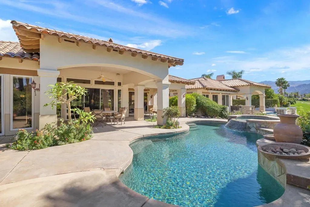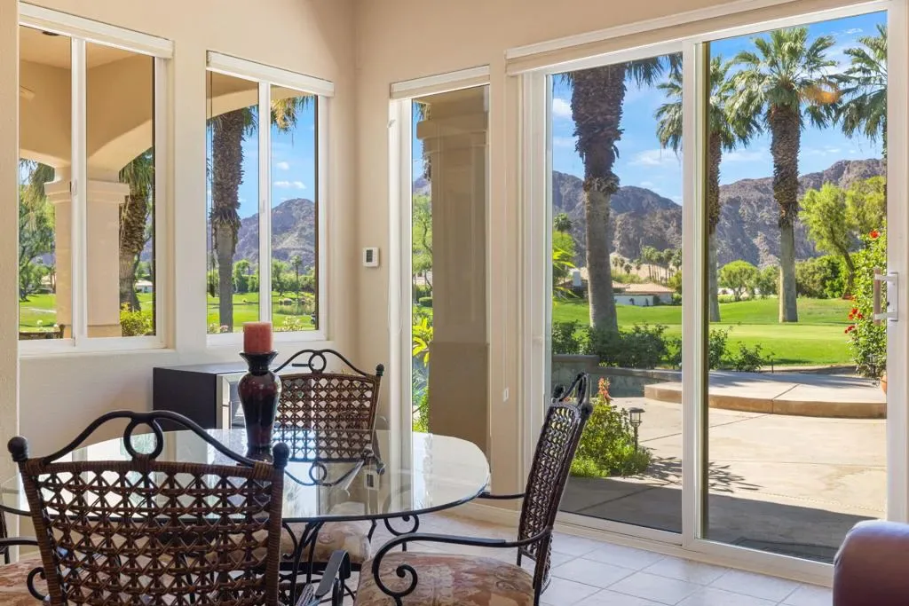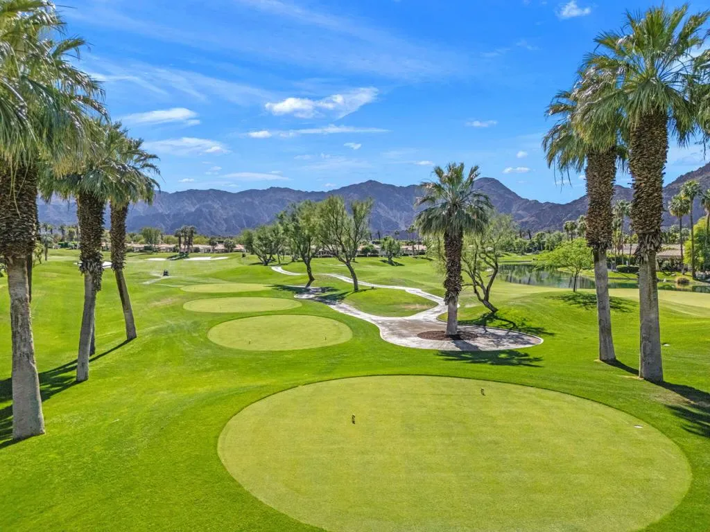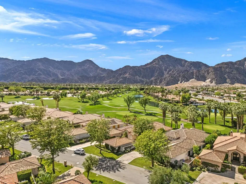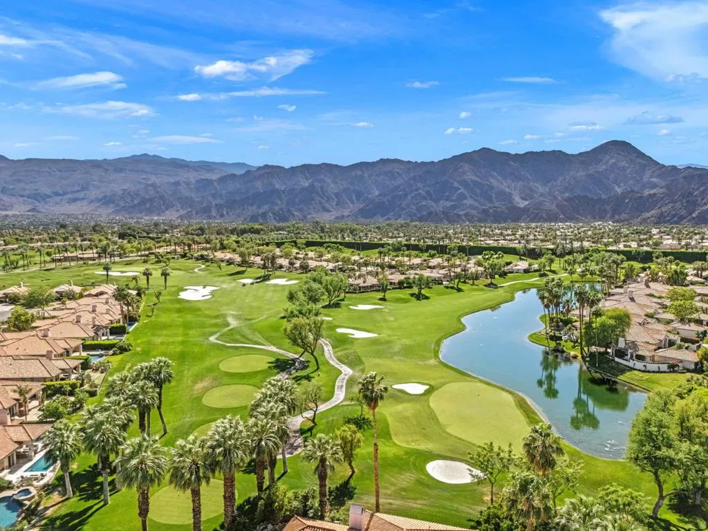 Available for lease in Rancho La Quinta C.C., this beautifully maintained 3-bedroom, 4-bath home is situated on a quiet cul-de-sac on the golf course, offering stunning Santa Rosa Mountain, fairway, and lake views. The property features a private entry courtyard, soaring ceilings, and a light-filled open floor plan. The living room offers a fireplace and custom built-in entertainment center, while the wet bar with granite counters is ideal for entertaining.The spacious primary suite enjoys scenic views, and all bedrooms are ensuite for added privacy. Interior finishes include neutral tile flooring in main areas, carpeted bedrooms, and custom window coverings throughout.Outdoor living is exceptional with a private pool and spa, plus multiple seating areas overlooking the golf course, lake, and mountains–perfect for relaxing or entertaining. Additional highlights include a two-car plus golf cart garage, ample driveway parking, and updated A/C systems and water heater.Offered as a long-term or seasonal lease in one of La Quinta’s premier communities