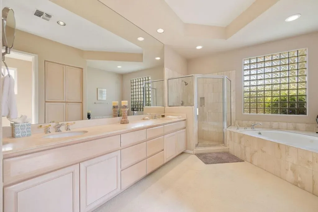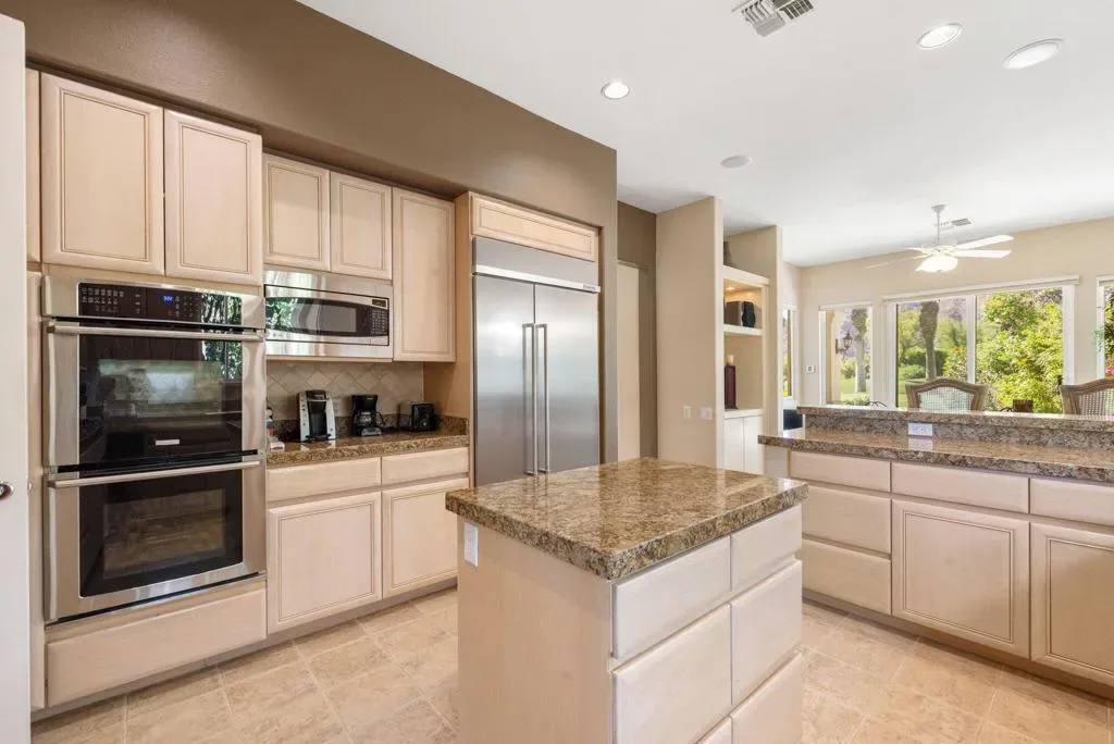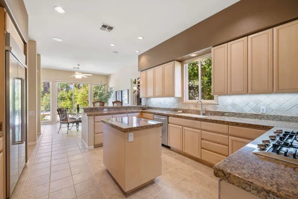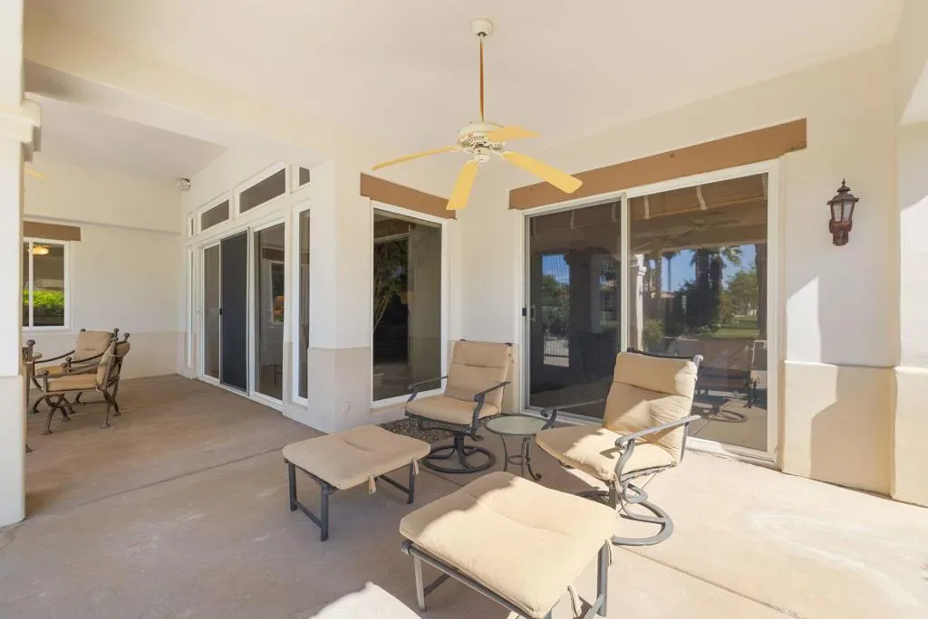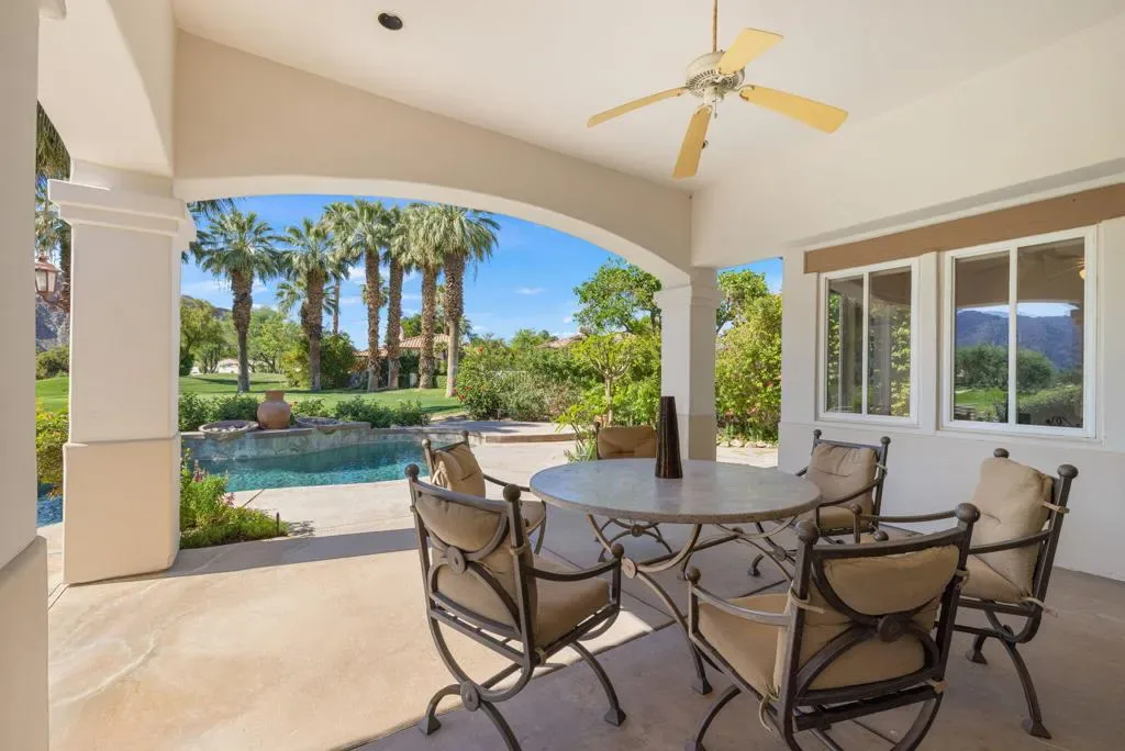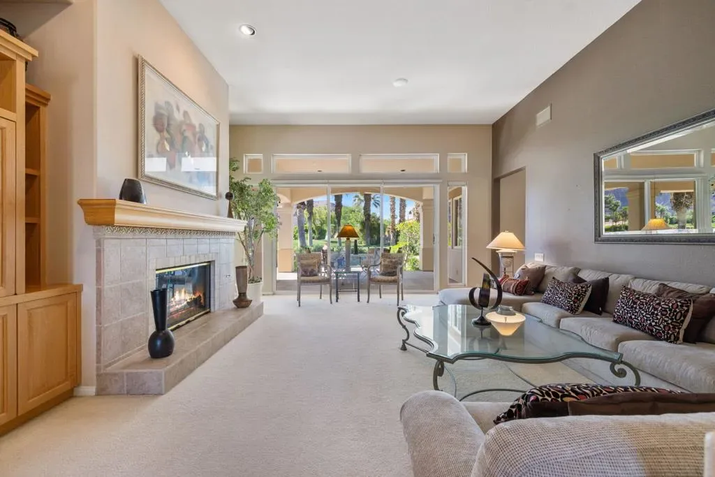 Available for lease in Rancho La Quinta C.C., this beautifully maintained 3-bedroom, 4-bath home is situated on a quiet cul-de-sac on the golf course, offering stunning Santa Rosa Mountain, fairway, and lake views. The property features a private entry courtyard, soaring ceilings, and a light-filled open floor plan. The living room offers a fireplace and custom built-in entertainment center, while the wet bar with granite counters is ideal for entertaining.The spacious primary suite enjoys scenic views, and all bedrooms are ensuite for added privacy. Interior finishes include neutral tile flooring in main areas, carpeted bedrooms, and custom window coverings throughout.Outdoor living is exceptional with a private pool and spa, plus multiple seating areas overlooking the golf course, lake, and mountains–perfect for relaxing or entertaining. Additional highlights include a two-car plus golf cart garage, ample driveway parking, and updated A/C systems and water heater.Offered as a long-term or seasonal lease in one of La Quinta’s premier communities