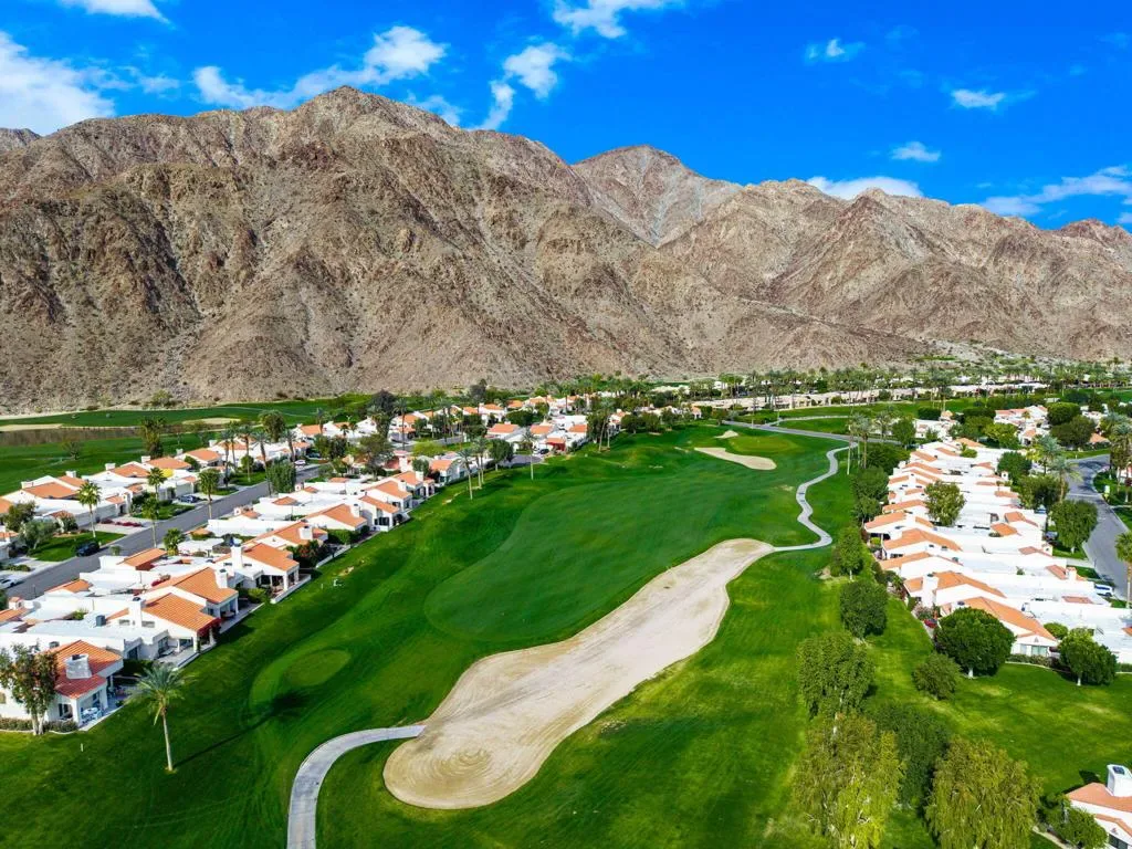 Absolutely breathtaking Seville plan in the highly sought-after Santa Rosa Cove! This is quite possibly one of the finest and most extensively remodeled homes in the community — a true showcase of craftsmanship, quality, and style.No detail has been overlooked in this spectacular renovation including atrium converted to a private office. The home features custom cabinetry with designer hardware, custom wood baseboards, wood-covered vents, granite slab countertops, beautifully framed interior doors, and stunning solid wood doors throughout. Carpet and stone flooring complement the elegant custom window coverings and rich stained wood shutters.The completely reimagined kitchen has been thoughtfully opened to the living area, creating a seamless, modern flow ideal for both everyday living and entertaining. Natural light fills the spacious living room, enhancing the home’s warm yet sophisticated ambiance.Step outside to a private courtyard and backyard finished with elegant pavers and a striking slate tile walkway. Enjoy the custom iron gate, tranquil fountain, covered patio, epoxy-finished garage floors.And the views… simply spectacular! Perfectly positioned on the 10th fairway of the Mountain Course at the iconic La Quinta Resort & Club, this hard to find end-unit home captures sweeping fairway and mountain vistas that truly set it apart. This is luxury desert living at its absolute finest — a rare opportunity to own a meticulously upgraded home in one of La Quinta’s most desirable communities.Offered Furnished!
