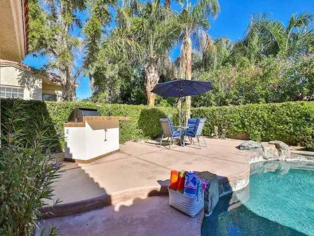 Available for Long-Term Lease Starting May 1stLocated in the desirable IID electric district, offering excellent utility savings and added value, this beautifully upgraded 4-bedroom, 3-bathroom home delivers the best of desert living in La Quinta.Ideally situated near premier shopping, dining, scenic parks, and the renowned Indian Wells Tennis Garden, the home combines comfort, convenience, and style in a prime location.Inside, enjoy spacious bathrooms with dual sinks, walk-in showers, and soaking tubs. The primary suite features a generous walk-in closet and direct access to the private backyard patio, perfect for a private retreat.Step outside to a resort-style backyard complete with a Pebble Tec pool with tanning shelf, spa, updated equipment, modern lighting, and a built-in BBQ island–ideal for entertaining or relaxing under the desert sky.Additional features include a newer A/C unit, attached 3-car garage, dedicated laundry room, smart keyless entry, and an app-controlled pool and spa system for ultimate convenience.Owner covers gardener and pool maintenance, making for easy, low-maintenance living.