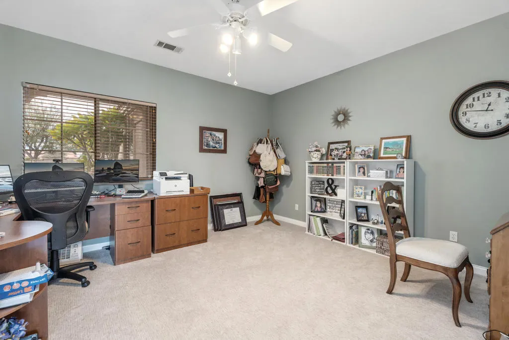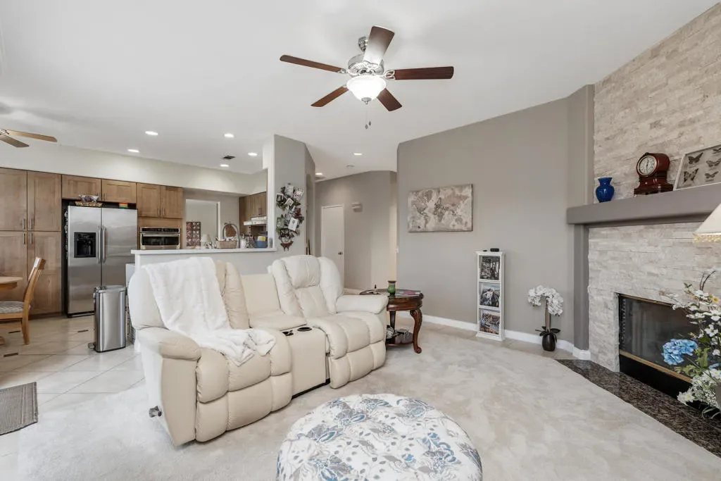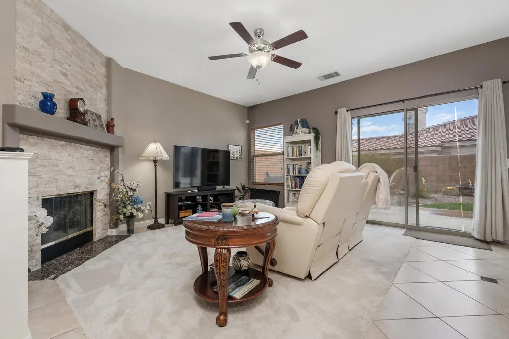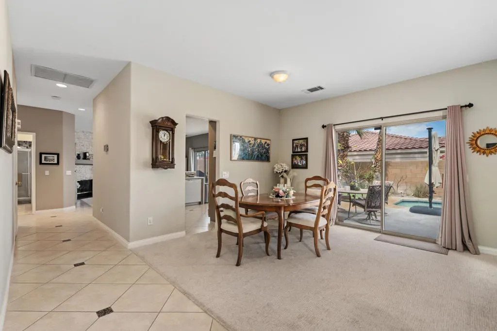 Welcome to 79480 Calle Sonrisa, a beautifully maintained residence tucked into the desirable Sonrisa community of La Quinta. Perfectly positioned on a spacious 7,400 sq ft corner lot, this home offers privacy, thoughtful upgrades, and seamless indoor-outdoor living — just moments from the world-renowned Indian Wells Tennis Garden, top-rated schools, shopping, dining, and neighborhood parks.From the moment you arrive, the gated front courtyard sets the tone, offering stunning mountain and sunset views that capture the essence of desert living. A custom glass entry door welcomes you into a light and bright interior with an open flow designed for both comfort and entertaining.At the heart of the home, the refreshed kitchen features stainless steel appliances, a custom tiled backsplash, generous cabinetry and counter space, and a breakfast nook that opens directly to the family room. The adjacent family room is anchored by a beautiful stone fireplace and sliding glass doors that lead to the backyard oasis, creating a seamless transition between indoor and outdoor spaces.The private primary suite offers its own retreat area and direct sliding-door access to the pool and spa. The en-suite bath features dual vanities, a soaking tub, and a separate shower — creating a true sanctuary feel. A private guest bedroom is thoughtfully positioned off the family room, ideal for visitors, while the third bedroom flexes perfectly as an office or additional guest space.Step outside and discover your resort-style backyard, complete with a saltwater pool and spa, expansive patio decking, and low-maintenance landscaping perfect for entertaining or relaxing under the desert sky.Recent upgrades and improvements add both comfort and peace of mind, including a newer HVAC system that is currently under warranty, pool replastered within the last four years, a new pool pump motor, and a solar attic fan designed to ventilate the attic and reduce heat buildup for improved energy efficiency.This is more than a home — it’s an opportunity to experience La Quinta desert living at its finest. Call today to schedule your private showing.