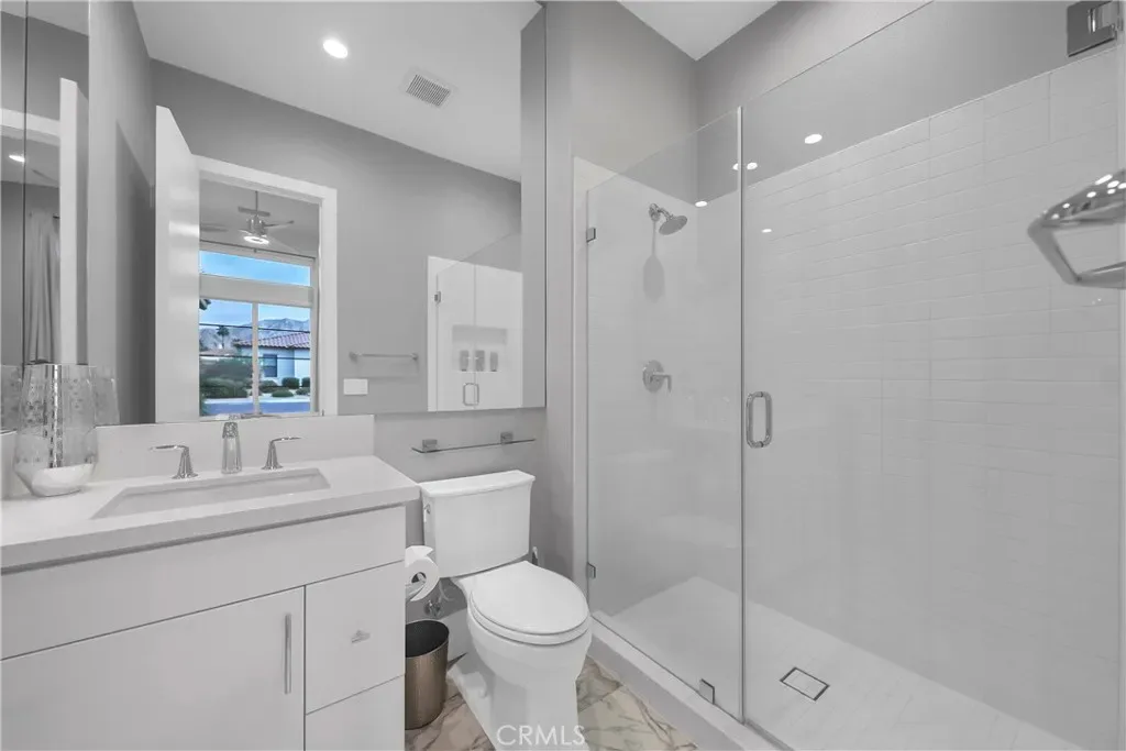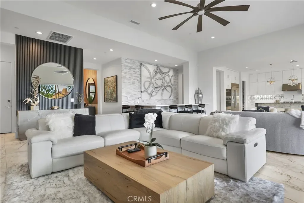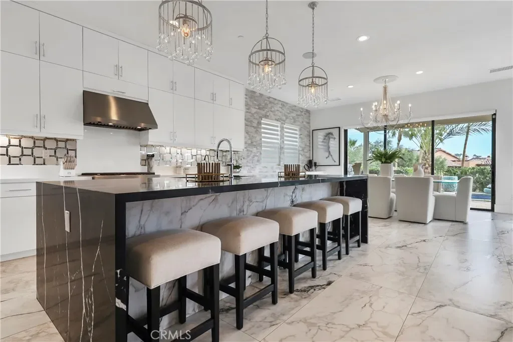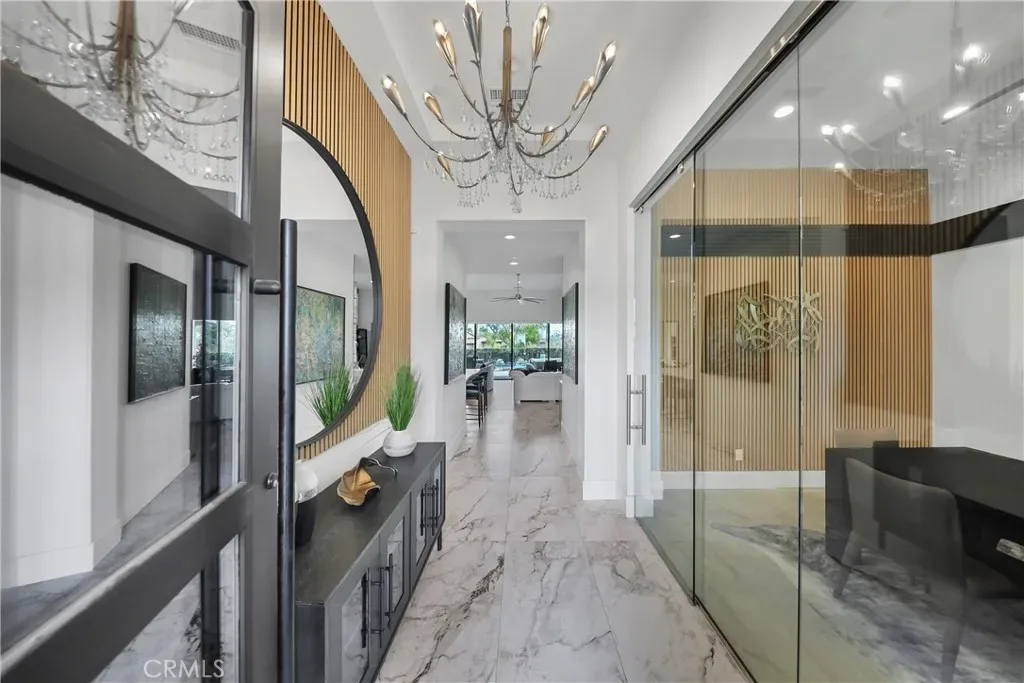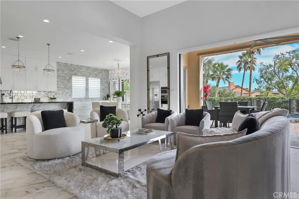 Priced to sell! Low HOAs! This extensively upgraded home in the prestigious Stone Creek Ranch neighborhood is an exceptional value offering over $642,000 in custom luxury upgrades, owned solar, and a reverse osmosis water system located within one of La Quinta’s most picturesque gated communities. Perfectly positioned on a premium lot with lots of privacy, this stunning 3,908-square-foot residence captures sweeping sunlight along with the tranquil sounds of nearby streams and cascading waterfalls. The contemporary open layout is highlighted by soaring 12-foot ceilings in the great room, four spacious bedroom suites and 4.5 bathrooms, a striking glass-walled executive office, a designer kitchen and bar area, and a versatile flex room with barn doors—perfect for a movie room, casual living space, or potential fifth bedroom. The primary suite offers a private retreat with custom marble finishes, a custom-designed walk-in closet, and direct access to the lush backyard oasis. Additional highlights include a resort-style backyard, featuring a sparkling pool and spa surrounded by premium pavers, multiple lounging areas, two solid pergolas, a large awning with misters, and corner bi-fold doors that seamlessly open to blend indoor and outdoor living. Please come and view this stunning property while it is still on the market!
