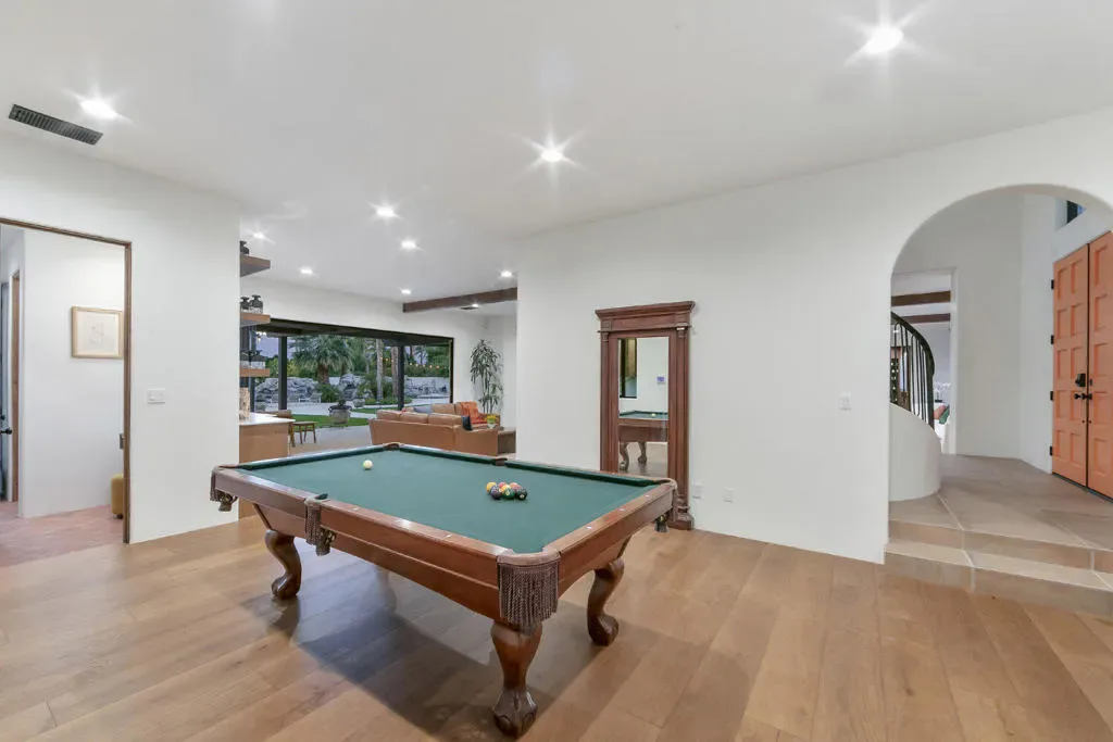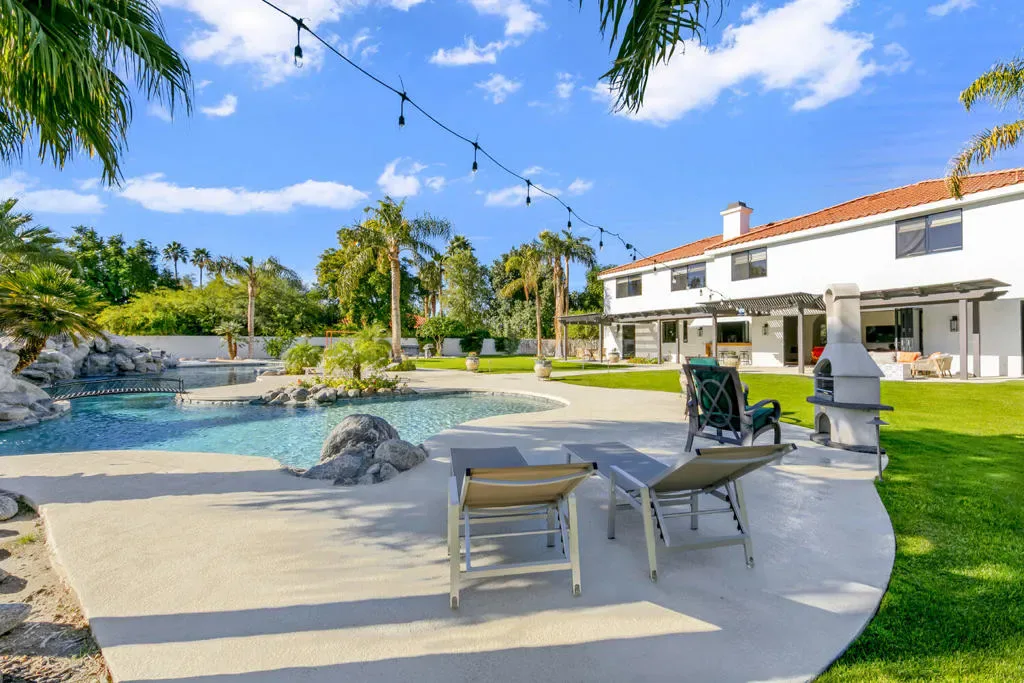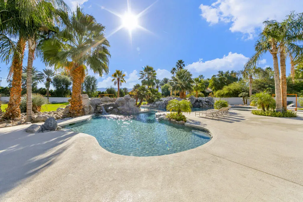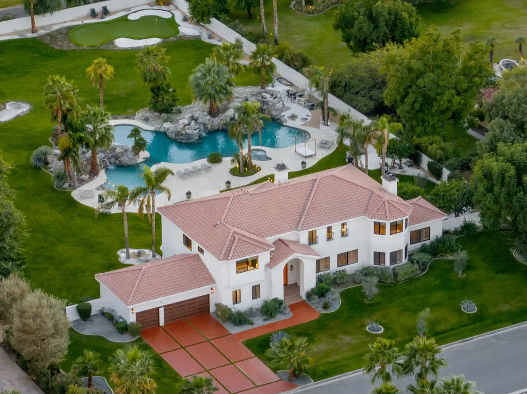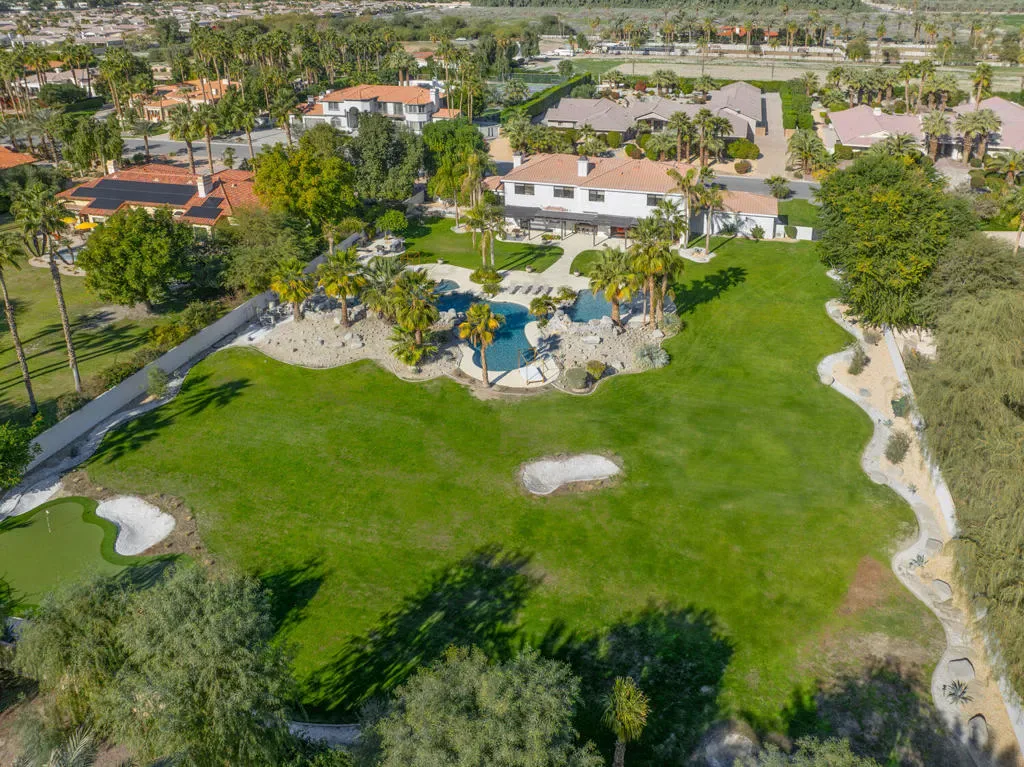 Located behind the gates of The Estates of La Quinta, 81935 Mountain View Lane presents a rare opportunity to own a true resort-caliber estate in one of the desert’s most private and sought-after enclaves. Perfectly positioned near the world-class Desert International Horse Park, the Jacqueline Cochran Regional Airport, PGA West, and the exclusive Madison Club, this property offers unmatched access to elite lifestyle amenities while maintaining exceptional privacy within La Quinta. The estate is set on an expansive 1.25 acres, providing exceptional space, privacy, and the scale necessary to support its resort-style amenities and grounds. Designed for both grand-scale entertaining and everyday luxury, the estate showcases one of the Coachella Valley’s largest resort-style pools, enhanced by dramatic cascading water features and expansive lounging areas. A private par-3 golf hole with crushed white Augusta-style sand bunkers creates a one-of-a-kind backyard experience rarely found in residential estates, delivering a true country club atmosphere at home.The residence has been thoughtfully remodeled with high-end finishes and architectural details throughout its six bedrooms and six-and-a-half bathrooms. Interiors feature 10-inch wide-plank European oak wood flooring, imported Spanish tile, and Carrera white marble throughout. Custom tile bathrooms, two indoor Jacuzzi tubs, and solid 8-foot alder doors elevate the sense of craftsmanship and quality at every turn. The gourmet kitchen and entertaining spaces are anchored by Wolf and Sub-Zero appliances, three wine refrigerators, a full wet bar, and a dramatic 17-foot Fleetwood-style bi-fold door that seamlessly connects indoor and outdoor living. A six-foot pass-through window further enhances the flow for hosting, while custom cast-iron A/C vents and a whole-house central vacuum system reflect the home’s attention to refined detail and modern convenience. 81935 Mountain View Lane is a rare offering that blends privacy, proximity, and resort-level amenities into a single exceptional estate–an ideal retreat for those seeking the highest level of luxury living in La Quinta.