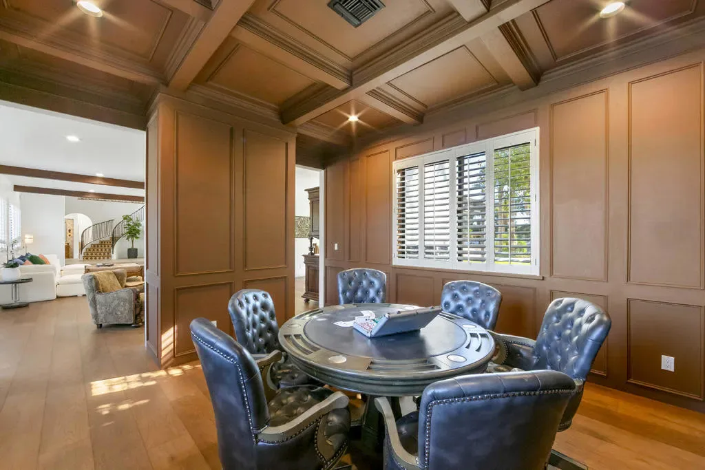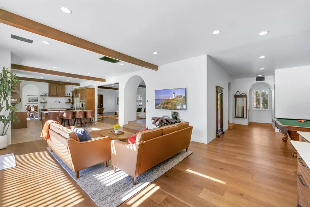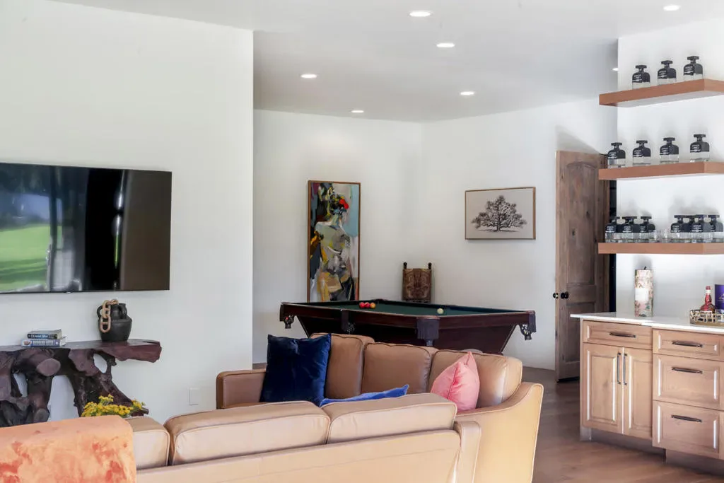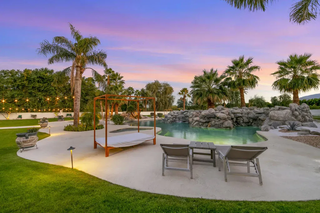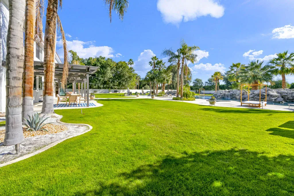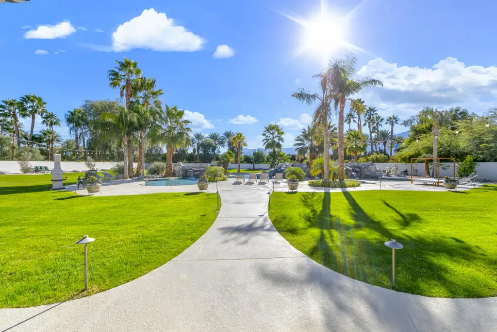 Located behind the gates of The Estates of La Quinta, 81935 Mountain View Lane presents a rare opportunity to own a true resort-caliber estate in one of the desert’s most private and sought-after enclaves. Perfectly positioned near the world-class Desert International Horse Park, the Jacqueline Cochran Regional Airport, PGA West, and the exclusive Madison Club, this property offers unmatched access to elite lifestyle amenities while maintaining exceptional privacy within La Quinta. The estate is set on an expansive 1.25 acres, providing exceptional space, privacy, and the scale necessary to support its resort-style amenities and grounds. Designed for both grand-scale entertaining and everyday luxury, the estate showcases one of the Coachella Valley’s largest resort-style pools, enhanced by dramatic cascading water features and expansive lounging areas. A private par-3 golf hole with crushed white Augusta-style sand bunkers creates a one-of-a-kind backyard experience rarely found in residential estates, delivering a true country club atmosphere at home.The residence has been thoughtfully remodeled with high-end finishes and architectural details throughout its six bedrooms and six-and-a-half bathrooms. Interiors feature 10-inch wide-plank European oak wood flooring, imported Spanish tile, and Carrera white marble throughout. Custom tile bathrooms, two indoor Jacuzzi tubs, and solid 8-foot alder doors elevate the sense of craftsmanship and quality at every turn. The gourmet kitchen and entertaining spaces are anchored by Wolf and Sub-Zero appliances, three wine refrigerators, a full wet bar, and a dramatic 17-foot Fleetwood-style bi-fold door that seamlessly connects indoor and outdoor living. A six-foot pass-through window further enhances the flow for hosting, while custom cast-iron A/C vents and a whole-house central vacuum system reflect the home’s attention to refined detail and modern convenience. 81935 Mountain View Lane is a rare offering that blends privacy, proximity, and resort-level amenities into a single exceptional estate–an ideal retreat for those seeking the highest level of luxury living in La Quinta.