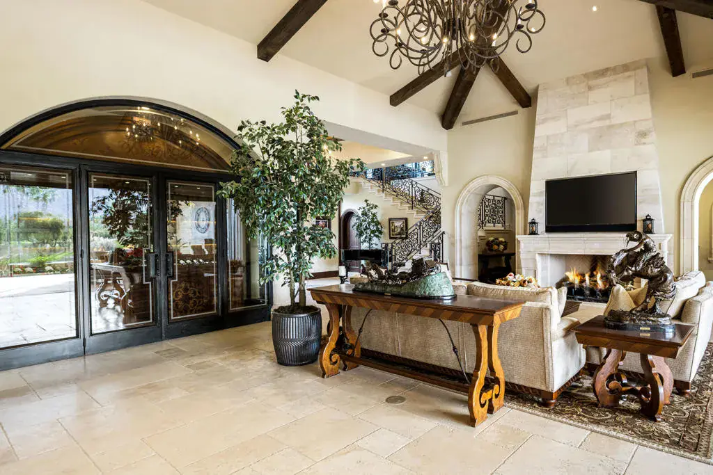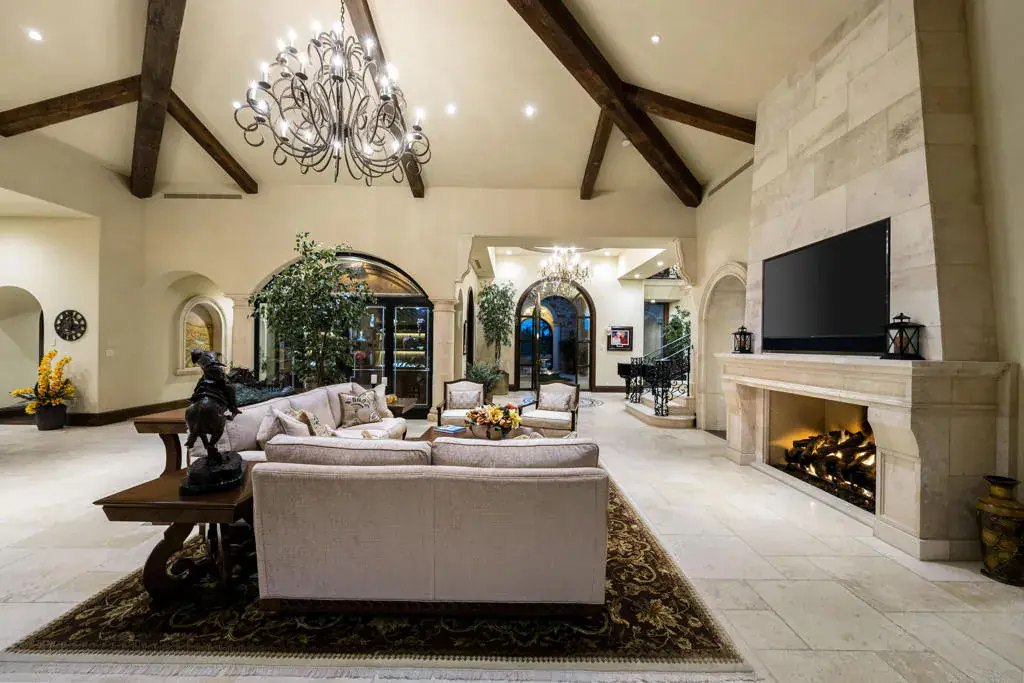 Sprawling custom estate in the prestigious Hideaway Golf Club in La Quinta, situated on an oversized over one-half acre lot, located on the 13th green of the Clive Clark golf course. Five bedrooms (including a detached casita), five bathrooms plus two powder rooms in a generous approx. 8,094 SF. Enter through a large, privately gated courtyard with a bubbling fountain, into an imposing foyer with dramatic sweeping staircase, great room with a striking fireplace, oversized chandelier, entertainer’s wet bar and a formal dining room. The enviable chef’s kitchen boasts timeless marble slab counters, classic custom cabinetry, top-of-the-line appliances and a sizeable butler’s pantry. Continue on to the lavish primary suite featuring a lovely fireplace, luxurious spa-like bath featuring a sauna, home gym and an adjacent, stately home office. There are also three other lovely suites, a cozy family/media room and the detached casita. The fabulous outdoor entertaining pavilion encompasses a living room with fireplace and dining area, firepit and resort-like pool featuring a fountain, large spa and fire pots. Rounding out this one-of-a-kind property is a four-car garage, gated courtyard-driveway and drop-dead gorgeous VIEWS of the golf course and mountains, plus that sought after West exposure. No expense was spared! Furnishings negotiable. Come home to the Hideaway!