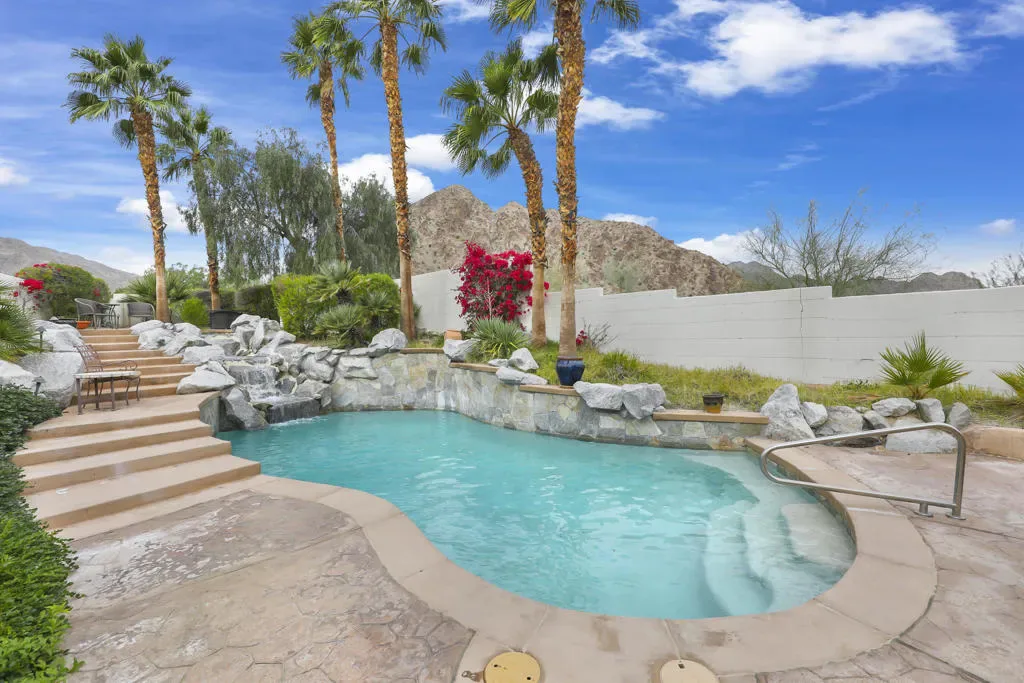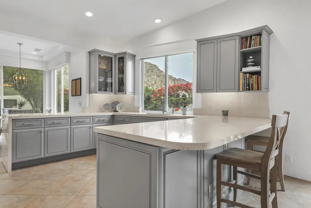 Opportunity knocks in The Quarry at La Quinta, home to one of Golf Digest’s ‘America’s 100 Greatest Golf Courses’, ranked #85 nationally and #13 Best in State in the 2025-26 Golf Digest rankings. The Championship Course, a Tom Fazio design and the only top-100 course in the Southern California desert, continues its long tradition of excellence — including a 10-hole short course and 18-hole putting course. There have been no homes sold under $2,000,000 in The Quarry over the past five years, making this offering a rare entry point into a location with strong, sustained demand.Extraordinary Mediterranean living is reimagined here with light modern finishes, yet this floor plan still invites personalization and updating to make it your own.Walk through over-sized double front doors into an open, light-filled interior where multiple glass doors frame pristine mountain views — an awe-inspiring backdrop for resort-style living. The great room, anchored by a light stacked-stone custom fireplace, flows seamlessly into the spacious family room and open kitchen.The kitchen highlights a large quartz island perfect for gathering and prep. Pantry storage and stainless-steel appliances including a professional range and refrigeratorOutdoor living is exceptional — a lagoon-style pool with waterfall, and multiple patios providing effortless indoor-outdoor transitions ideal for relaxing or entertaining in the desert climate.This is more than a second home — it’s an investment in lifestyle, location, and long-term value in one of the most sought-after golf communities in Southern California.