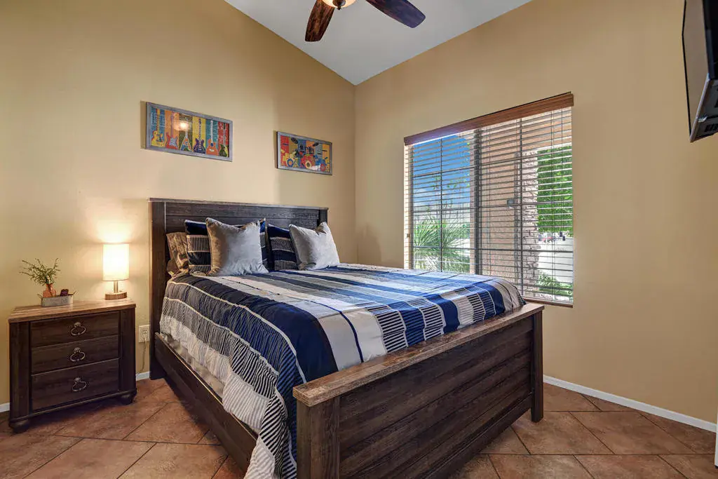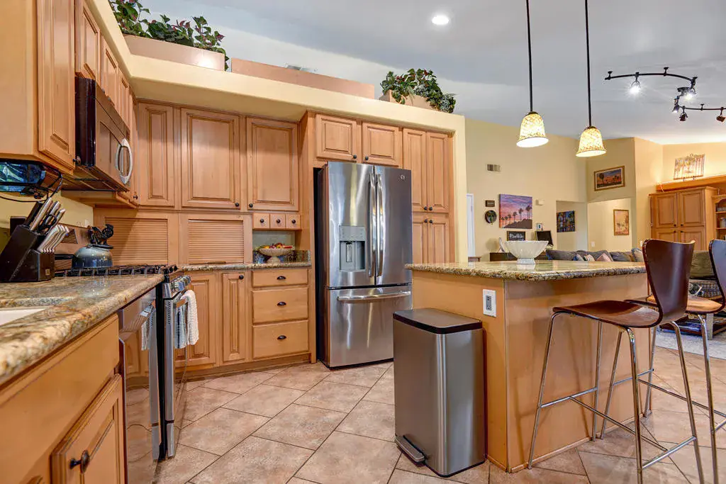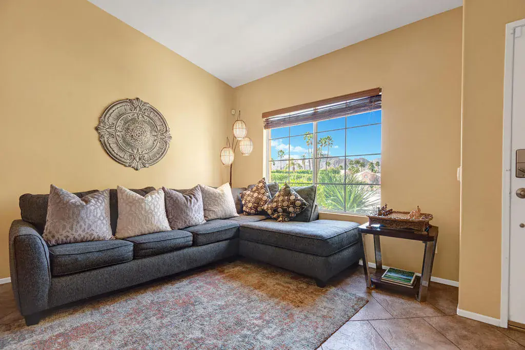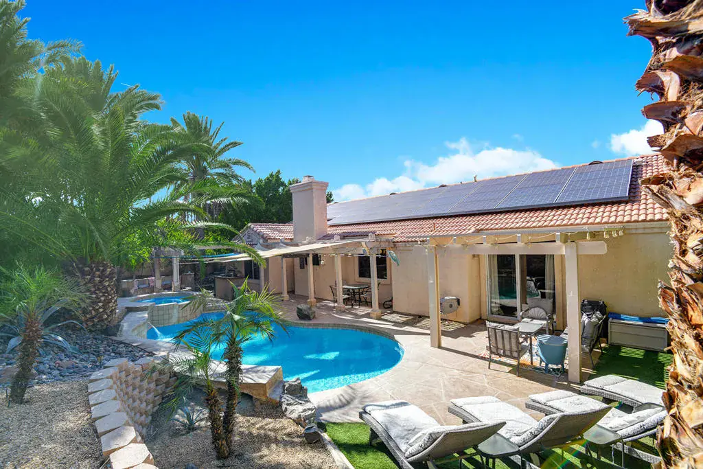 Highly sought-after, charming home in the Topaz neighborhood with no HOA, ideally located within walking distance to Amelia Earhart Elementary, John Glenn Middle School, and La Quinta High School. Designed for entertaining and everyday enjoyment, the backyard features a saltwater pool and spa, custom gas fire pit with stone seating, built-in BBQ island, patio covers, shade sails, and lush landscaping with privacy hedges–creating a private outdoor retreat. Both front and rear yards are low maintenance with artificial turf and drip irrigation.The interior offers diagonal tile flooring throughout and a thoughtfully designed layout ideal for both comfort and functionality. The kitchen features ample cabinetry, generous counter space, a center island, breakfast nook, and stainless steel appliances, opening seamlessly to the living and dining area. The living spaces showcase vaulted ceilings, a cozy fireplace, built-in office cabinetry, and ample natural light, making the home perfect for relaxing or hosting guests.Additional highlights include an indoor laundry room, automated pool equipment with app-based controls, and a home equipped with solar. This property offers a rare combination of location, lifestyle, and outdoor living in one of La Quinta’s most desirable neighborhoods.Home may be sold furnished or unfurnished. Schedule your private showing today to experience all this home has to offer.