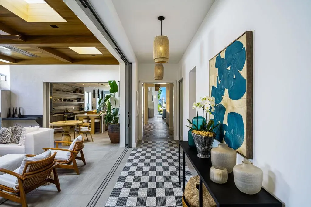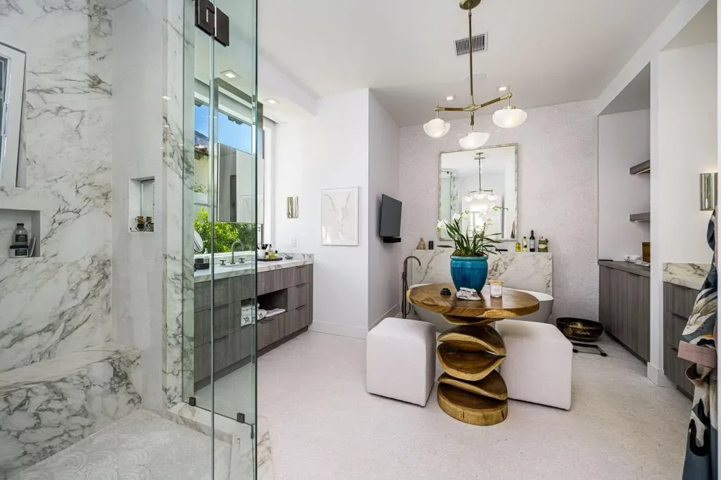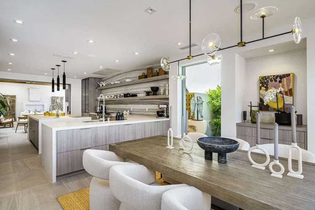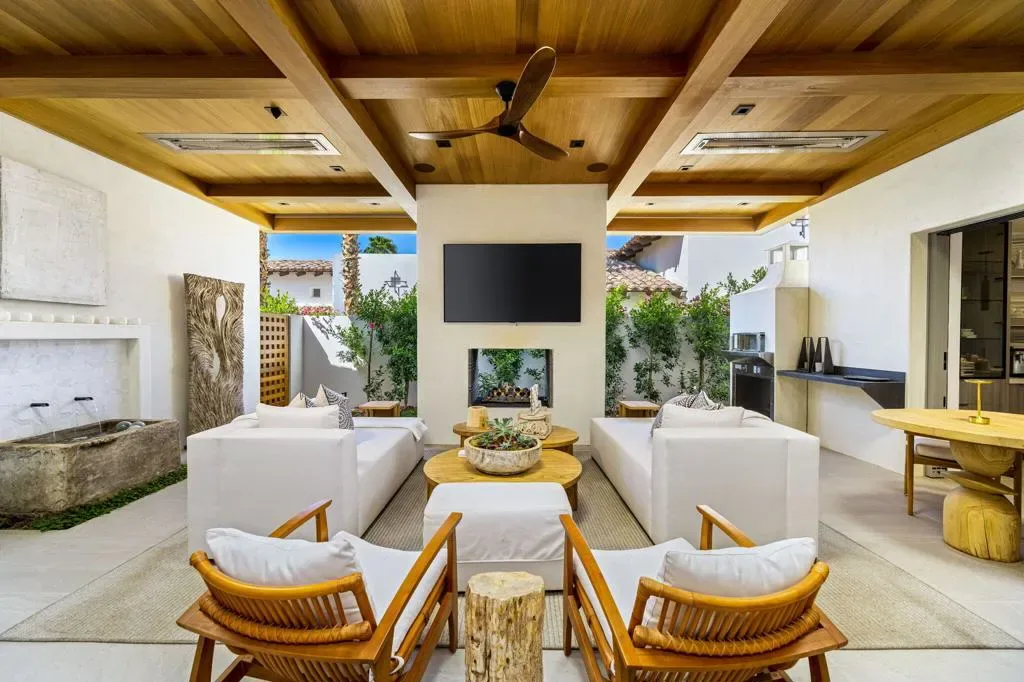 Located at the top of Tradition, this stunning Villa has been completely transformed to the highest level of style and sophistication. The owner fully rebuilt the home using the finest materials and incorporating the latest design innovations, including smart Lutron lighting systems and sleek automated shades. A truly exceptional feature is the reimagined courtyard, now an outdoor living room designed for year-round enjoyment. Highlights include a dramatic ceiling with skylights, a fireplace, radiant floor heating, overhead heaters, and a built-in pizza oven. Pocketing doors from both the hallway and kitchen create a seamless indoor-outdoor flow. While not included in the official square footage, this will undoubtedly be the space where you spend most of your time. The kitchen has been thoughtfully reconfigured and showcases all-new custom cabinetry, high-end appliances, and beautiful stone countertops with a full slab backsplash. New windows and doors throughout enhance natural light, while the redesigned floor plan and added wood ceiling details create a more open, expansive feel. Set on an elevated lot, the home captures sweeping down-valley views over the Tradition Golf Course, with stunning mountain vistas in every direction. The serene primary suite features a fireplace and a luxurious spa-inspired bath with floor-to-ceiling mosaic tile, dual vanities, a floating mirror set before a new window overlooking a sculptural side yard, a soaking tub, and a spacious walk-in shower. Two guest suites each offer en-suite baths and direct access to private side yard patios, providing comfort and privacy for family and guests. The garage is equally impressive with epoxy floors, space for two cars plus a golf cart, and a Smart Infrared Sauna.