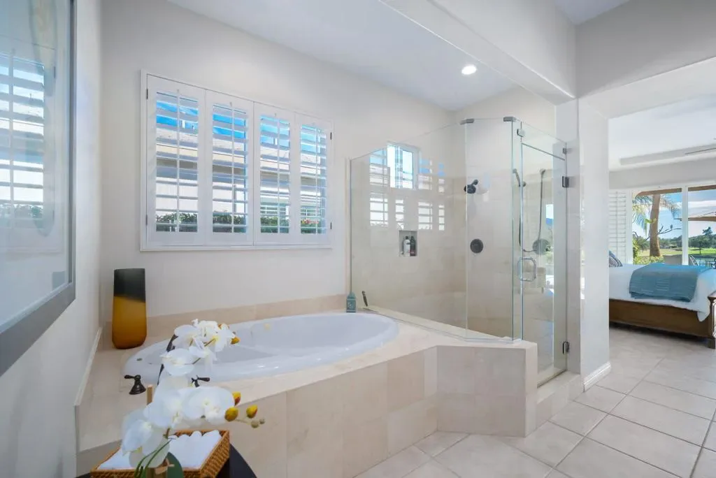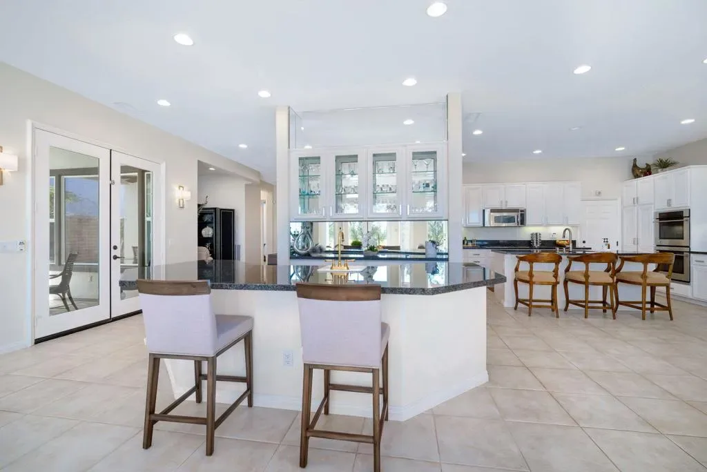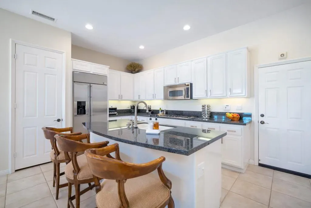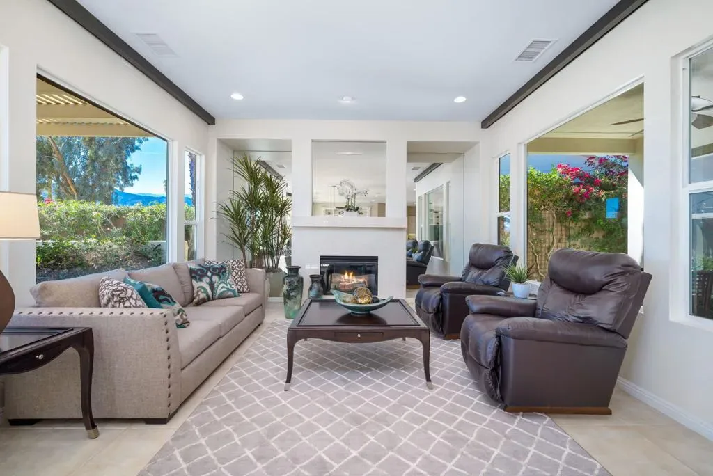 Currently rented from NOV. 1, 2025 Thru APRIL-15-2026. Available January 1-31-2027 at $13,000.00 per month. BOOKED Feb & March 2027. May through October: $8,000.00 per month. This beautifully upgraded Juniper model sits above a double fairway, overlooking a lake with panoramic golf course and mountain views. The east-facing rear yard features a saltwater Pebble Tec pool & spa, BBQ, and electric shades. There are 5 TVs with DVR boxes, plus a 65-inch TV for watching outdoors by the pool. The living room features a dramatic view overlooking the pool, lake, and golf course–power sun shades on the view windows and shutters on the others. The living features a fireplace. The kitchen features a Sub-Zero refrigerator & freezer, a wine fridge, a double oven, a microwave, and granite counters. The master suite features a large walk-in shower, a spacious walk-in closet, a spa tub, and amazing views of the golf course and the surrounding mountains. suites with w/walk-in closets. Set up for entertaining or just relaxing by the poolside. Wi-fi, cable TV included. Trilogy La Quinta is a gated 55+ community featuring golf courses, tennis, pickleball, bocce ball, aqua aerobics, billiards, a full-service Coral Spa, a cafe, and numerous other activities. Book this vacation retreat now!