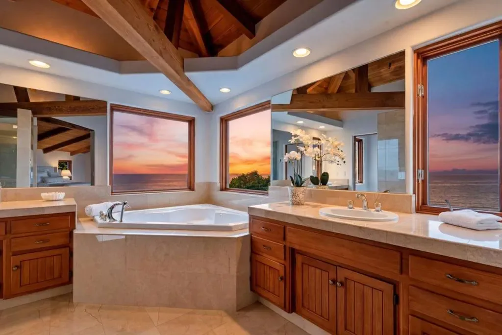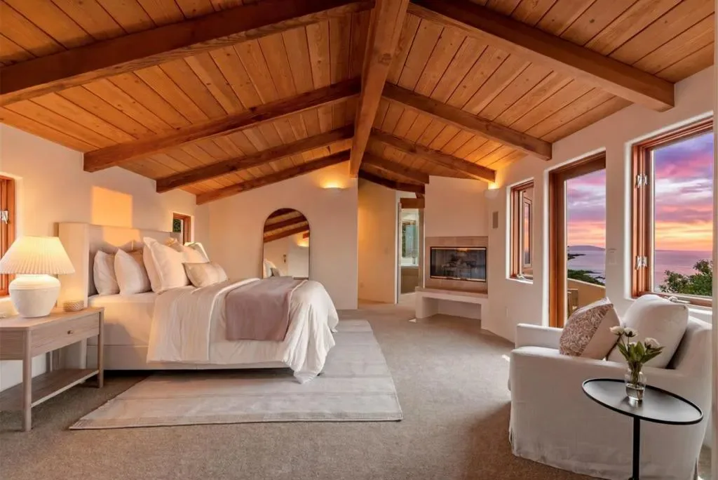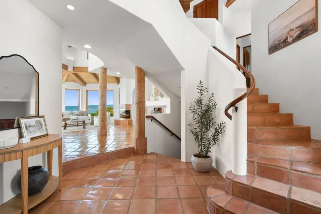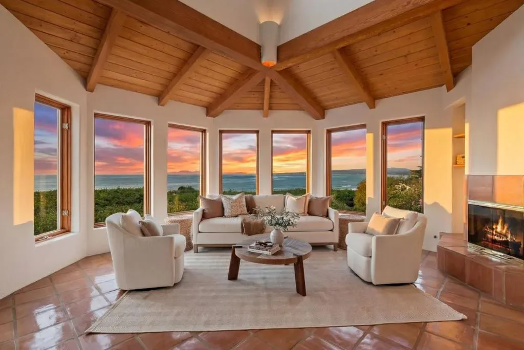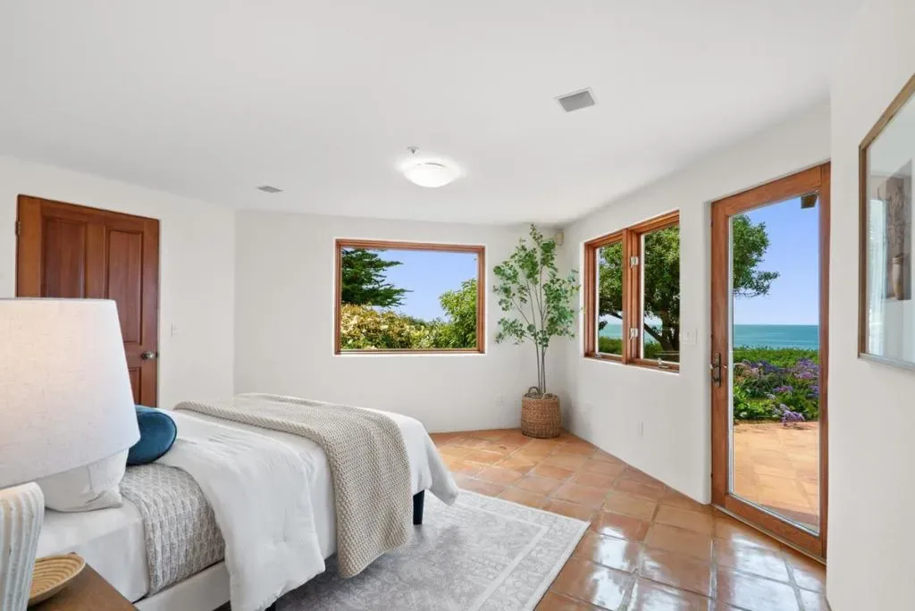 Set above the sparkling coastline near Manresa Beach, this private Mediterranean inspired retreat offers an elevated coastal lifestyle defined by serenity, light, and breathtaking ocean views. Situated on over an acre of beautifully landscaped grounds,the home feels like a peaceful sanctuary where nature and everyday living come together effortlessly. Expansive outdoor spaces and inviting terraces create seamless indoor, outdoor living, perfect for morning coffee or sunset gatherings overlooking the water. Inside, soaring open beam ceilings, warm wood accents, and rich Saltillo tile floors create a refined, yet welcoming atmosphere filled with natural light. Oversized windows frame panoramic ocean views, while the open concept layout flows easily for both entertaining and daily living. The bedrooms offer restful retreats, many with coastal vistas, and a strong connection to the surrounding landscape. A detached ocean view studio provides a light filled space ideal for an artist or musician, while a generous vegetable garden supports an organic, farm to table lifestyle. Surrounded by mature landscaping for privacy and tranquility, this exceptional property captures the essence of coastal California living.