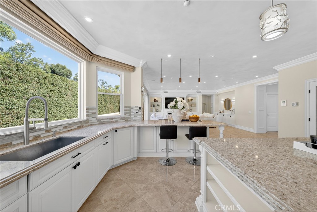 Outdoors, the property shines with a fully redesigned landscape. A stunning infinity-edge pool, custom-built pergola, and full outdoor kitchen with BBQ station, refrigerator, heaters, and mist-cooling system create the perfect setting for year-round enjoyment.