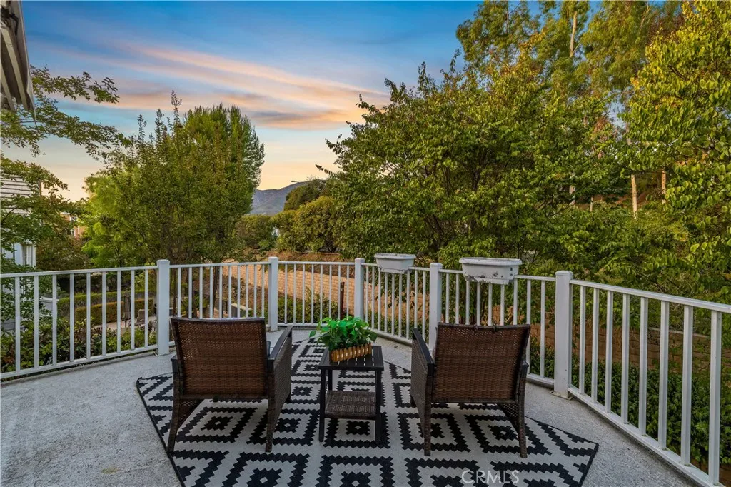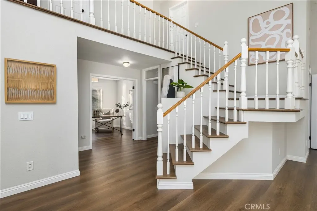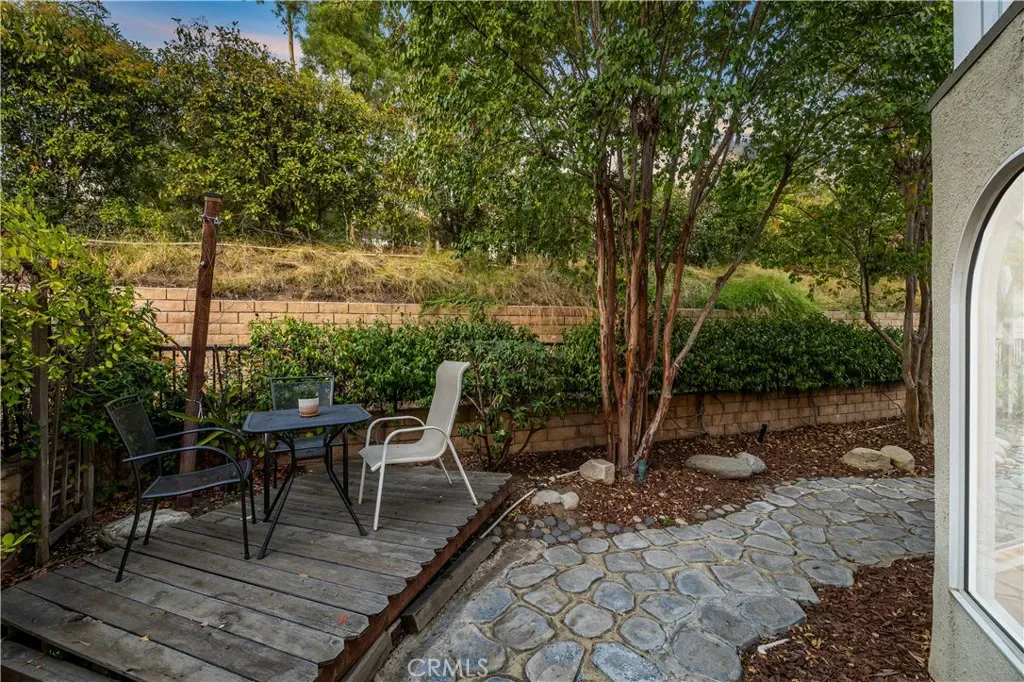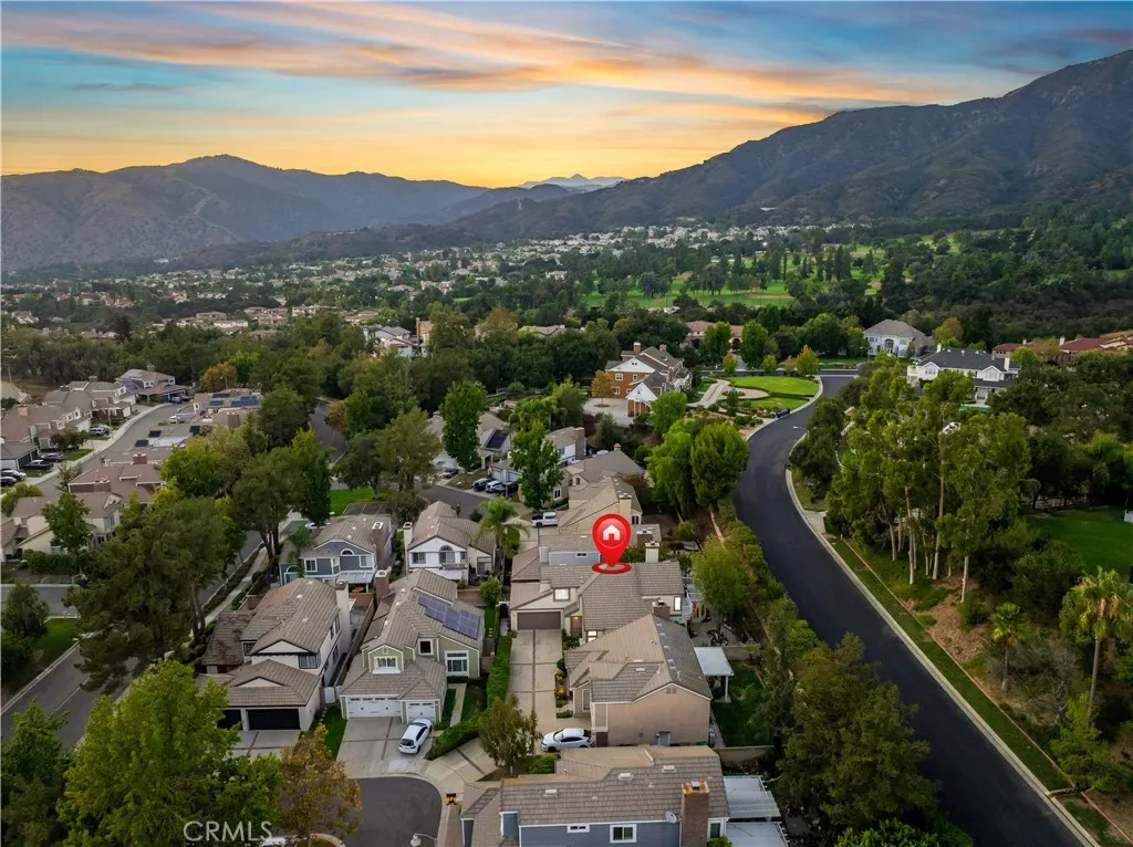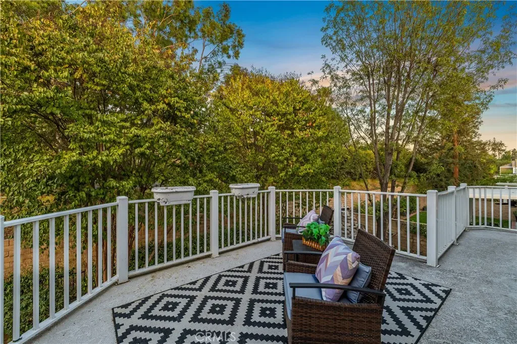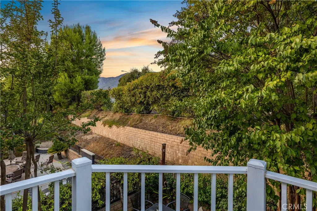 Remodeled home situated in a tucked lot of a quiet cul-de-sac located in the Emerald Ridge at Live Oak gated community. This home offers a long driveway leading to a two-car garage, landscaped front yard, and a covered front porch. Inside, enjoy soaring ceilings and a bright, open floor plan with a view of the center staircase and the living room featuring durable LVP flooring, large windows with plantation shutters, and an adjacent formal dining room with a chandelier and backyard view. The updated kitchen includes wood cabinetry, quartz countertops with full backsplash, stainless steel appliances, recessed lighting, and a breakfast nook, and is open to the family room. The family room has a fireplace with a mantel, windows with shutters, and access through glass French doors to a versatile space, ideal as a playroom, office, or additional lounge, that can remain private or open to the family room. Downstairs also offers a bedroom with double entry doors (currently used as an office), a remodeled bathroom with a custom tiled shower and updated vanity, a laundry room with cabinetry, and direct access to the attached two-car garage. Upstairs, the primary bedroom features a vaulted ceiling, double glass French doors leading to a balcony with mountain and greenbelt views, and direct access to the bathroom. The bathroom offers travertine tile in a versailles pattern, dual sinks, a frameless glass shower, separate tub with greenbelt views, and a walk-in closet with mirrored doors. Two additional bedrooms and a remodeled hall bathroom complete the upstairs. The backyard is set against the greenbelt with no direct neighbor, custom stonework, various trees, planters, a small wood deck, a stone fountain waterfall, and two side yards. The HOA offers a pool, spa, and an RV storage area for residents nearby. Choose La Verne or Claremont Schools, if La Verne, it’s Bonita Unified and attends Oak Mesa Elementary.